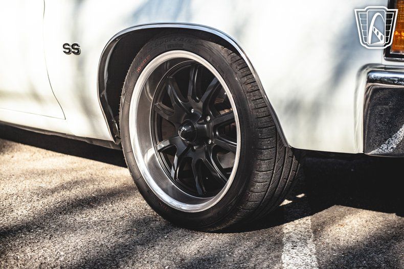 The 1972 Chevrolet Chevelle is also fitted with radial tires for improved stability and traction, ensuring a smooth and comfortable ride. The rally wheels add to the overall aesthetic of the car, enhancing its classic appeal.