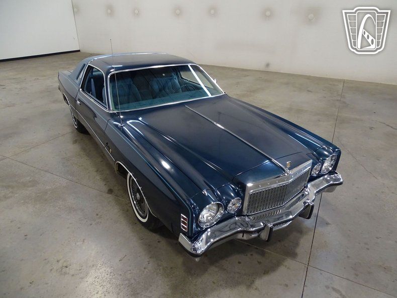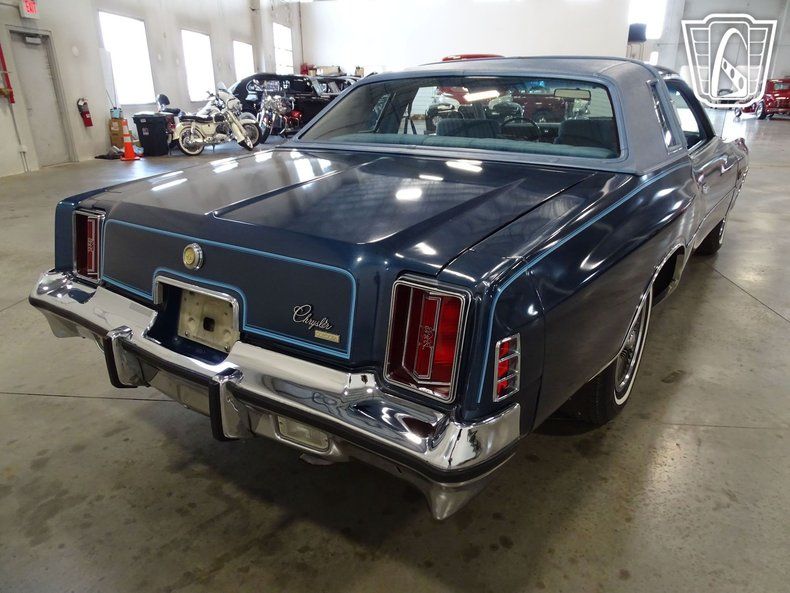 This one-owner 1977 Chrysler Cordoba is Cadet Blue Metallic. A contrasting light blue velour interior and matching landau vinyl roof w/ opera lights make for an elegant color combination. 50/50/ front seats with center armrest, rich trim and thick carpet are luxury features which made the Cordoba famous. Under the hood is a 400ci V-8 attached to a three-speed automatic transmission. Added features are air conditioning, AM/FM radio, cruise control, power steering and power brakes.