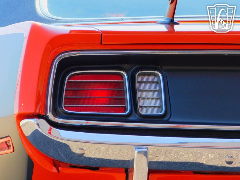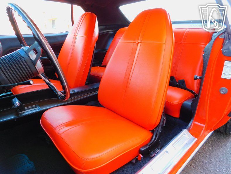 Step inside, and you'll find an equally impressive orange leather interior that exudes a sense of luxury and craftsmanship. Originally the exterior and interior of this Cuda was white/black with houndstooth cloth which was produced in very limited numbers. The new orange leather seats provide a comfortable and stylish ride, ensuring that every journey is as enjoyable as it is memorable. The new interior design reflects the era's attention to detail, with features that enhance both aesthetics and functionality.