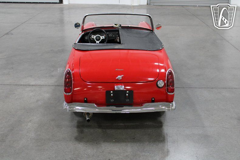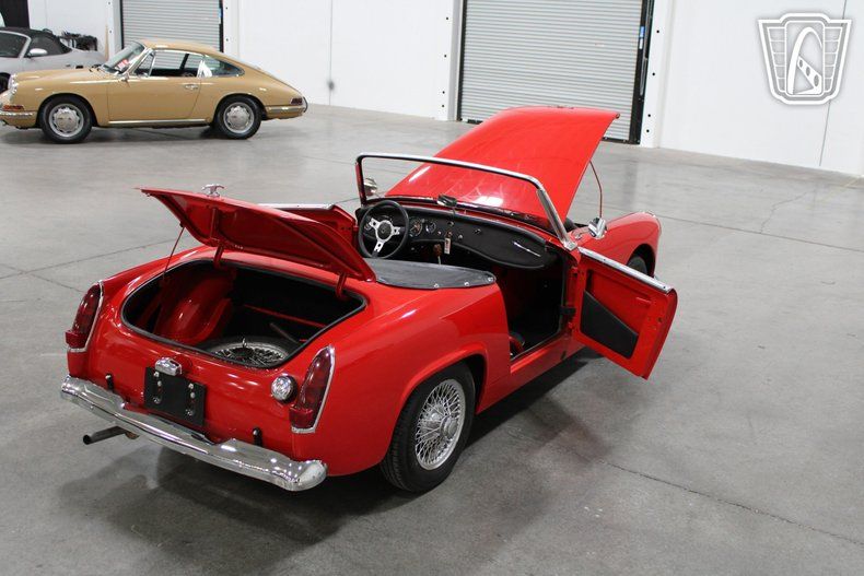 Under the hood lies a spirited 4-cylinder engine, paired with a manual transmission that offers a direct and responsive connection to the road. This combination ensures that every drive is an adventure, with the manual gearbox providing the driver with full control over the vehicle's performance. The Austin-Healey Sprite is renowned for its nimble handling and lively character, making it a joy to drive on winding roads and open highways alike.