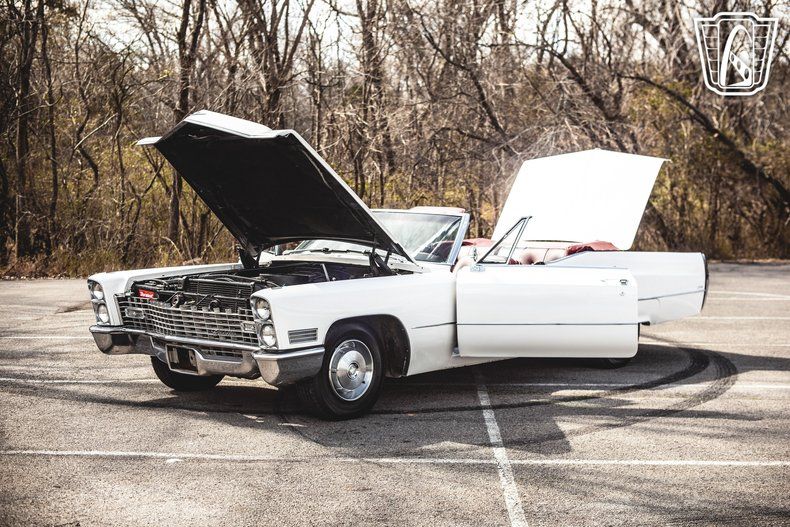 Gateway Classic Cars of Nashville is proud to present this 1967 Cadillac DeVille Convertible, a true icon of American luxury and style. This stunning vehicle is finished in a timeless white exterior color, beautifully contrasted by a vibrant red vinyl interior, offering a unique blend of elegance and excitement.