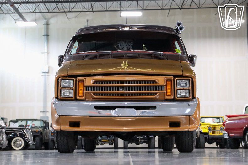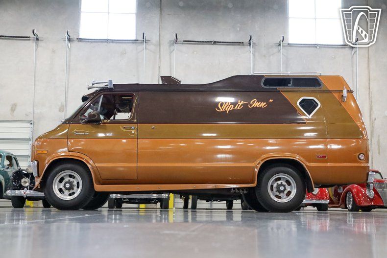 Gateway Classic Cars of San Antonio/Austin is excited to present this 1977 Dodge B300. This large bodied van truly manages to take the cake in terms of customization and displays how awesome a vehicle can look with true attention to detail. The outside of this van brings people in with a two toned brown and gold paint job that is set off with custom graphics going up the side, zoomie style exhaust tips, spike tips on the runner panels, and custom light fixtures serving as brake lights. The inside has been furnished with custom seating, shag rug, custom velour on the side panels, custom cabinetry, and a bed in the back. Up front we have custom swivel seats that bring you up to the cockpit of this beautiful van and features an aftermarket stereo deck mounted in the overhead console as well as a CB radio that also channels through an intercom system to talk to people outside the van. Under the hood of this massive van lies a 360 cubic inch V8 which supplies plenty of power through 727 Torqueflight 3-Speed automatic transmission to help move this party on wheels along. This van is truly one of a kind and there is only once in life you will have the chance to own this piece so don't miss your chance to get at it.