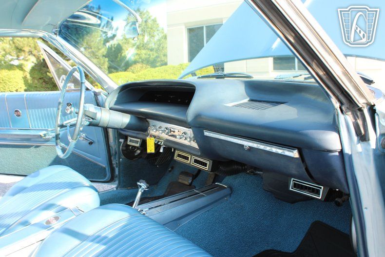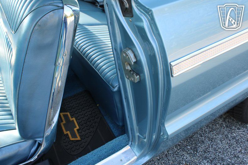 Inside, the Impala SS features a beautifully coordinated blue interior that complements its exterior, offering a cohesive and stylish driving experience. The cabin is equipped with an AM/FM radio, allowing you to enjoy classic tunes or your favorite stations as you cruise down the boulevard.
