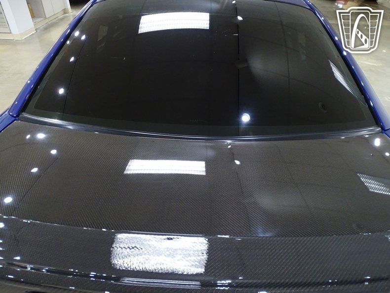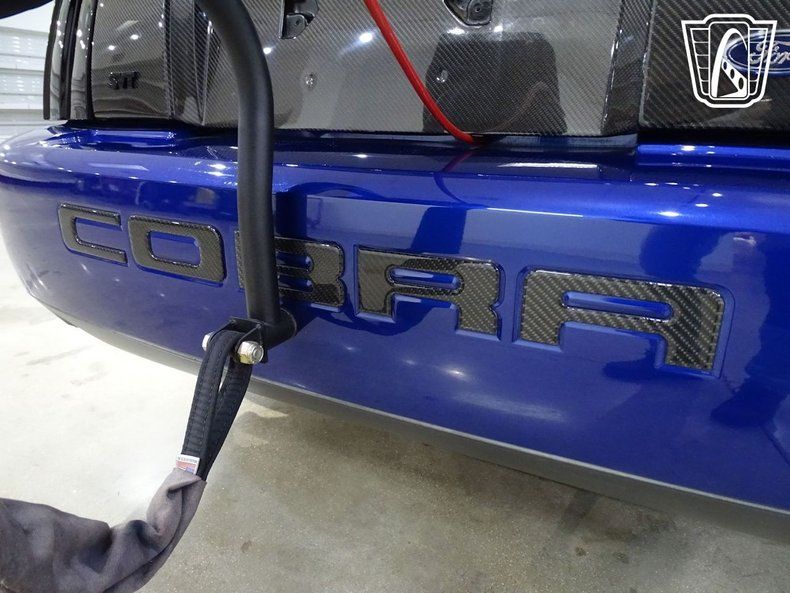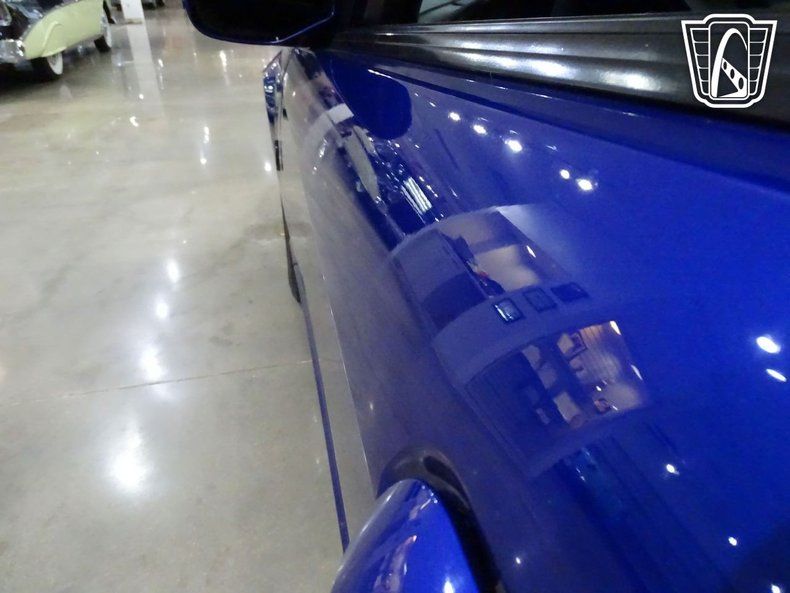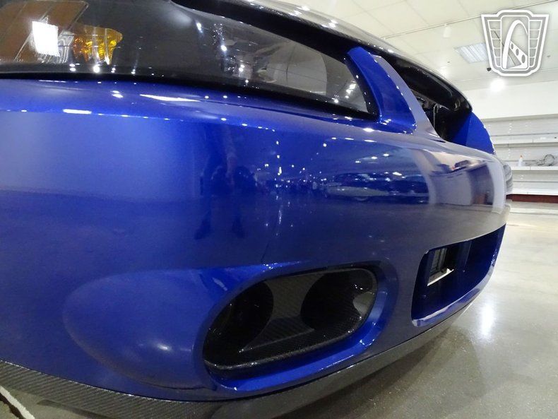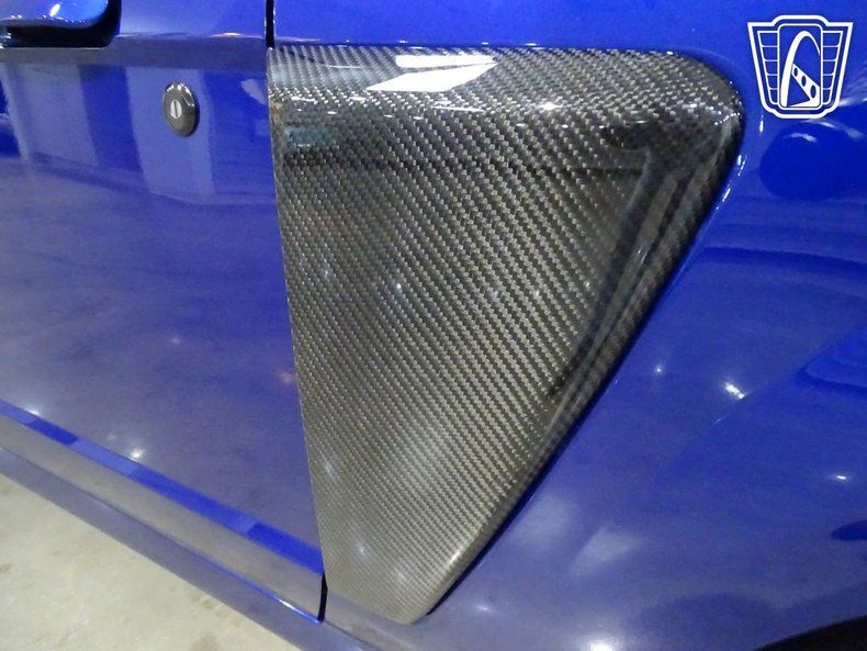 Finished in a striking blue with aggressive carbon-fiber accents, this Mustang wears its intentions openly. A VIS Racing carbon-fiber hood, matching carbon trunk lid and spoiler, grille delete, side scoops, and tinted lighting give the car a stripped, functional appearance that favors performance over flash. Out back, a custom parachute mount with a Stroud chute signals that this is no street toy - it's a car built with real speed in mind.