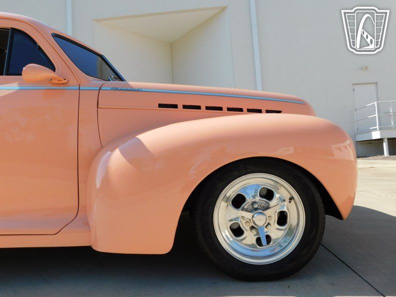 Gateway Classic Cars of Charlotte is proudly to digitally present, this stunning 1941 Chevrolet Special Deluxe Coupe, in a unique and eye-catching peach exterior color. This vintage marvel effortlessly captures the essence of a bygone era while offering a surprisingly modern twist under the hood. With its 305 V8 engine paired with a smooth 3 Speed Turbo automatic transmission, this vehicle delivers a driving experience that blends classic charm with contemporary performance. The interior of this Special Deluxe Coupe complements its striking exterior with a refined gray cloth interior, wood grained steering-wheel, providing a comfortable and stylish sanctuary for both driver and passengers. The cabin is equipped with all the modern conveniences one could desire, including air conditioning to keep you cool on warm days and an AM/FM radio accompanied by a CD player to ensure your favorite tunes are always within reach. Cruise control offers an added layer of comfort during longer journeys, while power steering and a telescopic tilt steering wheel ensure a smooth and personalized driving experience. Safety and convenience are at the forefront with features such as power brakes, power locks, and power windows, making every drive both secure and effortless. The inclusion of seatbelts adds an essential layer of safety for all occupants. The car's rally wheels not only enhance its classic appearance but also contribute to its capable road performance. This 1941 Chevrolet Special Deluxe Coupe is a nice blend of timeless design and modern amenities, making it an ideal choice for those who appreciate the artistry of classic cars with the benefits of contemporary features.