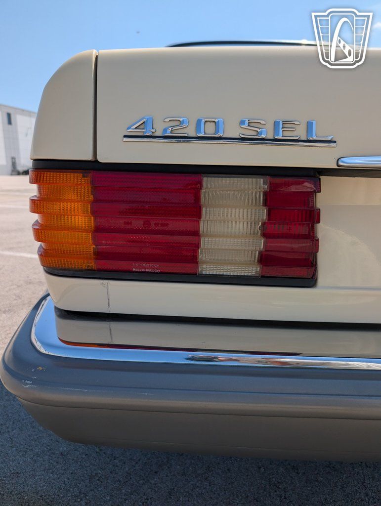 Gateway Classic Cars is proud to offer a classic icon of automotive luxury and engineering excellence: the 1986 Mercedes-Benz S-Class 420 SEL. This distinguished vehicle is presented in a timeless ivory cream exterior complemented by a sophisticated tan interior. Under the hood, you'll find a robust 4.2-liter V8 engine paired with a smooth automatic transmission, delivering a driving experience that is both powerful and refined.