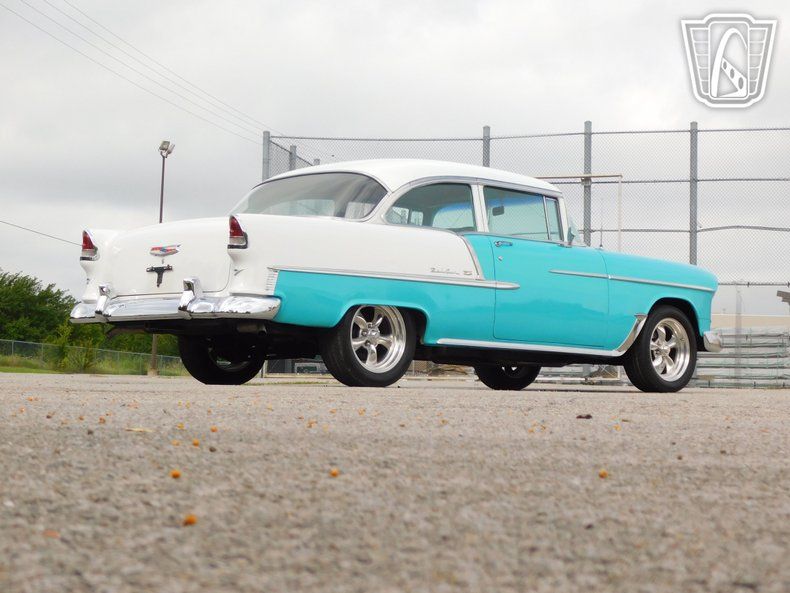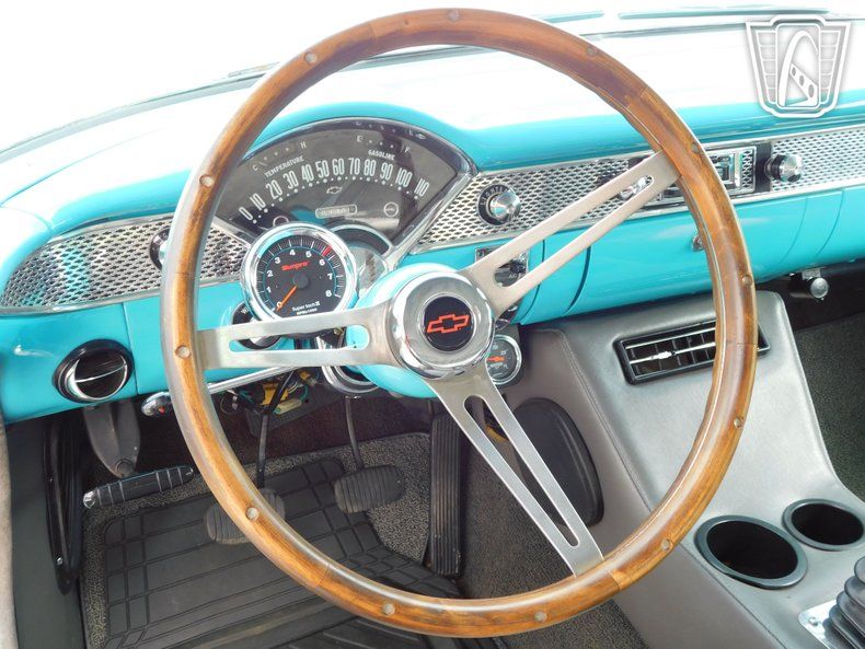 The exterior is further enhanced by custom wheels that add a touch of individuality to this already distinctive vehicle. Power brakes ensure confident stopping power, providing an added layer of security on the road. This 1955 Chevrolet Bel Air is a remarkable example of classic automotive craftsmanship, offering a unique blend of style, performance, and comfort that is sure to captivate enthusiasts and collectors alike.