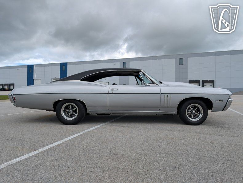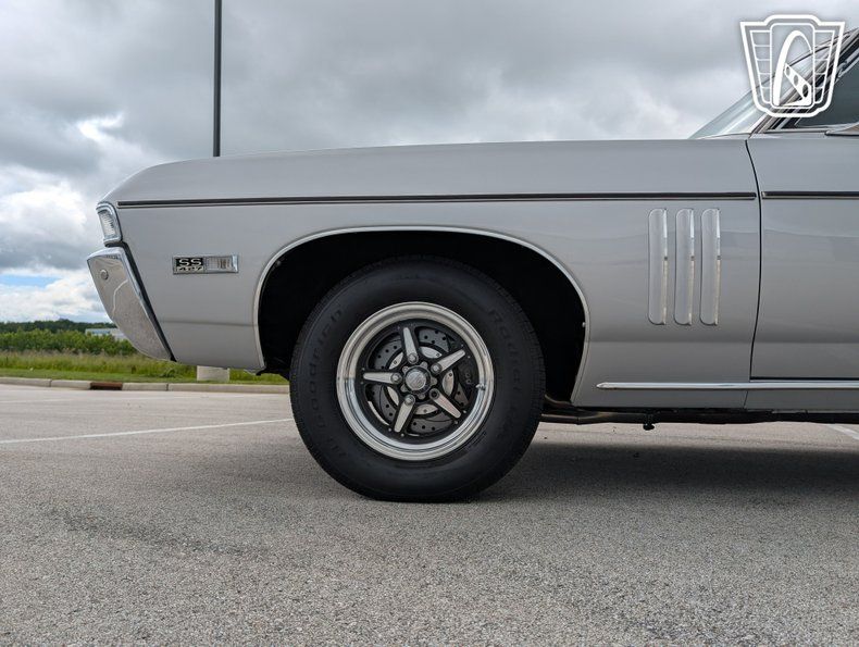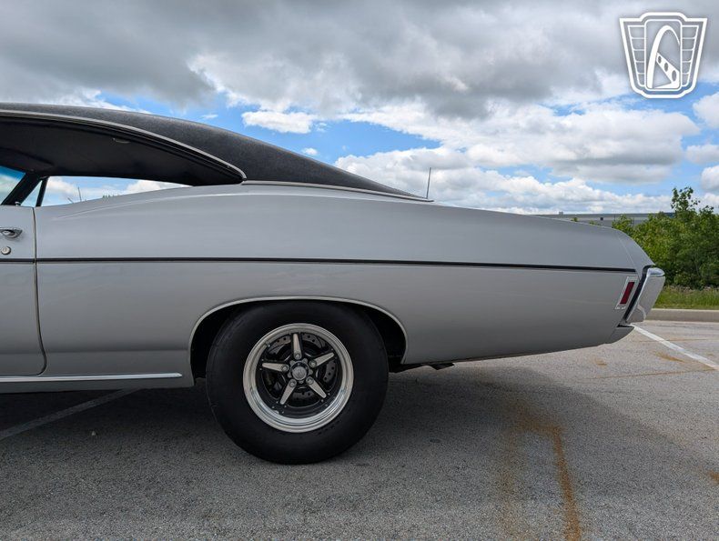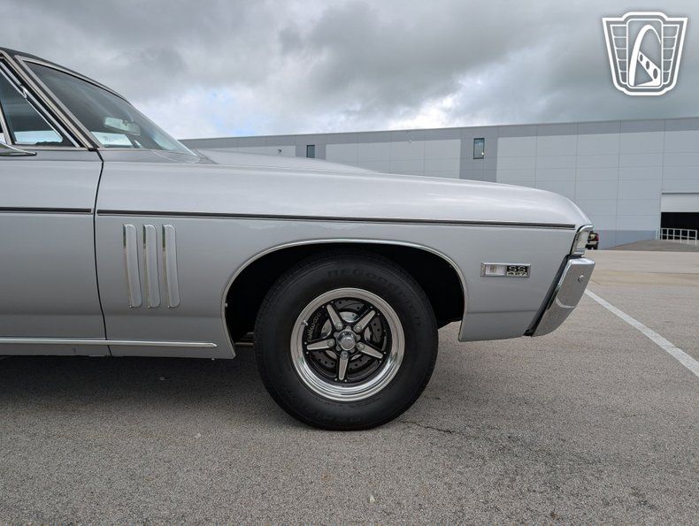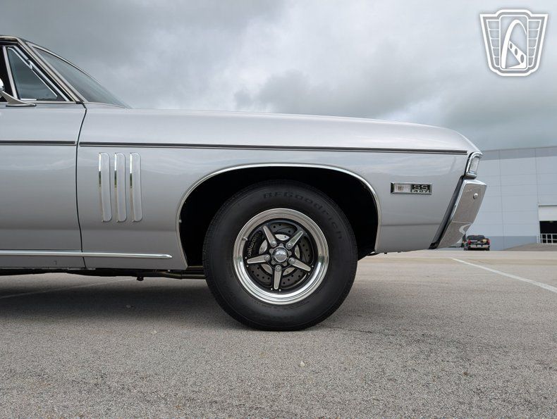 Gateway Classic Cars is proud to present this 1968 Chevrolet SS 427 Tribute, a vehicle that seamlessly blends vintage charm with modern functionality. This stunning model boasts a new Silver exterior with vinyl roof that exudes timeless elegance, complemented by a sleek black interior that offers a refined driving experience. Under the hood, the Impala is powered by a formidable 496ci V8 engine, 625 lift cam, MSD ignition, 950 Quick fuel carburetor, Pypes stainless steel exhaust paired with a 400 Turbo automatic transmission with shift kit and a 3200 Stahl convertor, 3.5" VRN drive shaft delivering a robust performance that is sure to impress enthusiasts and casual drivers alike. stopping power is provided by Wilwood 11.5" rotors and discs. UMI rear suspension, 4 Strange adjustable shocks, new front suspension by Global West. New Billett wheels wrapped in new tires