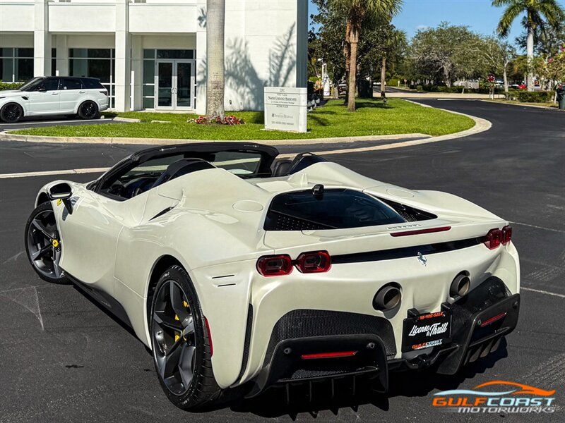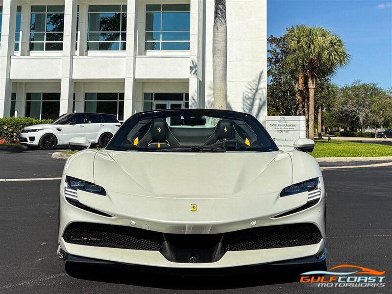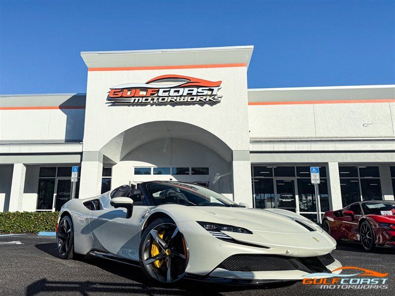 "2024 Ferrari SF90 Spider. Bianco Italia Exterior with Tetto Nero Interior. Features Include: 986 Horsepower Combined Output Twin Turbo 3.9L V8 Engine e4WD PHEV, 7.9 kWh Lithium Ion Battery, Eight-Speed F1 Dual-Clutch Automatic Transmission, F1-TRAC Traction Control/E-Diff 3, SCME-FrS Magnetorheological Dampers, 20"" Diamond Polished Forged Wheels, CCM-Carbon Ceramic Brake System, Yellow Brake Calipers, AFS System America, Back Radar, Carbon Fiber Side Air Splitter, Rear Diffuser In Carbon Fiber, Carbon Fiber Under Door Cover, Suspension Lifter, Full LED Headlights, LED Tail Lights, LED DRLs, Front & Rear Parking Sensors, Rear Parking Camera, Advanced Front Driving Camera, Keyless Access & Ignition with Push To Start, Carbon Fiber Driver Zones+LEDS, Carbon Fiber Door Panels, Carbon Fiber Upper Tunnel Trim, Colored Inner Details, CLDT With Special Leather, Colored Safety Belts, Carbon Fiber Dashboard Inserts, Leather Wrapped Multifunctional Steering Wheel, SiriusXM Radio Capable, Smartphone Integration, Bluetooth Phone & Audio, Navigation, Dual Zone Automatic Climate Control. Priced at Only $609,995. Financing and leasing available. We ship worldwide. We pay top dollar for lightly used sports cars, Call or text Our Product Specialists today at 239-522-2262 or email at sales@gcmworks.com. Fees and Taxes: $1199.00 Doc Fee on all Purchases. Out of state buyers are responsible for all state, county, city taxes and fees, as well as title/registration fees in the state that the vehicle will be registered."