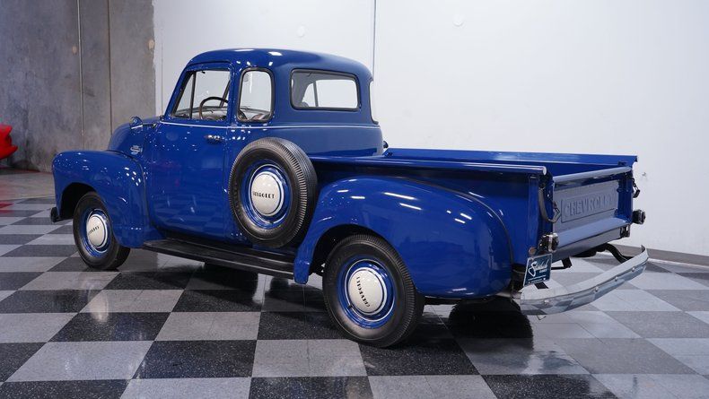 HIGHLIGHTS 216-CUBIC-INCH THRIFTMASTER 3100 INLINE 6 3-SPEED MANUAL TRANSMISSION DRUM BRAKES SHOW-STOPPING MARINER BLUE PAINT FACTORY-STYLE 16" WHEELS UPGRADED CARBURETOR ACCEPTS ETHANOL ELECTRONIC IGNITION UPGRADED 12-VOLT ELECTRICAL SYSTEM UPGRADED 6-VOLT TAILLIGHTS BURGUNDY VINYL INTERIOR BENCH SEAT AM/FM STEREO WITH AN AUXILIARY PORT AND BLUETOOTH CONNECTIVITY OWNER'S MANUAL INCLUDED