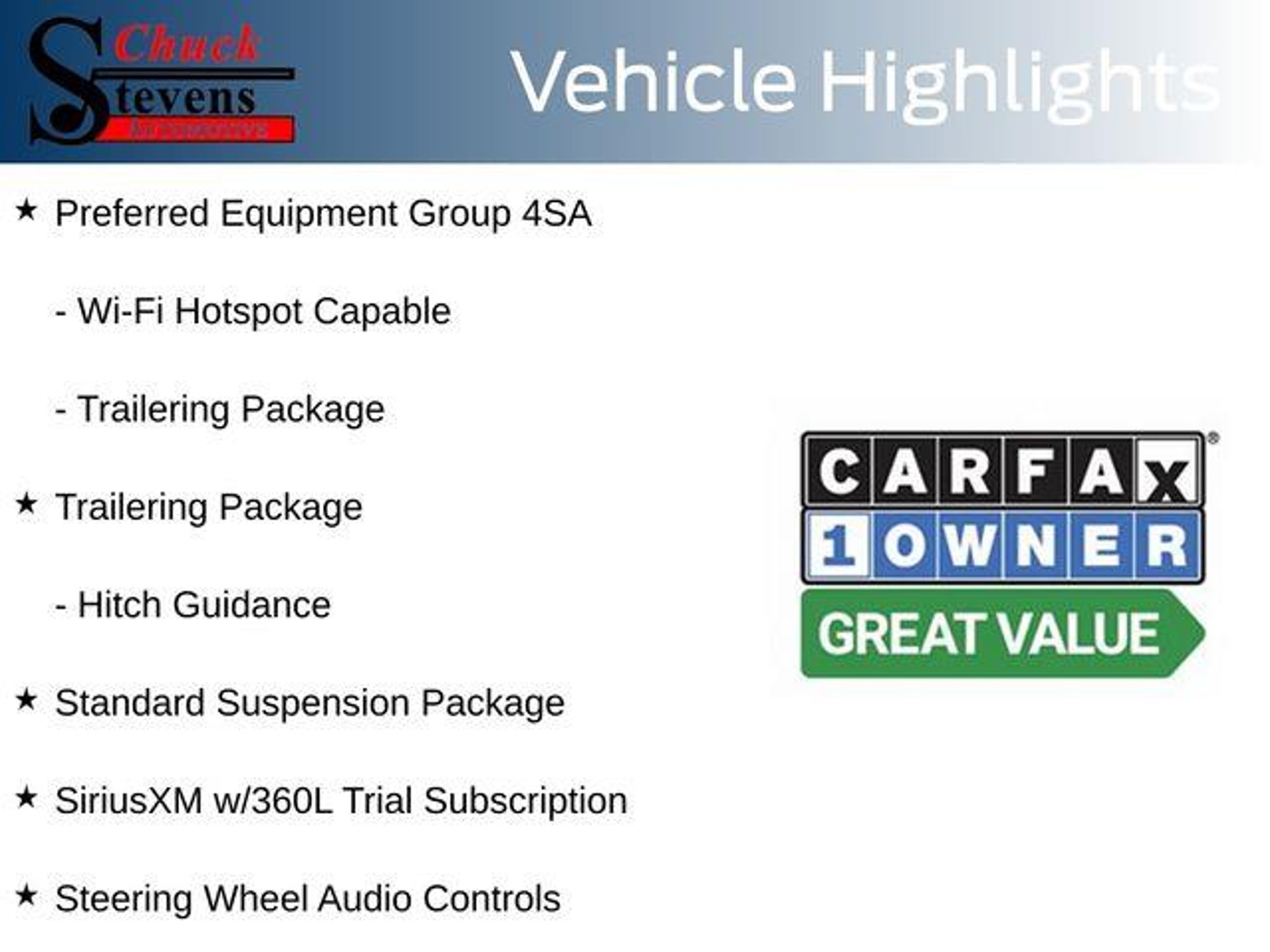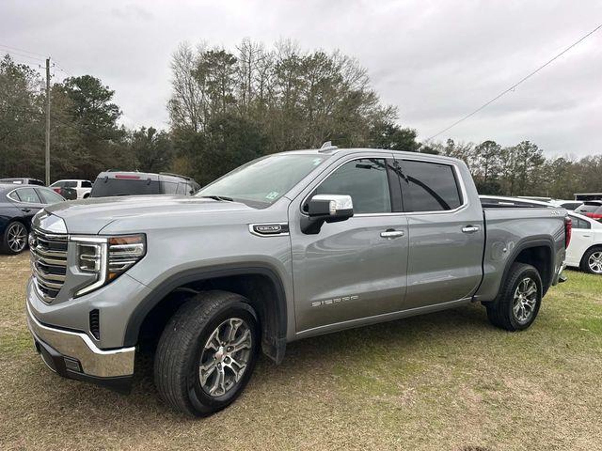 Welcome to Chuck Stevens Ford, located at 1304 HWY 31 South, Bay Minette, Alabama. We are proud to celebrate 25 Years of serving our community as one of the fastest-growing Ford dealers in the Southeast. Our goal is to make your shopping experience transparent, easy, and enjoyable. Every Pre-Owned and Certified vehicle at Chuck Stevens Ford has been fully inspected and reconditioned by a certified technician, giving you confidence in your purchase. Take advantage of our low-price guarantee on this 2025 GMC Sierra 1500. This Sierra 1500 comes finished in Sterling Metallic with a Black interior, making it a wonderful choice for your next vehicle. At Chuck Stevens Ford, we also include our exclusive Lifetime Powertrain Warranty at no additional cost. No gimmicks, no fine print, and serviceable at any certified repair facility nationwide. The online price includes a $2,500 Cash Down or trade equity. To qualify, customers must trade in a vehicle with a minimum appraised value of $2,500 or Cash Down. All prices reflect dealership financing and include a $1,000 finance coupon. See dealer for full details. . CARFAX One-Owner. Clean CARFAX. Recent Arrival! 2025 GMC Sierra 1500 SLT 4D Crew Cab SLT Sterling Metallic 4WD EcoTec3 5.3L V8 10-Speed Automatic 120-Volt Bed Mounted Power Outlet, 120-Volt Interior Power Outlet, 170 Amp Alternator, 2 Charge/Data USB Ports, 2 Type-C Charge-Only Rear USB Ports, 6-Speaker Audio System Feature, Alloy wheels, Auto-Locking Rear Differential, Auxiliary External Transmission Oil Cooler, Chrome Header & Chrome Grille Insert Bars, Color-Keyed Carpeting Floor Covering, Deep-Tinted Glass, Electric Rear-Window Defogger, Front Frame-Mounted Black Recovery Hooks, Front Rain-Sensing Wipers, HD Rear Vision Camera, Hitch Guidance, Integrated Trailer Brake Controller, Keyless Open & Start, LED Cargo Area Lighting, Manual Tilt-Wheel & Telescoping Steering Column, Navigation System, OnStar Services Capable, Perimeter Lighting, Power Door Locks, Power Front Passenger Windows w/Express Up/Down, Power Front Windows w/Driver Express Up/Down, Power Rear Windows w/Express Down, Preferred Equipment Group 4SA, Push Button Start, Rear Wheelhouse Liners, Remote Vehicle Starter System, SiriusXM w/360L Trial Subscription, Standard Suspension Package, Steering Wheel Audio Controls, Theft Deterrent System (Unauthorized Entry), Trailering Package, Wheels: 18 x 8.5 6-Spoke Machined Aluminum, Wi-Fi Hotspot Capable. LIFETIME POWERTRAIN PROGRAM included at no additional charge for all vehicles that ha