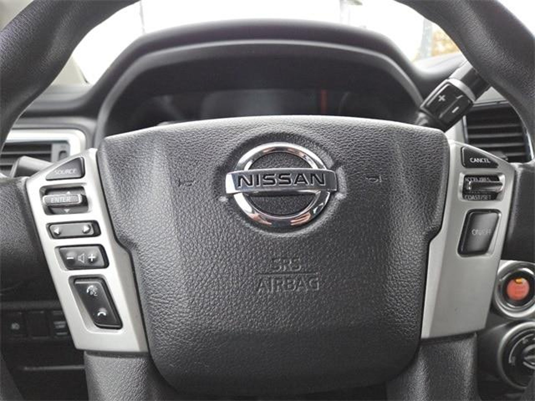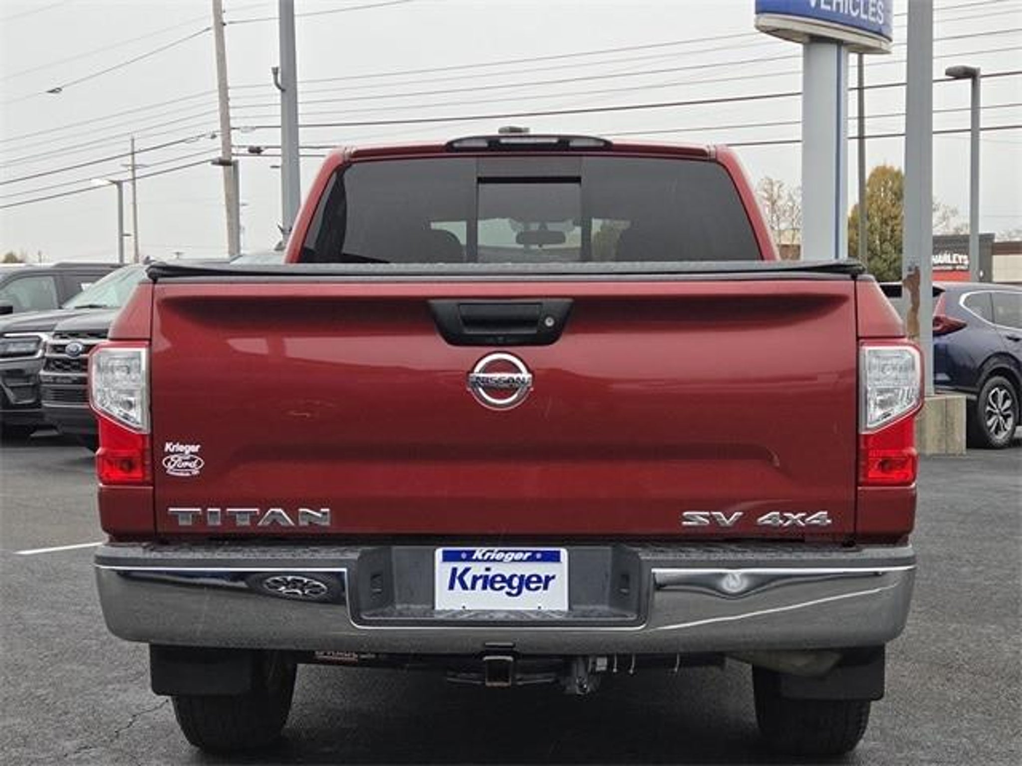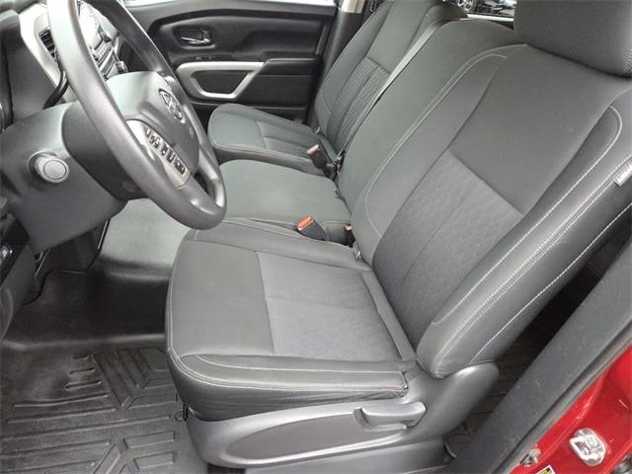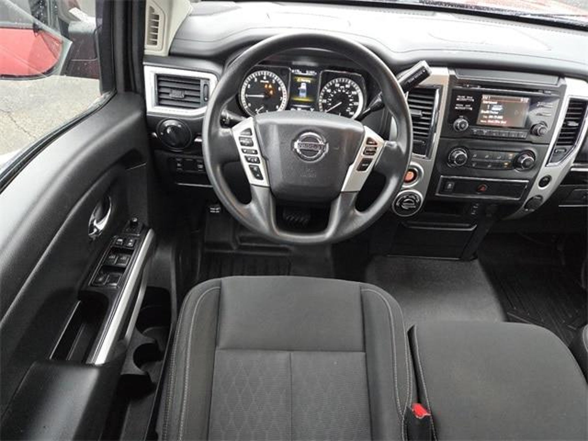 Certified. Certification Program Details: Ford Advantage Blue Certified. 139-pt inspection. 2018 Nissan Titan SV 4D Crew Cab Cayenne Red Titan SV, 4D Crew Cab, 5.6L V8, 7-Speed Automatic, 4WD, Cayenne Red, Black Cloth, 4-Wheel Disc Brakes, 6 Speakers, ABS brakes, Air Conditioning, AM/FM radio: SiriusXM, Brake assist, CD player, Cloth Seat Trim, Electronic Stability Control, Heated door mirrors, Heated Front Captain's Chairs, Illuminated entry, Leather Seat Trim, Panic alarm, Power door mirrors, Power steering, Power windows, Radio: NissanConnect AM/FM w/SiriusXM, Rear step bumper, Rear window defroster, Remote keyless entry, Security system, Speed-sensing steering, Steering wheel mounted audio controls, Telescoping steering wheel, Tilt steering wheel, Traction control, Turn signal indicator mirrors, Wheels: 18 x 8 Silver Painted Alloy. 4WD 7-Speed Automatic 5.6L V8 Odometer is 41074 miles below market average!