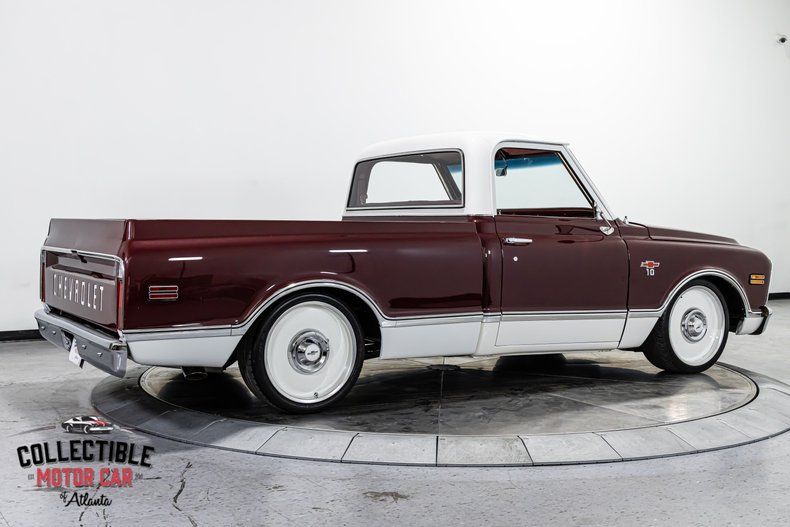 Offered by Collectible Motorcar of Atlanta, this 1968 Chevrolet C10 Restomod is a beautifully executed classic pickup that combines timeless Chevrolet styling with modern LS performance, RideTech air suspension, and true street-friendly drivability. Finished in a striking two-tone deep burgundy and white over a matching burgundy interior, this C10 presents as a high-end, thoughtfully built truck designed to be both driven and admired.