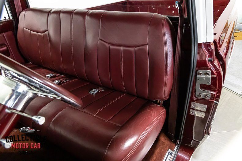 The interior has been restored and tastefully upgraded while maintaining a classic factory-inspired look. The burgundy upholstery complements the exterior beautifully and provides a cohesive, high-end appearance.