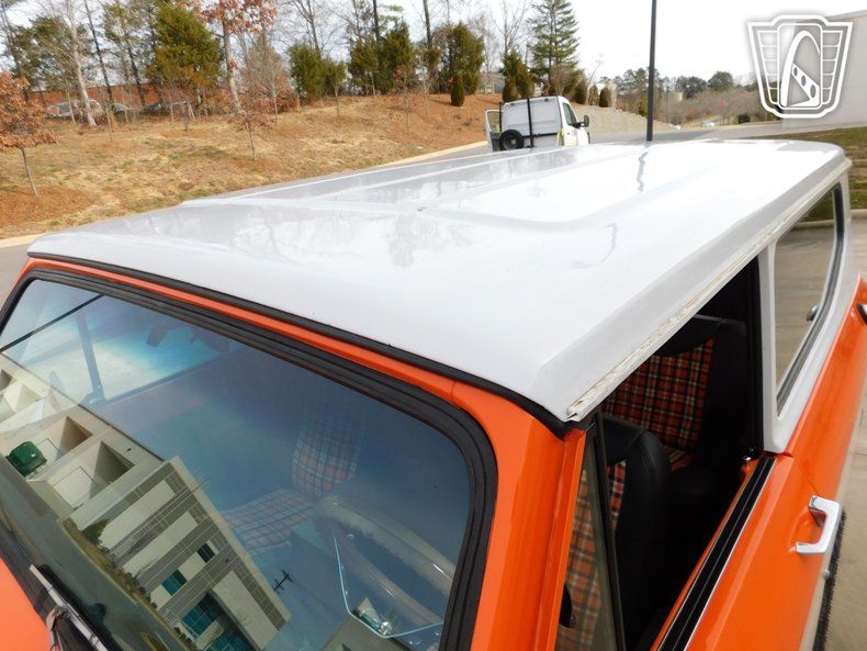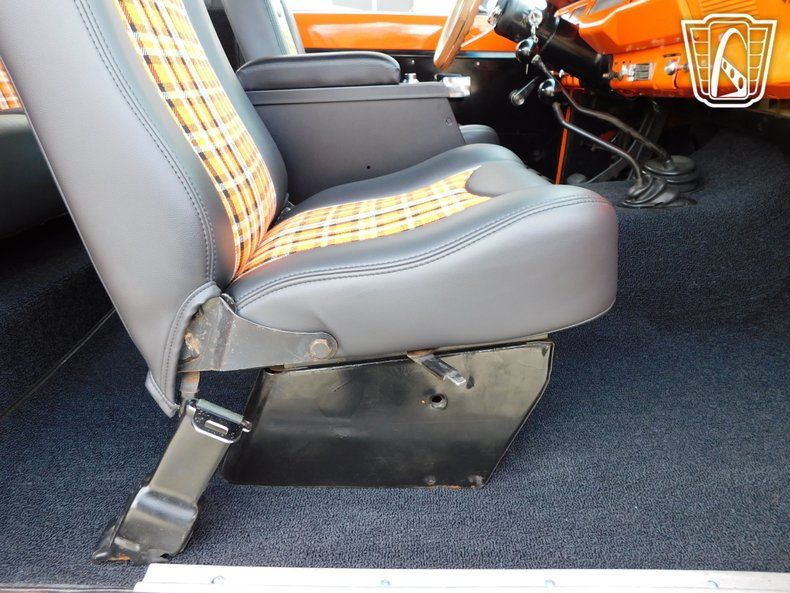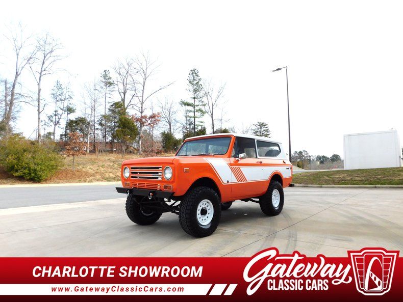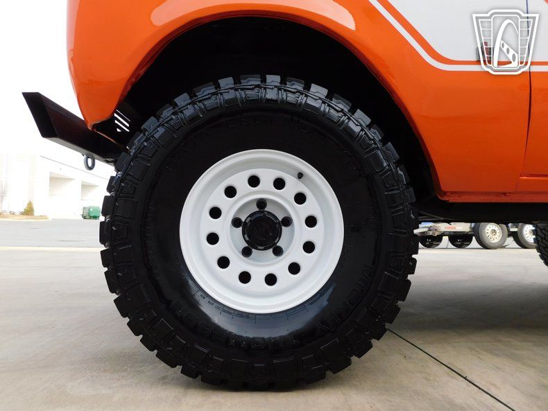 Introducing a striking 1972 International Harvester Scout II, a classic embodiment of rugged style and timeless design. This vintage vehicle boasts an eye-catching orange exterior that totally complements its adventurous spirit. The bold color is matched with a unique black and orange plaid interior, creating a distinctive look that is sure to turn heads wherever you go. Under the hood, this Scout II is powered by a robust 345 cubic inch V8 engine, providing the strength and reliability that International Harvester is known for. Coupled with a 4WD system, this vehicle is equipped to handle a variety of terrains, making it an ideal choice for those who seek adventure off the beaten path. The 3-speed manual transmission offers a hands-on driving experience, allowing you to fully engage with the road ahead. Inside, the Scout II features a practical vinyl interior, designed for durability and ease of maintenance. The inclusion of seatbelts ensures a level of safety for all passengers. For entertainment, an AM/FM radio is installed, providing a touch of nostalgia and functionality for your journeys. This classic vehicle rides on distinctive white nomad convoy rims, paired with rugged Mickey Thompson tires that enhance its off-road capabilities while maintaining a stylish appearance. The removable hardtop adds versatility, allowing you to enjoy open-air driving when desired, or secure protection from the elements when needed. Overall, this 1972 International Harvester Scout II is a remarkable blend of vintage charm and functional design, ready to deliver a memorable driving experience. Whether you're cruising through the city or exploring the great outdoors, this Scout II stands ready to accompany you on your next adventure.