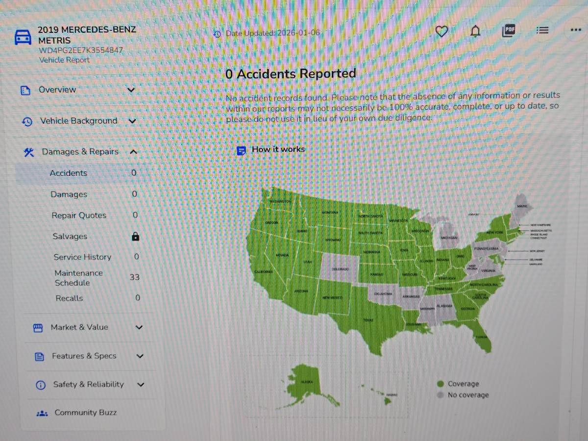 2019 Mercedes-Benz Metris Passenger Van This 2019 Mercedes-Benz Metris Passenger Van is a one-owner vehicle in excellent condition with a strong service history. The van runs and drives like new, features removable seating for cargo flexibility, and has received consistent synthetic oil service. Recent maintenance includes brakes, rotors, drivetrain servicing, and electrical updates. Clean title, no accidents, and well maintained throughout, this Metris is a versatile and dependable cargo solution. Located in West Palm Beach, FL 33417 For more information, please call 833-265-6113 and mention ID 90758