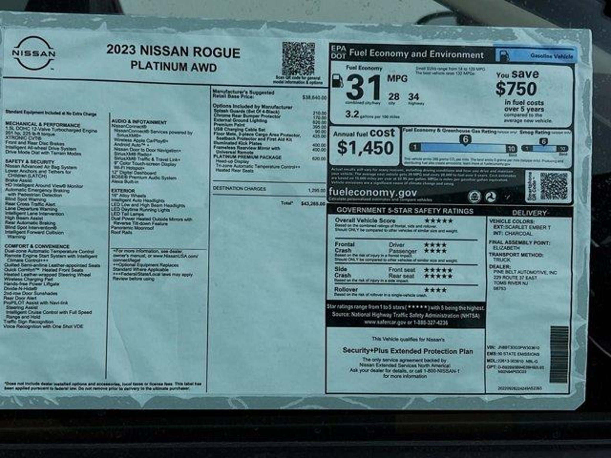 SCARLET EMBER T exterior and CHARCOAL interior. Heated Leather Seats, Sunroof, Navigation, All Wheel Drive, Turbo Charged, Panoramic Roof, [P03] PLATINUM PREMIUM PACKAGE, [N94] FRAMELESS REARVIEW MIRROR W/UNI... Alloy Wheels. SERVICE COMPLETED Service Work completed on this Nissan Rogue included: Complete Multi-Point Inspection, Oil & Filter Change by a Factory Trained Technician, Battery Voltage Test, Tires Inspected, Brake Inspection, Emissions System Check, Professional Detailed Inside and Out, Function Test all Lights, Check the Complete Exhaust System, Cooling System Inspection, Transmission Fluid Inspection, Differential Fluid Inspection, Function Test all Options & Accessories. KEY FEATURES INCLUDE Leather Seats, Navigation, Sunroof, Panoramic Roof, All Wheel Drive. Nissan Platinum with SCARLET EMBER T exterior and CHARCOAL interior features a 3 Cylinder Engine with 201 HP at 5600 RPM*. OPTION PACKAGES PLATINUM PREMIUM PACKAGE Rear Heated Seats, Tri-Zone HVAC, Head Up Display, FRAMELESS REARVIEW MIRROR W/UNIVERSAL REMOTE. A GREAT VALUE Reduced from $35,995. This Rogue is priced $500 below J.D. Power Retail. MORE ABOUT US Pine Belt Automotive is committed to maintaining a level of excellence that will exceed all levels of expectations set by our customers. We look forward to providing you with the finest vehicles and automobile services through adherence to moral and ethical principles. This company was built on fundamental family values and we intend on delivering operational superiority in every aspect of our establishment. Pricing analysis performed on 11/10/2025. Horsepower calculations based on trim engine configuration. Fuel economy calculations based on original manufacturer data for trim engine configuration. Please confirm the accuracy of the included equipment by calling us prior to purchase.