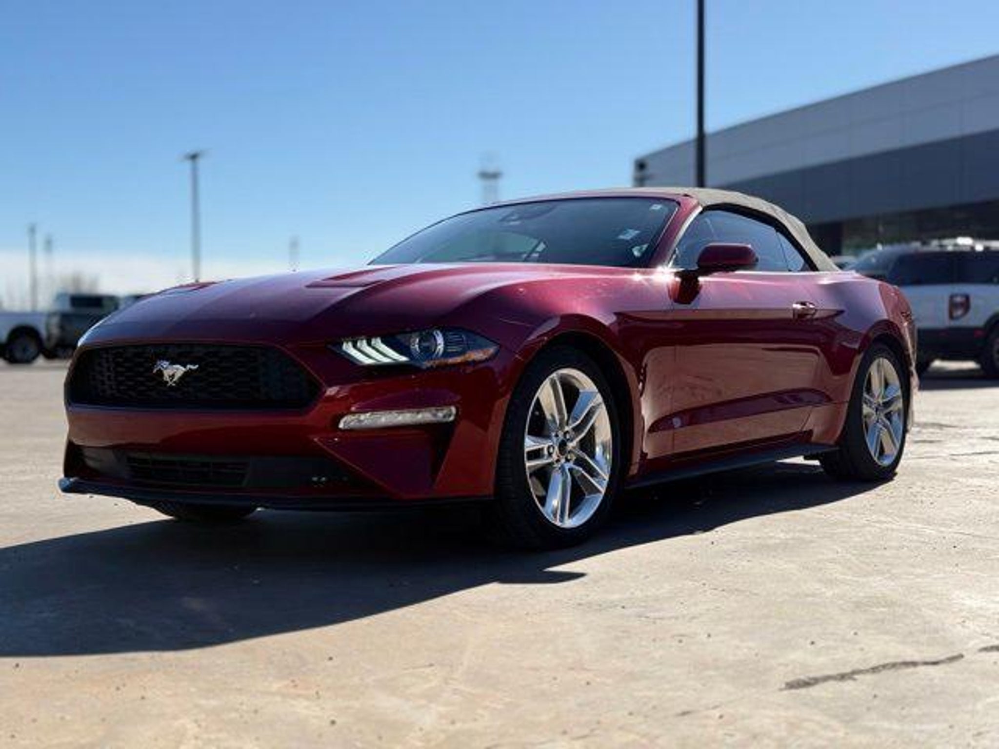 Recent Arrival! 2021 Rapid Red Metallic Tinted Clearcoat Ford Mustang EcoBoost Premium 2D Convertible RWD EcoBoost 2.3L I4 GTDi DOHC Turbocharged VCT ABS brakes, Alloy wheels, Compass, Electronic Stability Control, Front dual zone A/C, Heated door mirrors, Heated front seats, Illuminated entry, Low tire pressure warning, Remote keyless entry, Traction control. CARFAX One-Owner. Clean CARFAX. Convertible 10-Speed Automatic 20/28 City/Highway MPG Oil Changes for Life at no cost to you! 405-338-4788. OKLAHOMAS #1 SELLING F-SERIES DEALER FOR 12 YRS RUNNING, COME EXPERIENCE THE DIFFERENCE!
