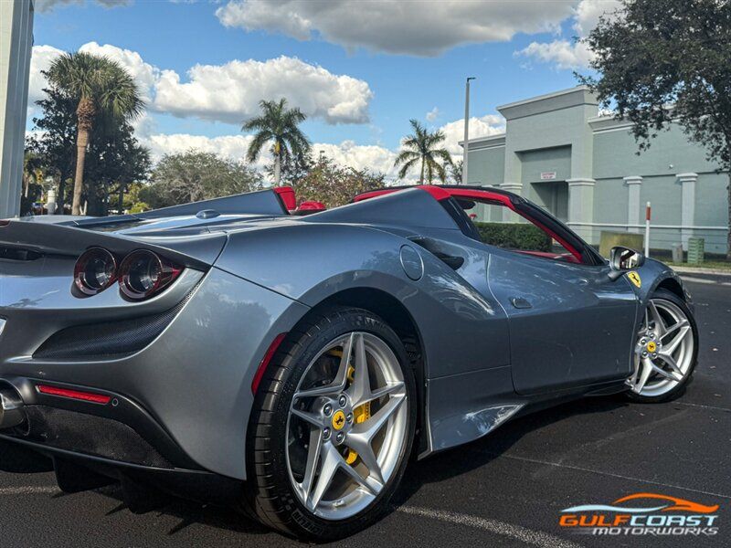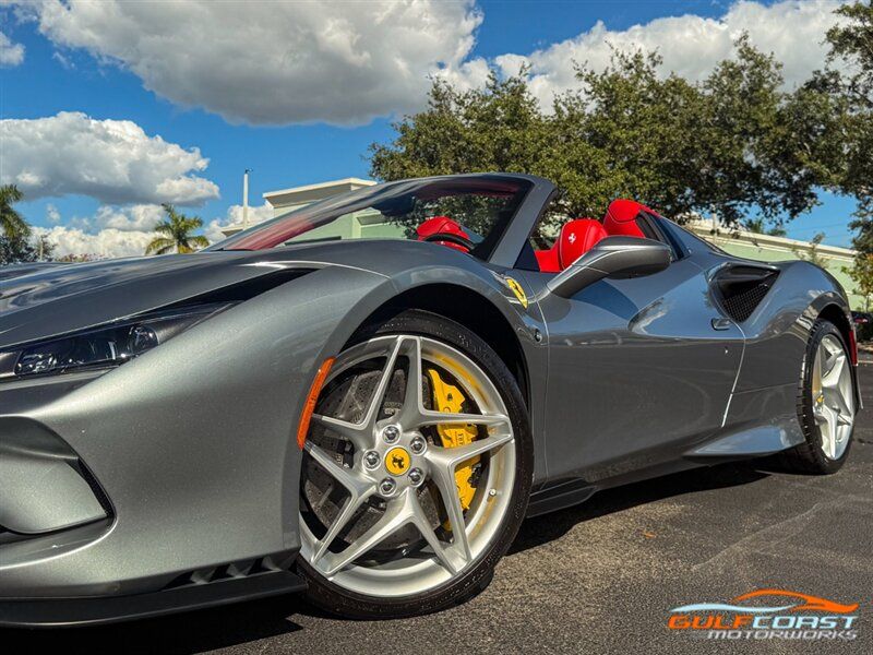 "2021 Ferrari F8 Spider. Grigio Titanio Metallic Exterior with Rosso Ferrari Leather Interior. Features Include: 710 Horsepower Twin Turbo 3.9L V8 Engine, Seven-Speed F1 Dual-Clutch Automatic Transmission, Magnetorheological Suspension Dampers, Suspension Lift, 20"" 5-Split-Spoke Silver Forged Wheels, CCM-Carbon Ceramic Brake System, Yellow Brake Calipers, Power Retractable Hard Top, Carbon Fiber Side Air Splitter, Suspension Lifter, Scuderia Ferrari Shields, Adaptive Frontlight System, Full LED Headlights & Turn Signals, LED Tail Lights, Front & Rear Parking Sensors, Rear Parking Camera, Carbon Fiber Steering Wheel + LEDs, Shift Paddles, Backrest In Leather, Back Radar, Carbon Fiber Central Bridge, Center Console In Leather, Colored Upper Dashboard, Leather Lower Dashboard, Cavallino Stitched on Headrest, Advanced Front Driving Camera, Additional Colored Matts With Logo, Inner Color Rear Leather Trim, Diamond Style For Seats, Leather Door Panel Central Trim, Door Panel Medalian in Leather, Parking Camera, White Rev Counter, Full Electric Seats, Red Air Vent Grip on Dashboard, Colored Special Stitching, Colored Steering Wheel, SiriusXM Radio Capable, Smartphone Integration, Bluetooth Phone & Audio, Navigation, HomeLink, Dual Zone Automatic Climate Control. Priced at only $419,995. Financing and leasing available. We ship worldwide. We pay top dollar for lightly used sports cars, Call or text Our Product Specialist today at 239-522-2262 or email at sales@gcmworks.com. Fees and Taxes: $1199.00 Doc Fee on all Purchases. Out of state buyers are responsible for all state, county, city taxes and fees, as well as title/registration fees in the state that the vehicle will be registered. -- INSTALLED FEATURES: Air filtration, Front air conditioning: automatic climate control, Front air conditioning zones: dual, Airbag deactivation: occupant sensing passenger, Front airbags: dual, Side airbags: front / head protection chambers, Antenna type: diversity / element, Auxiliary audio input: Bluetooth / iPod/iPhone / jack / USB, Hard drive: 30GB, Radio: AM/FM / voice operated, Radio data system, Satellite radio: SiriusXM, Speed sensitive volume control, Total speakers: 6, ABS: 4-wheel, Braking assist, Cornering brake control, Electronic brakeforce distribution, Electronic parking brake, Front brake type: carbon ceramic disc, Power brakes, Premium brakes: Brembo, Rear brake type: carbon ceramic disc, Center console trim: leather, Dash trim: leather, Door sill trim: aluminum, Door trim: leather, Floor mat material: carpet, Floor material: carpet, Floor mats: front, Foot pedal trim: aluminum, Interior accents: aluminum, Steering wheel trim: leather, Capless fuel filler system, Cargo area light, Center console: front console with storage, Cruise control, Cupholders: front, Multi-function remote: keyless entry / panic alarm / trunk release, One-touch windows: 2, Overhead console: front, Power outlet(s): 12V front / USB front, Power steering: variable/speed-proportional, Power windows: lockout button, Push-button start, Reading lights: front, Rearview mirror: manual day/night, Steering wheel: tilt and telescopic, Steering wheel mounted controls: audio / paddle shifter / phone / voice control, Storage: door pockets, Tool kit, Vanity mirrors: passenger, Active grille shutters, Door handle color: body-color, Exhaust: dual tip, Exhaust tip color: stainless steel, Front bumper color: body-color, Grille color: black, Ground effects/lower spoilers, Mirror color: body-color, Rear bumper color: body-color, Rear spoiler: wing, Rear spoiler color: body-color, Rocker panel color: black, Window trim: black, Clock, Compass, Customizable instrument cluster, Digital odometer, External temperature display, Fuel economy display: MPG / range, Gauge: tachometer, Instrument cluster screen size: 5 in. (dual), Multi-function display, Trip odometer, Warnings and reminders: coolant temperature warning / lamp failure / low battery / low fuel level / low oil pressure / low washer fluid / maintenance due, Daytime running lights: LED, Exterior entry lights: approach lamps, Headlights: auto delay off / auto on/off / LED, Rear fog lights, Taillights: LED, Side mirror adjustments: power / power folding, Side mirrors: heated, Auto start/stop, Auxiliary oil cooler, Battery: maintenance-free, Battery saver, Drive mode selector, Limited slip differential: rear, Mid-mounted engine, Performance exhaust, Convertible rear window: glass, Convertible roof: power retractable hard top, Convertible roof wind blocker, Automatic hazard warning lights, Camera system: rearview, Crumple zones: front / rear, Emergency interior trunk release, Impact sensor: fuel cut-off, Parking sensors: rear, Rearview monitor: in dash, Rollover protection system, Emergency locking retractors: front, Front seatbelts: 3-point, Seatbelt force limiters: front, Seatbelt pretensioners: front, Seatbelt warning sensor: front, Driver seat manual adjustments: 4 / reclining, Front headrests: 2 / integrated, Front seat type: sport bucket, Passenger seat manual adjustments: 4 / reclining, Upholstery: premium leather, Anti-theft system: alarm / anti-tow sensor / interior motion sensor / perimeter alarm / vehicle immobilizer, Power door locks: auto-locking, Hill holder control, Stability control, Traction control, Active suspension, Driver adjustable suspension: ride control, Front shock type: monotube, Front spring type: coil, Front stabilizer bar, Front struts, Front suspension classification: independent, Front suspension type: double wishbone, Rear shock type: monotube, Rear spring type: coil, Rear stabilizer bar, Rear suspension classification: independent, Rear suspension type: multi-link, Suspension control: magnetic, Tuned suspension: sport, Electronic messaging assistance: voice operated / with read function, Hands-free phone call integration: voice operated, Navigation data: real time traffic, Navigation system: hard drive / voice operated, Wireless data link: Bluetooth, Spare tire