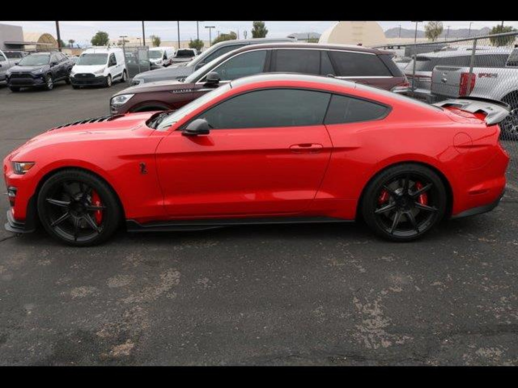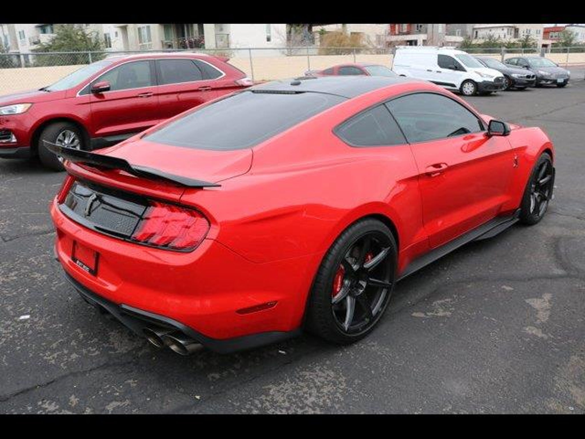Race Red 2020 Ford Mustang Shelby GT500 RWD 7-Speed Automatic 5.2L V8 20 Wheels, 4-Wheel Disc Brakes, 9 Speakers, ABS brakes, Adaptive suspension, Air Conditioning, Alloy wheels, AM/FM radio: SiriusXM, AM/FM Stereo, Auto-dimming Rear-View mirror, Automatic temperature control, Black Indoor Car Cover (Dealer Installed), BLIS Blind Spot Information System, Brake assist, Bumpers: body-color, CD player, Compass, Delay-off headlights, Driver door bin, Driver vanity mirror, Dual front impact airbags, Dual front side impact airbags, Electronic Stability Control, Emergency communication system: 911 Assist, Exposed Carbon Fiber Instrument Panel, Exterior Parking Camera Rear, Four wheel independent suspension, Front anti-roll bar, Front Bucket Seats, Front Center Armrest, Front dual zone A/C, Front reading lights, Fully automatic headlights, Garage door transmitter, Handling Package, Heated front seats, Heated Mirrors, High-Intensity Discharge Headlights, Illuminated entry, Knee airbag, Leather-Trimmed Sport Seats, Low tire pressure warning, Navigation System, Occupant sensing airbag, Outside temperature display, Overhead airbag, Painted Black Roof, Panic alarm, Passenger door bin, Passenger vanity mirror, Power door mirrors, Power driver seat, Power passenger seat, Power steering, Power windows, Radio data system, Radio: B&O Sound System by Bang & Olufsen, Rear anti-roll bar, Rear window defroster, Remote keyless entry, Security system, SiriusXM Radio, Speed control, Speed-sensing steering, Speed-Sensitive Wipers, Split folding rear seat, Spoiler, Sport steering wheel, Steering wheel mounted audio controls, SYNC 3 Communications & Entertainment System, Tachometer, Technology Package, Telescoping steering wheel, Tilt steering wheel, Traction control, Trip computer, Variably intermittent wipers, Ventilated front seats, Voice-Activated Touch-Screen Navigation System, Voltmeter, Wheels: 20 Flow Formed High Gloss Black Aluminum.Recent Arrival! Odometer is 4774 miles below market average!
