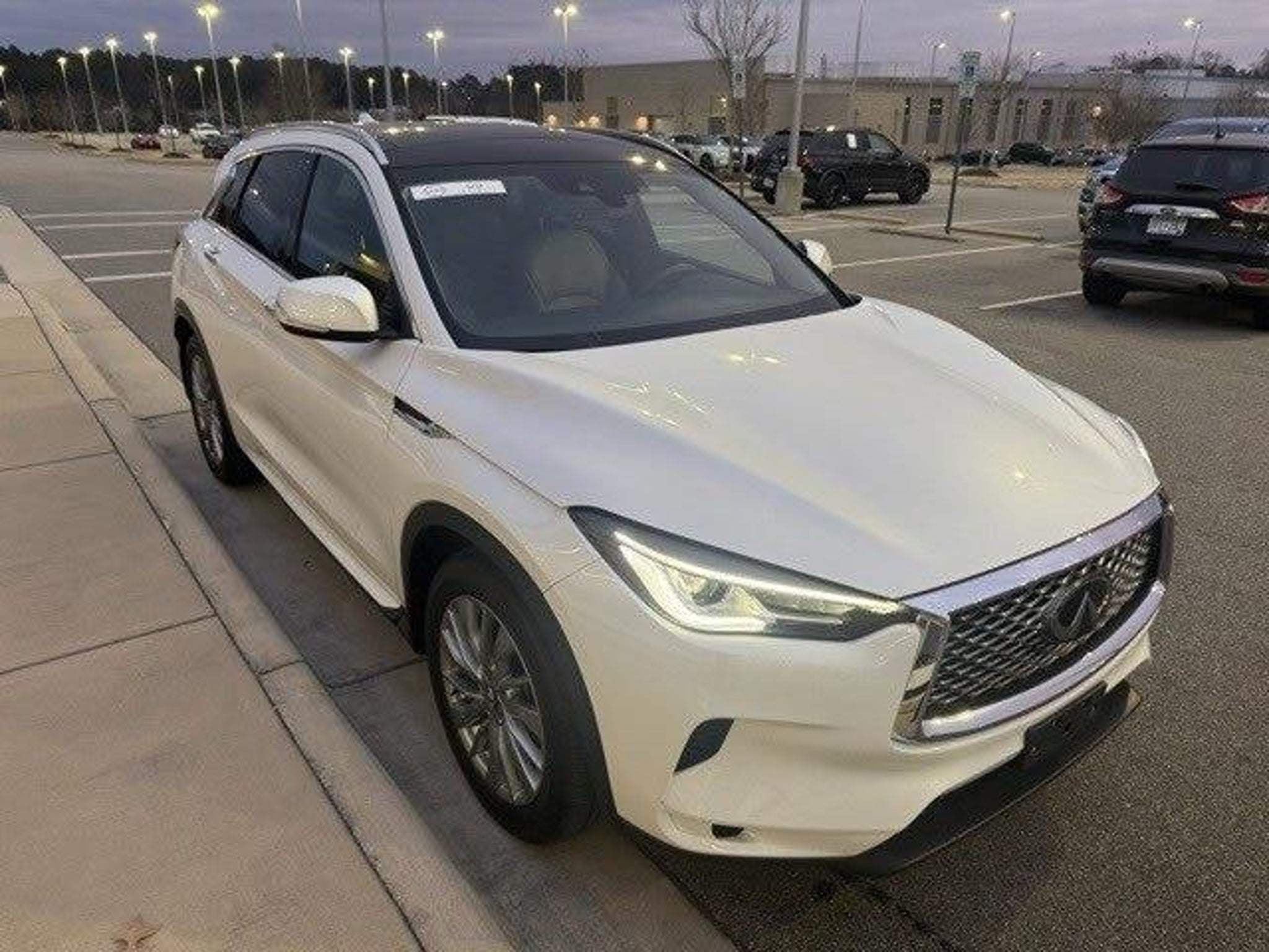 Radiant White 2023 INFINITI QX50 LUXE AWD CVT I4 AM/FM radio: SiriusXM, Front dual zone A/C, Heated front seats, Illuminated Kick Plates, Power Liftgate, Power moonroof, Remote keyless entry, Wheels: 19 Silver Painted Aluminum Alloy. Recent Arrival! Odometer is 4467 miles below market average! 22/28 City/Highway MPG