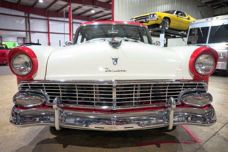 GR Auto Gallery is excited to present this 1956 Ford Fairlane Town Sedan. Finished in the classic two tone combination of Colonial White and Fiesta Red, this Fairlane captures the spirit of mid fifties Americana with its sweeping chrome trim, full wheel covers, and elegant stance on whitewall tires. The brightwork glistens against the bold paint, and subtle touches like the red wheels with chrome hubcaps give it an extra dose of personality. This car is a true snapshot of Ford's styling leadership in the era of fins and flash.