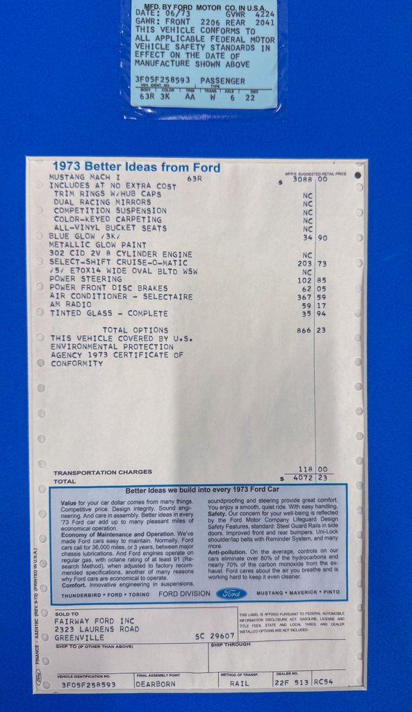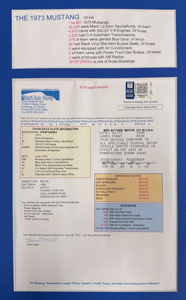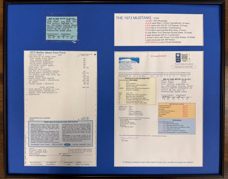 Deluxe Marti report showing 1 of only 349 in this color combination (134,867 Mustangs built that year!)