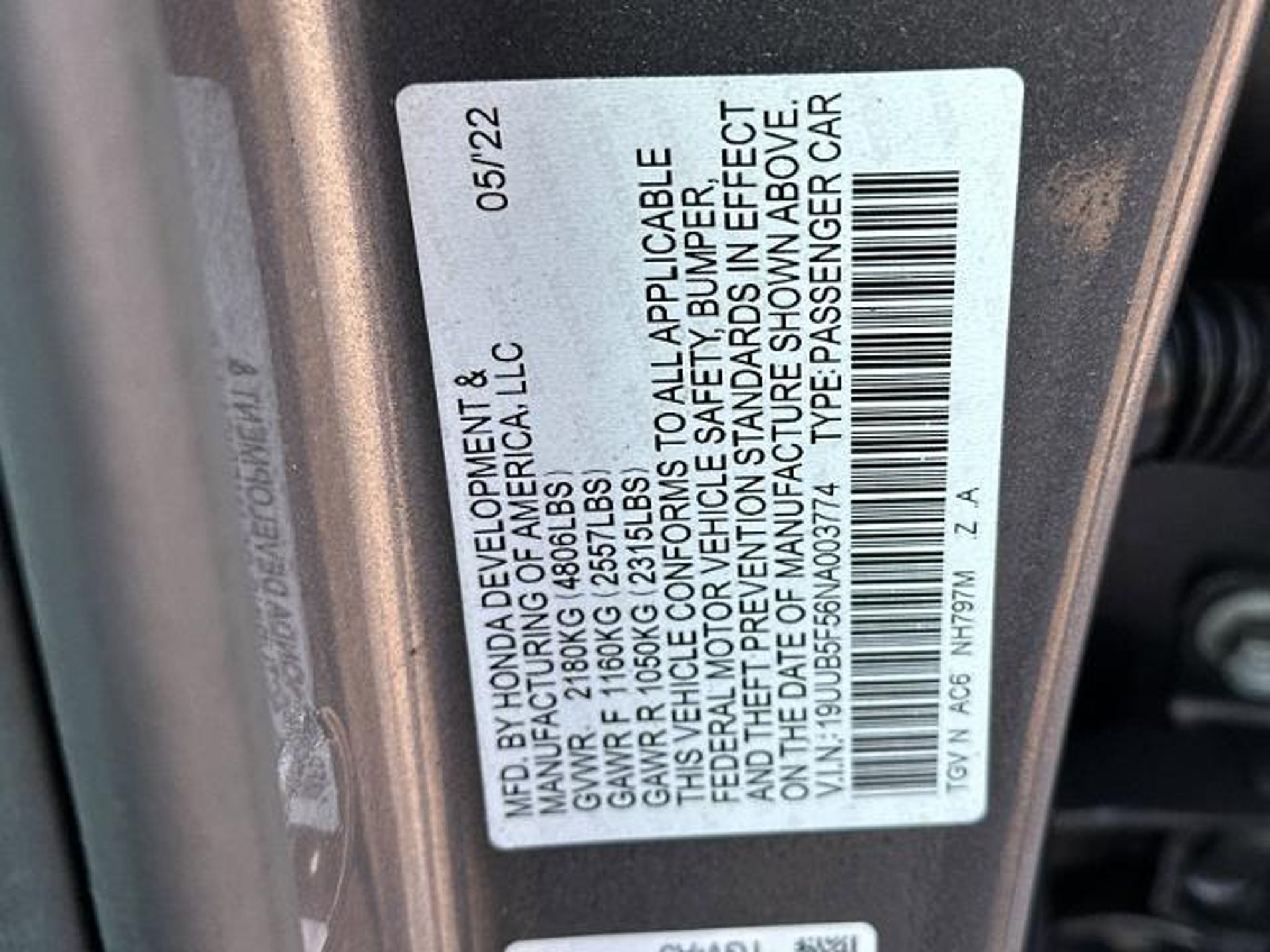 VIN 19UUB5F56NA003774