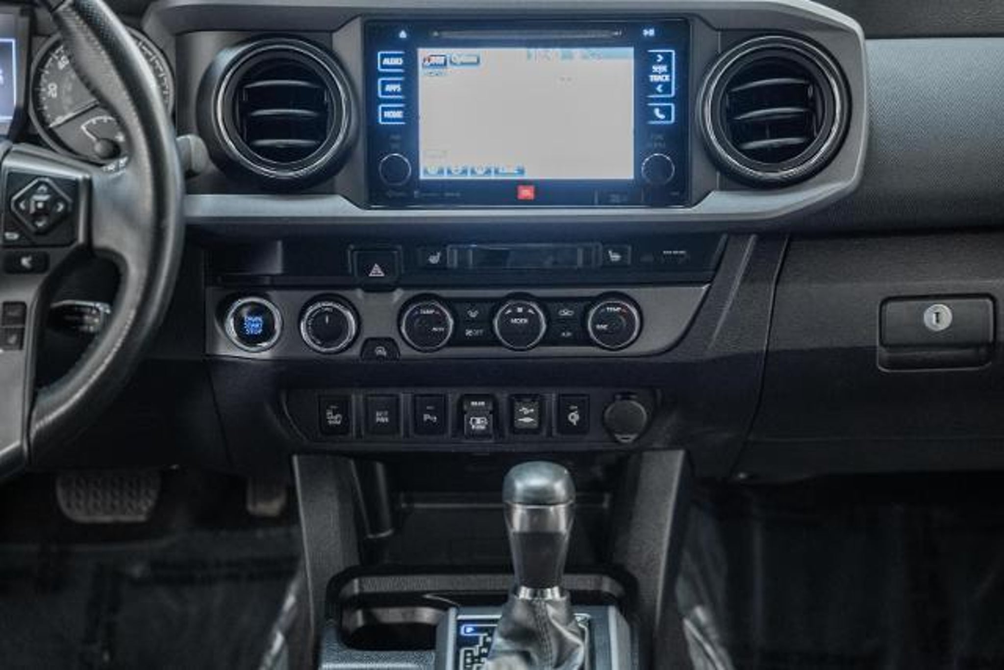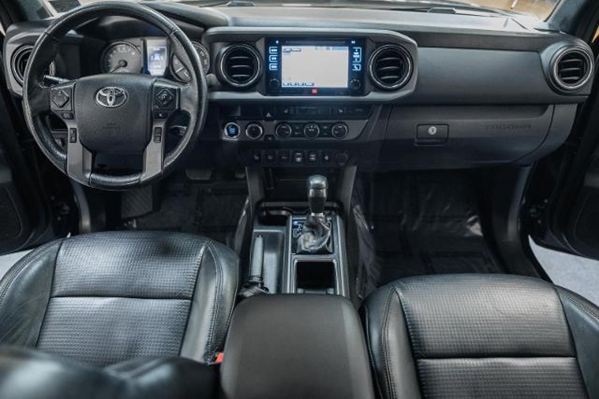 POWER MOONROOF / SUNROOF / POWER TILT SLIDING ROOF, VOICE ACTIVATED NAVIGATION, NAVIGATION / GPS / NAV, TECHNOLOGY PACKAGE, BLIS / BLIND SPOT MONITORING / BLIND SIDE ALERT, DYNAMIC RADAR CRUISE CONTROL / ADAPTIVE CRUISE CONTROL / SMART CRUISE CONTROL, LANE DEPARTURE WARNING, LANE DEPARTURE ALERT / LANE KEEPING ALERT, REARVIEW CAMERA / BACK UP CAMERA / REVERSE CAMERA, REAR VIEW CAMERA WDYNAMIC GUIDELINES, ANDROID AUTO & APPLE CARPLAY, LEATHER SEATS, HEATED FRONT ROW SEATS, POWER WINDOWS & LOCKS, FOUR WHEEL DRIVE / 4WD / 4X4, STEERING WHEEL AUDIO CONTROLS, CRUISE CONTROL, REAR CROSS TRAFFIC ALERT, PREMIUM AUDIO W/INTEGRATED NAV & APP STE, POWER TAILGATE LOCK, POWER SLIDING REAR WINDOW, BLUETOOTH AUDIO STREAMING, BACK UP SENSORS, AUTO HIGH BEAMS, 4WD, 120V/400W Deck Mounted AC Power, ABS brakes, Active Cruise Control, Air Conditioning, Alloy wheels, Auto-Dimming Inside Rear-View Mirror w/Compass, Automatic Headlights, Axle Ratio: 3.91, Blind Spot Monitor w/Rear Cross Traffic Alert, Bumpers: body-color, Color-Keyed Overfenders, Dual Zone Automatic Climate Control, Electronic Stability Control, Engine Immobilizer, Entune App Suite, Front Bucket Seats, Front Center Armrest, Front reading lights, Heated Front Seats, Illuminated entry, Leather Seat Trim, LED Daytime Running Lamps, Low tire pressure warning, Passenger door bin, Power Sliding Rear Window w/Privacy Glass, Power steering, Power Tilt/Slide Moonroof, Power windows, Radio: Entune Premium JBL AM/FM/CD w/Nav & App Ste, Rear Parking Assist Sonar, Remote keyless entry, Smart Key w/Push Button Start, Speed-sensing steering, Split folding rear seat, Steering wheel mounted audio controls, Technology Package, Traction control, TRD Premium Sport Package (PQ), Variable Intermittent Wipers, Variably intermittent wipers, Wheels: 17 x 7.5 Machined Alloy, Wide Angle Front Fog Lamps. 2019 Toyota Tacoma TRD Sport V6 4WD Midnight Black Metallic 3.5L V6 PDI DOHC 24V LEV3-ULEV70 278hp