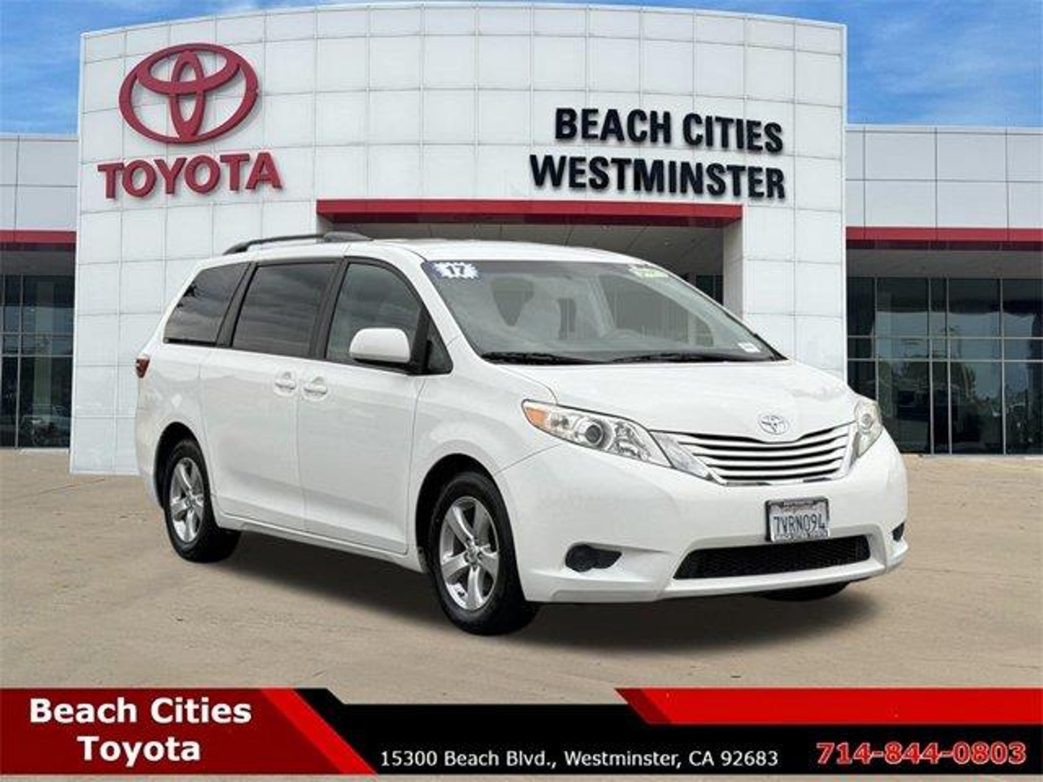 The Beach Cities Toyota family has proudly served Orange County for the past 57 years and is ready to help you find the very best pre-owned Toyota or one of the other pre-owned vehicles in our huge inventory that meet your personal requirements and budget today. The Beach Cities Toyota Team is deeply committed to continuing our service and dedicated to our community. We take pride in our longstanding roots within the community and are honored to have received recognition from Toyota USA for our unwavering commitment to excellence. Now under new ownership, come in and let us show you the new Beach Cities Toyota experience! 17" x 6.5" 5-Spoke Alloy Wheels, 3rd row seats: split-bench, 4-Wheel Disc Brakes, 6 Speakers, ABS brakes, Air Conditioning, Alloy wheels, AM/FM radio: SiriusXM, Auto-dimming Rear-View mirror, Automatic temperature control, Axle Ratio: 3.94, Brake assist, Bumpers: body-color, CD player, Compass, Delay-off headlights, Door auto-latch, Driver door bin, Driver vanity mirror, Driver's Seat Mounted Armrest, Dual front impact airbags, Dual front side impact airbags, Electronic Stability Control, Exterior Parking Camera Rear, Fabric Seat Material, Front anti-roll bar, Front Bucket Seats, Front dual zone A/C, Front reading lights, Front wheel independent suspension, Fully automatic headlights, Garage door transmitter: HomeLink, Heated door mirrors, Illuminated entry, Knee airbag, Low tire pressure warning, Occupant sensing airbag, Outside temperature display, Overhead airbag, Overhead console, Panic alarm, Passenger door bin, Passenger seat mounted armrest, Passenger vanity mirror, Power door mirrors, Power driver seat, Power steering, Power windows, Radio data system, Radio: AM/FM/HD/CD w/6 Speakers, Rear air conditioning, Rear anti-roll bar, Rear reading lights, Rear seat center armrest, Rear window defroster, Rear window wiper, Reclining 3rd row seat, Remote keyless entry, Roof rack: rails only, Speed control, Speed-sensing steering, Split folding rear seat, Spoiler, Steering wheel mounted audio controls, Tachometer, Telescoping steering wheel, Tilt steering wheel, Traction control, Trip computer, and Variably intermittent wipers.