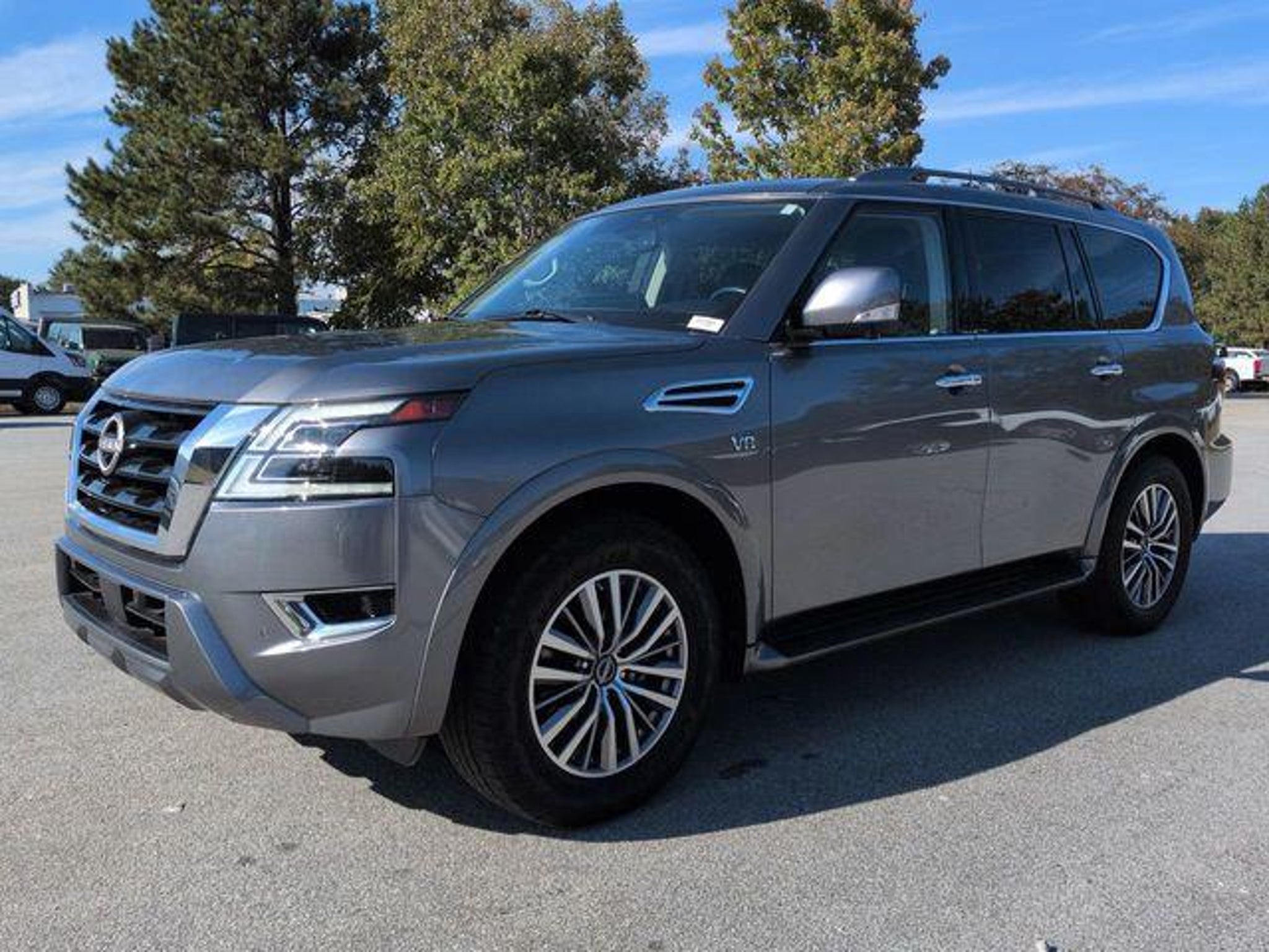 Odometer is 13294 miles below market average! Priced below KBB Fair Purchase Price! Courtesy Ford Conyers 1636 Dogwood Drive, Conyers, GA 30013 770-922-2700 This 2022 Nissan Armada SL in Gun Metallic features: 4D Sport Utility, 5.6L V8 DOHC 32V LEV3-ULEV125 400hp, 7-Speed Automatic, RWD, 12 LCD Productivity Touchscreen, 13 Speakers, 3rd Row Carpeted Floor Mats - Bench Seat, 3rd Row Seating, 3rd row seats: split-bench, 4-Wheel Disc Brakes, ABS brakes, AM/FM radio: SiriusXM, Android Auto, Audio Package, Auto Emergency Braking, Auto High-beam Headlights, Auto LED Headlights, Auto tilt-away steering wheel, Auto-dimming door mirrors, Auto-dimming Rear-View mirror, Auto-leveling suspension, Automatic temperature control, Backup Camera, Blind Spot Monitoring, Bluetooth w/ Audio Streaming, Bose High End Sound Package, Brake assist, Delay-off headlights, Driver Attention Warning, Electronic Stability Control, Emergency communication system: NissanConnect Services, Exterior Parking Camera Rear, Four wheel independent suspension, Foward Collison Alert, Front & Rear Park Assist, Front Bucket Seats, Front Center Armrest, Front dual zone A/C, Front fog lights, Front Pedestrian Braking, Fully automatic headlights, Garage door transmitter: HomeLink, Heated Front Bucket Seats, Illuminated entry, Lane Departure Warning, Lane Keeping System, Leather Seats, Leather Shift Knob, Leather-Appointed Seat Trim, LED Foglights, Low tire pressure warning, Memory Package, Memory seat, Multi Zone Climate Control, Navigation System, NissanConnect featuring Apple CarPlay and Android Auto, Outside temperature display, Overhead console, Panic alarm, Parking Sensors, Power door mirrors, Power Liftgate, Power Mirror Package, Power moonroof, Power Package, Power passenger seat, Premium Sound Package, Radio: NissanConnect w/SiriusXM, Rear air conditioning, Rear Climate Package, Rear Cross Traffic Alert, Rear seat center armrest, Rear window wiper, Reclining 3rd row seat, Remote keyless entry, Remote Start, Reverse Brake Assist, Reverse Sensing, Safety Package, Security system, SL Package, Speed control, Speed-sensing steering, Speed-Sensitive Wipers, Split folding rear seat, Spoiler, Steering wheel memory, Steering wheel mounted audio controls, Sunroof/Moonroof, Telescoping steering wheel, Tilt steering wheel, Tow Package, Traction control, Trailer Package, Trip computer, Variably intermittent wipers, Wheels: 20 x 8J Painted Alloy, WiFi Hotspot Capable, Wireless Charging Pad. **NOT ALL PRE-OWNED CARS & TRUCKS COME WITH 2 KEYS**