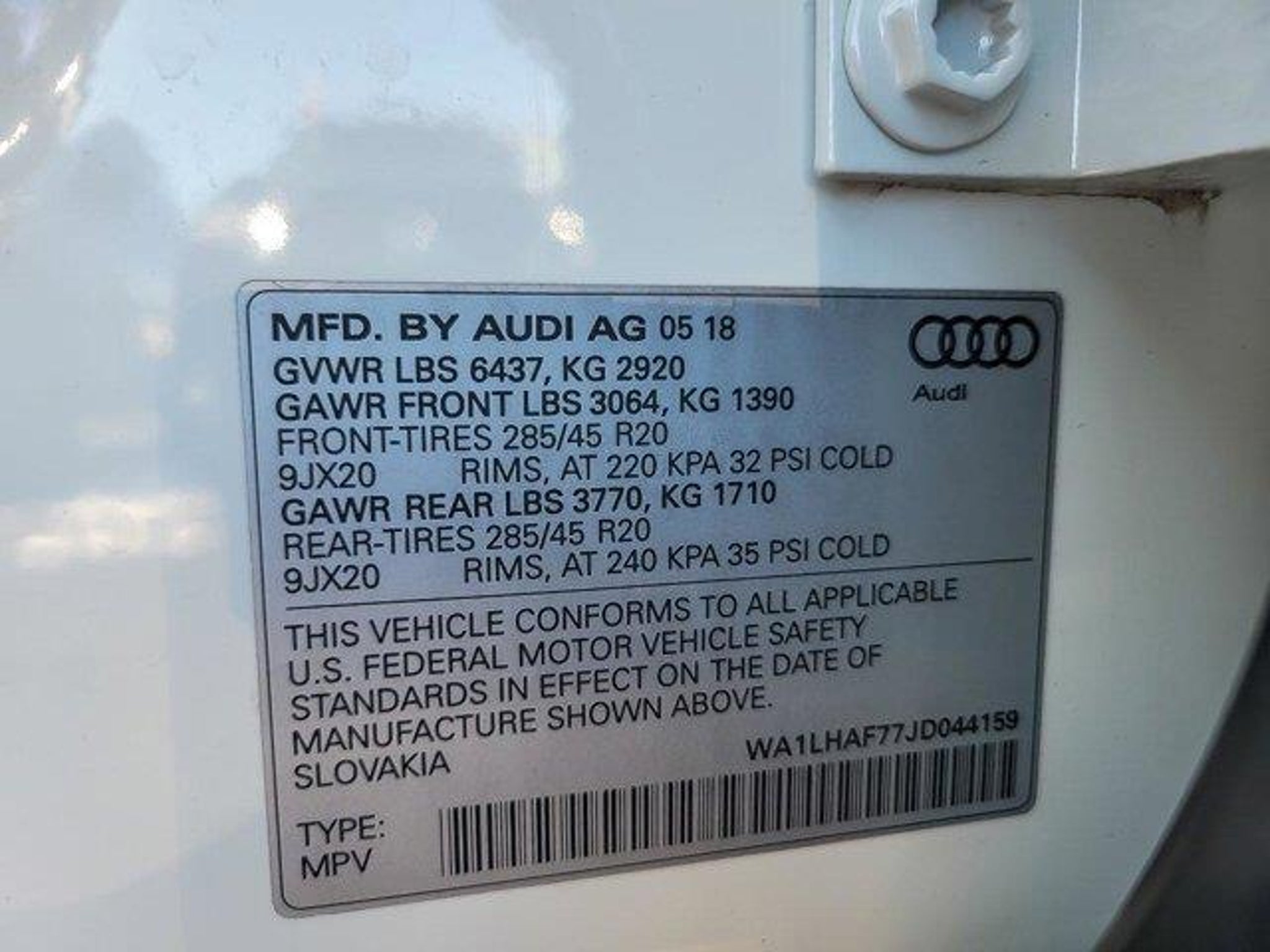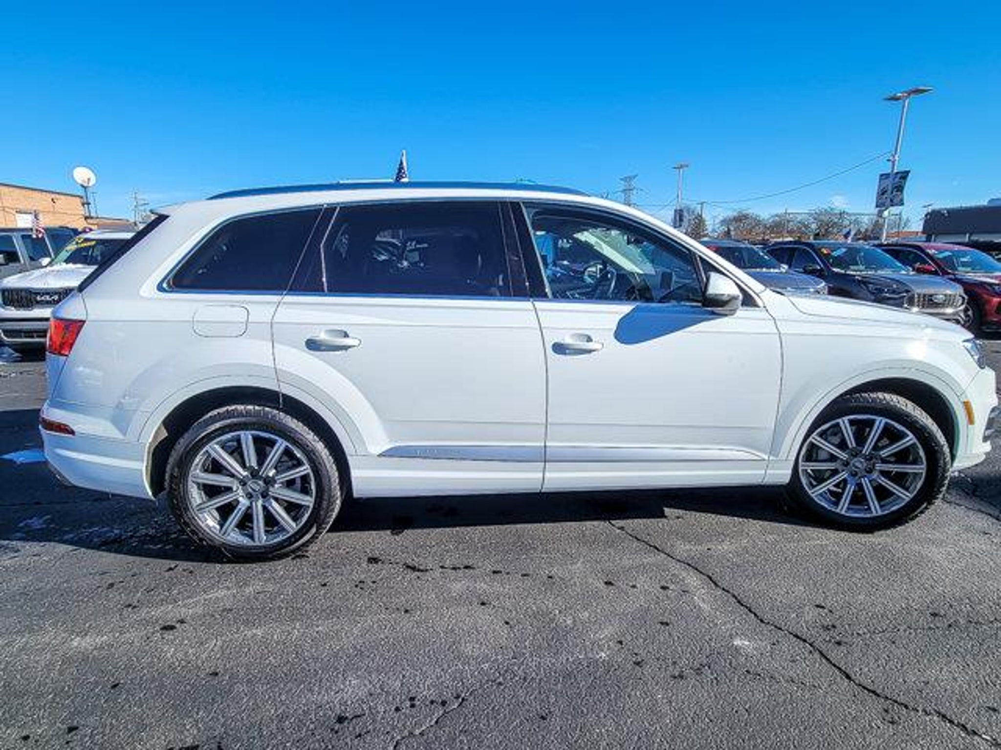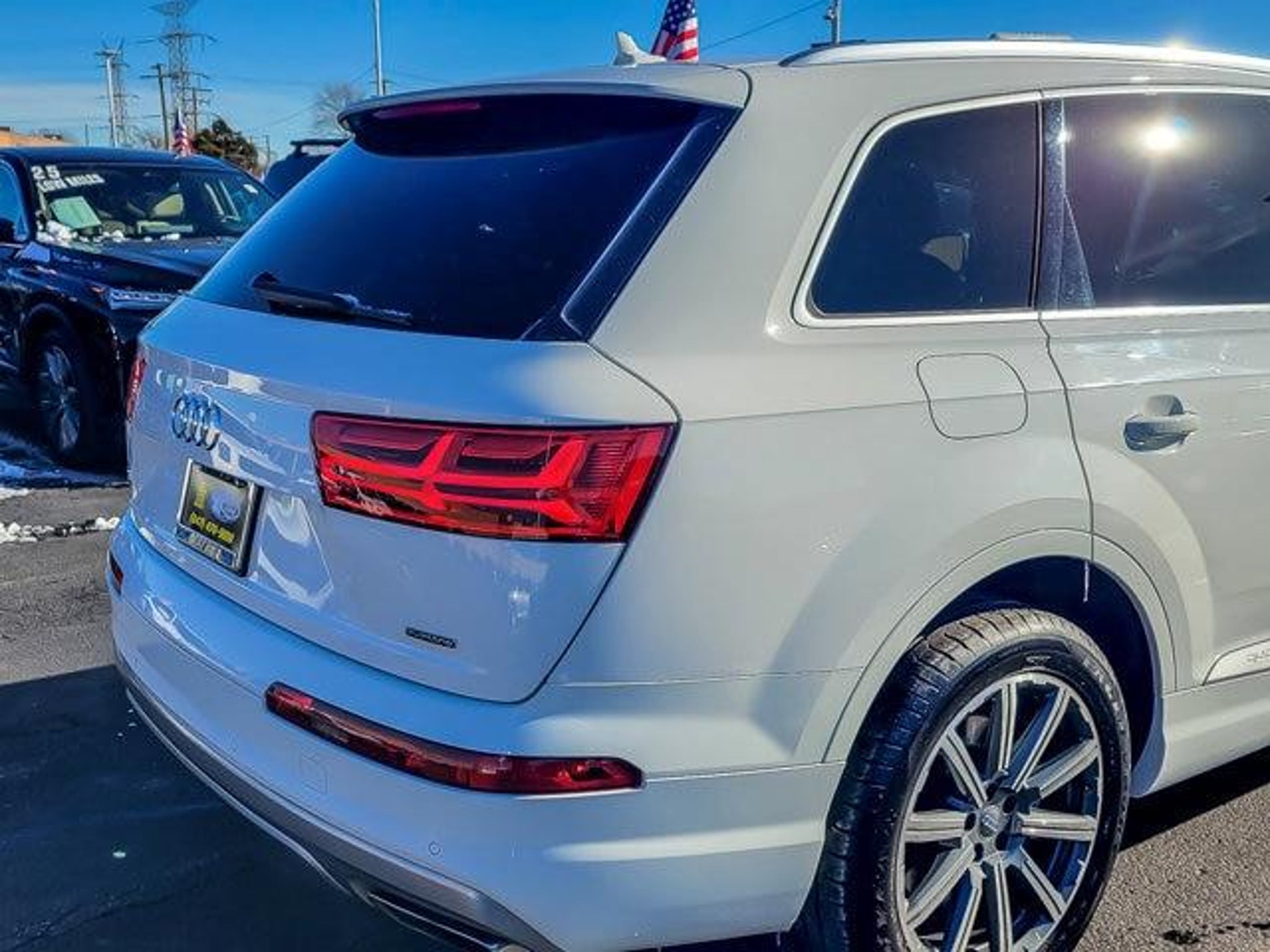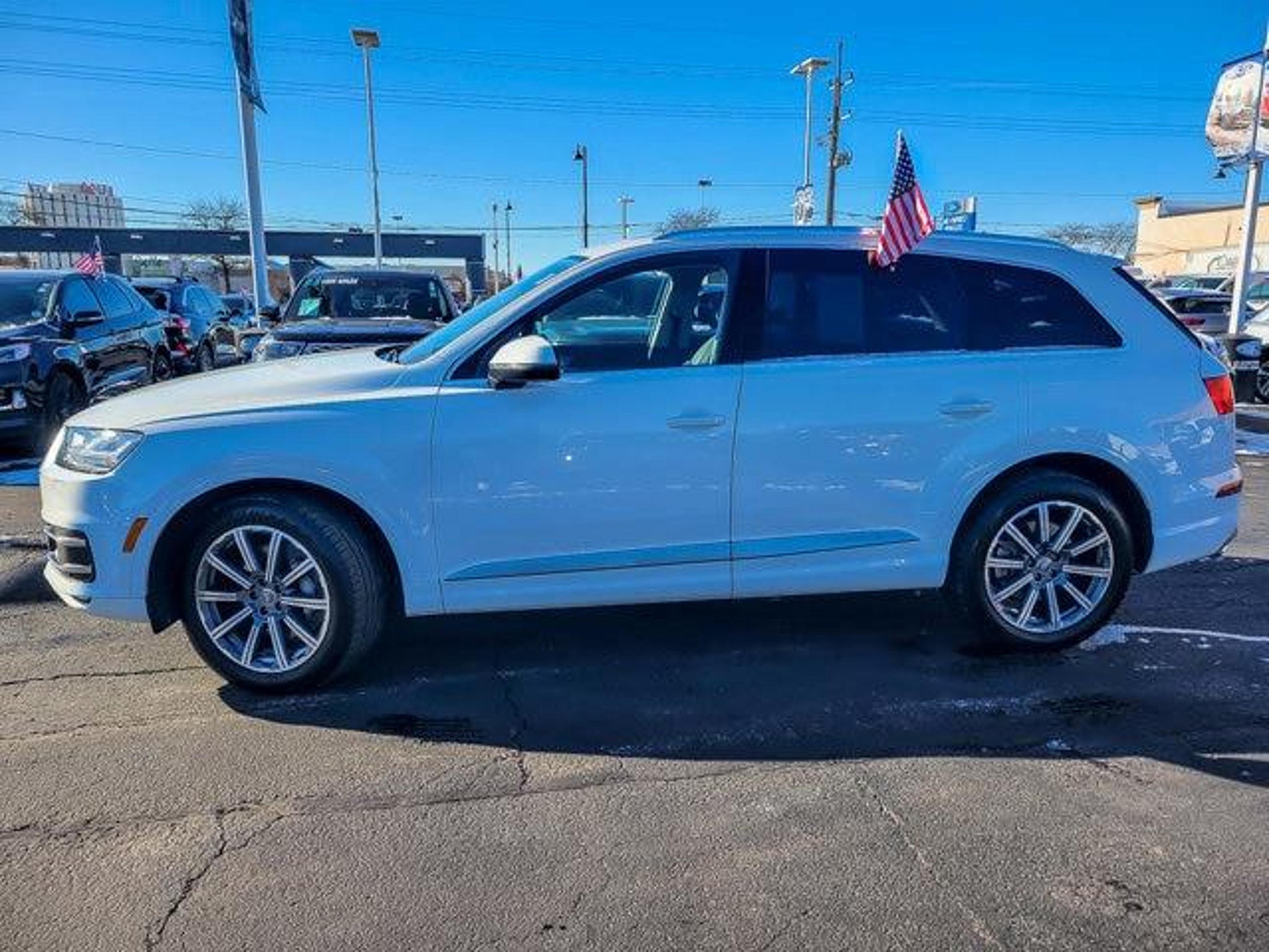 2018 Audi Q7 2.0T Premium Plus quattro Carrara White quattro 4D Sport Utility 2.0L I4 TFSI DOHC 8-Speed Automatic with Tiptronic Clean CARFAX. Recent Arrival! 19/25 City/Highway MPG **With some available options like Audi MMI Navigation Plus Package (Audi Connect CARE, Audi Connect PRIME & PLUS, Audi MMI Navigation Plus w/MMI Touch, and Audi Smartphone Interface), LED Interior Lighting Package, Premium Plus Package (3D Bose Surround Sound System, Audi Side Assist w/Pre Sense Rear, Electric Tilt/Telescopic Steering Column w/Memory, and Heated Auto-Dimming Power Folding Exterior Mirrors), Ford Blue Advantage: Blue Certified Certified, 10 Speakers, 3.504 Axle Ratio, 3rd row seats: bench, 4-Wheel Disc Brakes, ABS brakes, Air Conditioning, Alloy wheels, AM/FM radio: SiriusXM, Auto-dimming Rear-View mirror, Automatic temperature control, Brake assist, Bumpers: body-color, CD player, Compass, Delay-off headlights, Driver door bin, Driver vanity mirror, Driver's Seat Mounted Armrest, Dual front impact airbags, Dual front side impact airbags, Electronic Stability Control, Exterior Parking Camera Rear, Four wheel independent suspension, Front anti-roll bar, Front Bucket Seats, Front dual zone A/C, Front fog lights, Front reading lights, Fully automatic headlights, Garage door transmitter: HomeLink, Genuine wood dashboard insert, Genuine wood door panel insert, Heated door mirrors, Heated Front Bucket Seats, Heated front seats, High intensity discharge headlights: Xenon plus, Illuminated entry, Leather Seating Surfaces, Leather Shift Knob, Leather steering wheel, Low tire pressure warning, Memory seat, Occupant sensing airbag, Outside temperature display, Overhead airbag, Panic alarm, Passenger door bin, Passenger seat mounted armrest, Passenger vanity mirror, Power door mirrors, Power driver seat, Power Liftgate, Power moonroof, Power passenger seat, Power steering, Power windows, Radio data system, Radio: MMI Radio Plus w/Audi Sound System, Rain sensing wipers, Rear air conditioning, Rear anti-roll bar, Rear fog lights, Rear reading lights, Rear seat center armrest, Rear window defroster, Rear window wiper, Remote keyless entry, Roof rack: rails only, Security system, Speed control, Speed-sensing steering, Split folding rear seat, Spoiler, Steering wheel mounted audio controls, Tachometer, Telescoping steering wheel, Tilt steering wheel, Traction control, Trip computer, Turn signal indicator mirrors, Variably intermittent wipers, and Wheels: 18 5-Arm-Design ** 3D Bose Surround Sound System, Audi Connect CARE, Au
