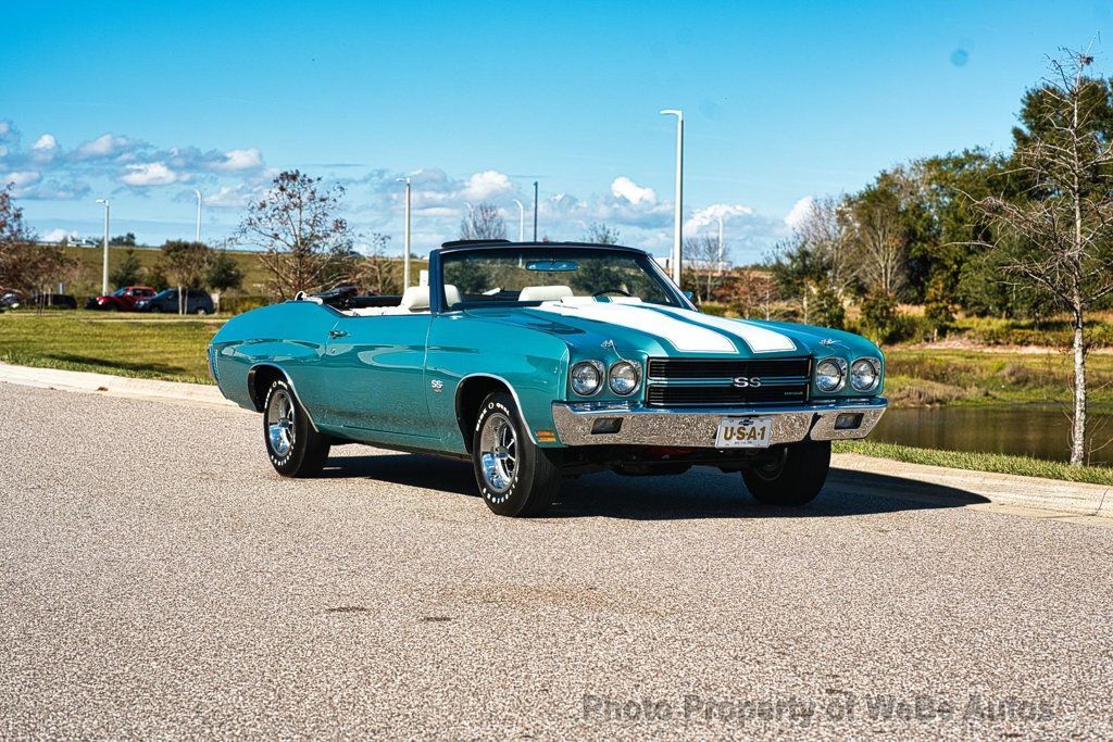 This 1970 Chevrolet Chevelle SS LS6 Convertible is an exceptionally restored example of one of the most iconic muscle cars ever produced. Finished in striking Misty Turquoise with white SS stripes, a white power convertible top, and an ivory/white bucket seat interior, this Chevelle delivers jaw-dropping presentation and unmistakable presence. The car has undergone a very high-end restoration with extensive attention to detail. Importantly, it retains all original sheet metal and original floor pans, a significant factor for collectors and restorers alike. Countless hours were invested to achieve a level of finish that reflects a show-quality execution. This Chevelle is equipped exactly as an LS6 should be and is believed to have been born as an LS6 car. However, there is no build sheet available to further authenticate its original configuration. During the restoration process, the LS6 512 casting engine block received a restoration restamp. These details are disclosed transparently for informed collectors and enthusiasts. Power is delivered through a 4-speed manual transmission, providing the raw, engaging driving experience that made the LS6 Chevelle legendary. The car features a functional cowl induction hood, factory smog equipment, tachometer and gauge package, bucket seats with center console, and the desirable F41 suspension package. Rolling on correct 14-inch SS wheels wrapped in Firestone Wide Oval tires, the stance and overall appearance remain period-correct and purposeful. The white interior and top contrast beautifully against the Misty Turquoise paint, creating one of the most attractive color combinations available in 1970. This is a no-expense-spared restoration of an incredibly desirable Chevelle Convertible, executed with care, accuracy, and pride. It represents a rare opportunity to acquire a stunning LS6-spec Chevelle that delivers visual impact, mechanical presence, and top-tier craftsmanship ready for show, collection, or careful enjoyment. While we do our best to provide the highest quality muscle cars with an honest and reliable description and realize the importance of transparency when selling vehicles. That being said, we have not built, modified, changed or personally owned this vehicle. Whether this vehicle is consigned or owned by Past & Present Motor Cars we do not know the vehicles complete history since new. We want to be clear and try to answer any questions our customers might have prior to purchasing. Additionally, we not only welcome but we encourage 3rd party independent inspections. Please inquire prior to purchase to make sure the advertised vehicle has not already been sold. We list our vehicles on multiple websites and a vehicle can sell at any time. If a customer chooses to purchase sight unseen (many of our customers choose this option) the customer accepts the vehicle AS IS and WHERE IS and understands we cannot address concerns after purchase. For this reason, it's important all concerns are addressed prior to purchase. We make every effort to present accurate and reliable information, but use of this information is voluntary, and should only be deemed reliable after an independent review of its accuracy, completeness, and timeliness. It is the sole responsibility of the customer to verify the existence of options, accessories and the vehicle condition before time of sale. Financing is Available with low rates and Vehicle Shipping is available from our Showroom to your Garage. A Classic Car Warranty is Available for Purchase from a 3rd Party. Please speak to our Sales Associate or Company Representative for more information. Our team is working and available anytime by Phone or Text for your convenience at 407-559-7759. Thank you for your interest! WeBe Autos Specializes in Marketing and Advertising Muscle, Classic, Vintage and Specialty Cars. We offer Professional Photography, HD Movies, and Staging that Sells Cars. Let us showcase and sell your specialty car. Please visit our website for more details. Keep in Touch, Michael Runnalls Specialty Car Marketing & Media WeBe Autos Ltd. Long Island, NY 11780 Michael@WeBeAutos.com www.WeBeAutos.com (O)631-339-0399 (C)516-729-2003 Skype: webeautos (F)631-389-2605 - - - Contact Michael Runnalls at 631-339-0399 or Michael@WeBeAutos.com for more information. -