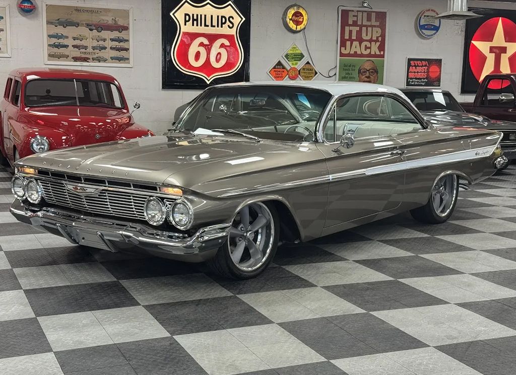 Coming Soon! 1961 Chevrolet Impala Bubble Top, Fawn metallic paint, White leather interior, 350 ci crate engine, 700R4 automatic overdrive, power steering, power disc brakes. Custom leather bench seat interior, factory dash & gauges, 14” replica steering wheel, Retro radio with kick panel speakers, factory rear axle, Hotchkis suspension, 18 & 20” Billet Specialties Mag G wheels, Outstanding Restoration!