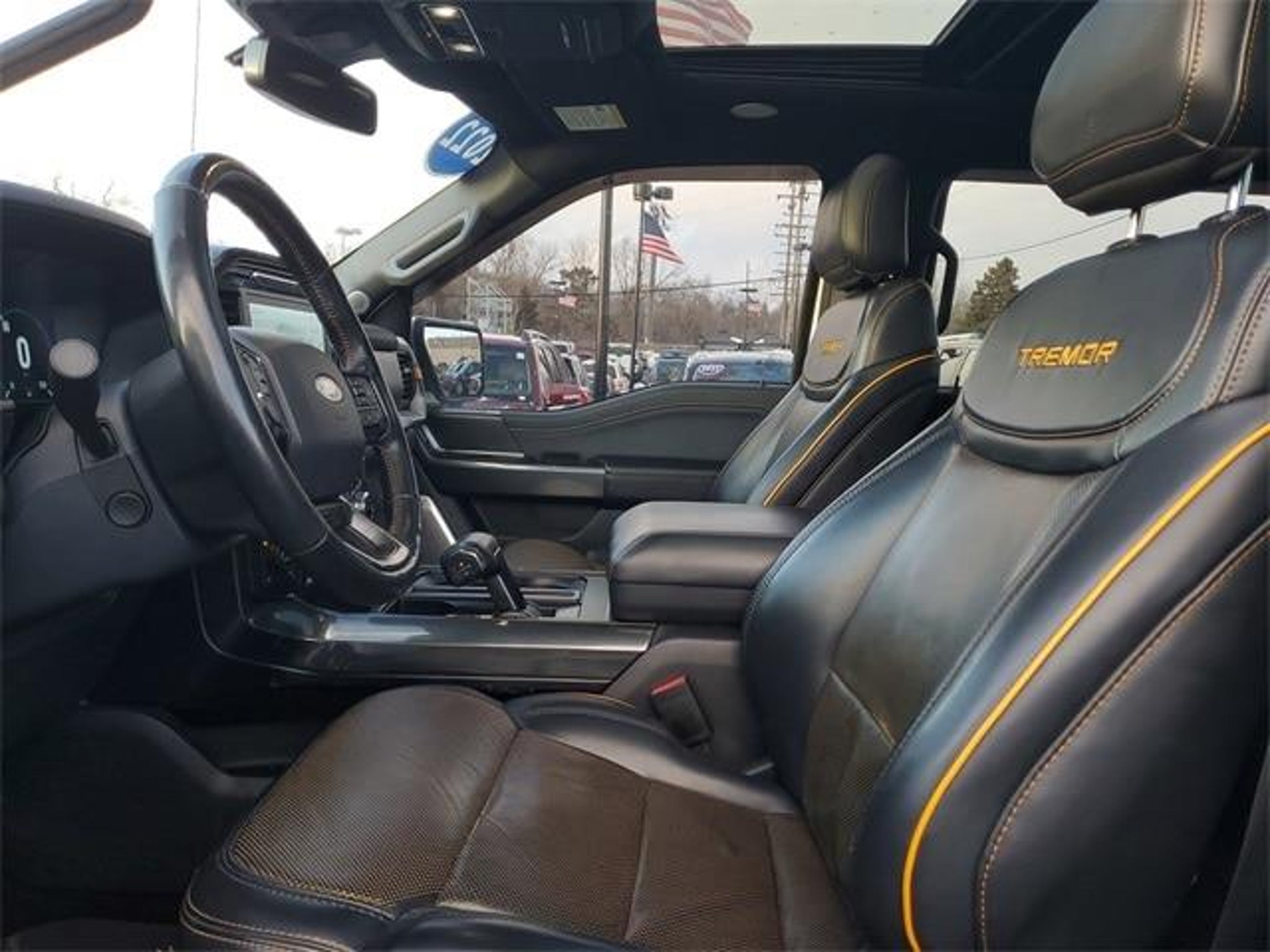 Certified. Ford Gold Certified Details: * Vehicle History * 172 Point Inspection * Warranty Deductible: $100 * Roadside Assistance * and 22000 FordPass Rewards Points to use toward first two maintenance visits * Limited Warranty: 12 Month/12000 Mile (whichever comes first) after new car warranty expires or from certified purchase date * Transferable Warranty * Powertrain Limited Warranty: 84 Month/100000 Mile (whichever comes first) from original in-service date Ford Gold Certified Certified 4WD 12 Productivity Screen in Instrument Cluster 2nd Row Heated Seats 360 Degree Camera 4-Wheel Disc Brakes 6 Speakers ABS brakes Active Park Assist 2.0 Advanced Security Pack Air Conditioning Alloy wheels AM/FM radio: SiriusXM with 360L Ambient Lighting Auto High Beam Auto High-beam Headlights Auto Start-Stop Removal Bed Utility Package BlueCruise Body-Color Door Handles w/Body-Color Bezel BoxLink Brake assist Bumpers: body-color Carpeted Floor Mats w/Tremor Logo Class IV Trailer Hitch Receiver Compass Connected Built-In Navigation (DISC) Delay-off headlights Driver door bin Dual front impact airbags Dual front side impact airbags Dual Zone Electronic Automatic Temperature Control Electronic Locking w/3.73 Axle Ratio Electronic Stability Control Emergency communication system: SYNC 4 911 Assist Equipment Group 402A High Evasive Steering Assist Extended Range 36 Gallon Fuel Tank Exterior Parking Camera Rear Ford Co-Pilot360 Active 2.0 Ford Co-Pilot360 Assist 2.0 (DISC) Front anti-roll bar Front Bucket Seats Front Center Armrest Front fog lights Front reading lights Front wheel independent suspension Front-Axle w/Torsen Differential Fully automatic headlights GVWR: 7050 lbs Payload Package Heated door mirrors Heated Steering Wheel Illuminated entry Integrated Trailer Brake Controller Intelligent Access w/Push Button Start Intelligent Adaptive Cruise Control w/Stop & Go Intersection Assist Lane-Keeping System Leather-Wrapped Steering Wheel LED Box Lighting LED Projector w/Dynamic Bending Headlamps LED Sideview Mirror Spotlights Low tire pressure warning Navigation system: Connected Navigation Occupant sensing airbag Onboard 400W Outlet Outside temperature display Overhead airbag Overhead console Panic alarm Partitioned Lockable Fold-Flat Storage Passenger door bin Passenger vanity mirror Power door mirrors Power Glass Sideview Mirr w/Body-Color Skull Caps Power steering Power Tailgate Power Tilt/Telescoping Steering Column w/Memory Power windows Power-Adjustable Pedals Power-Sliding Rear Window Pre-Collision Assist w/Automatic Emergency Braking Pro Trailer Backup Assist Radio data system Radio: AM/FM SiriusXM w/360L Radio: B&O Sound System by Bang & Olufsen Radio: B&O Unleashed Sound System by Bang & Olufsen Rain-Sensing Wipers Rear reading lights Rear step bumper Rear Under-Seat Storage Rear window defroster Rear-View Camera Remote keyless entry Remote Start System w/Remote Tailgate Release Reverse Sensing System SecuriCode Drivers Side Keyless-Entry Keypad Security system Speed control Speed Sign Recognition Speed-sensing steering Split folding rear seat Steering wheel mounted audio controls SYNC 4 w/Enhanced Voice Recognition Tachometer Tailgate Step w/Tailgate Work Surface Telescoping steering wheel Tilt steering wheel Tow Technology Package Traction control Trail Control Trailer Tow Package Tray Style Floor Liner Trip computer Twin Panel Moonroof Unique Sport Cloth 40/Console/40 Front Seat Unique Tremor Leather-Trimmed Bucket Seats Universal Garage Door Opener Variably intermittent wipers Voltmeter Wheels: 18 Alloy w/Dark Matte Finish Wireless Charging Pad Zone Lighting 4WD.