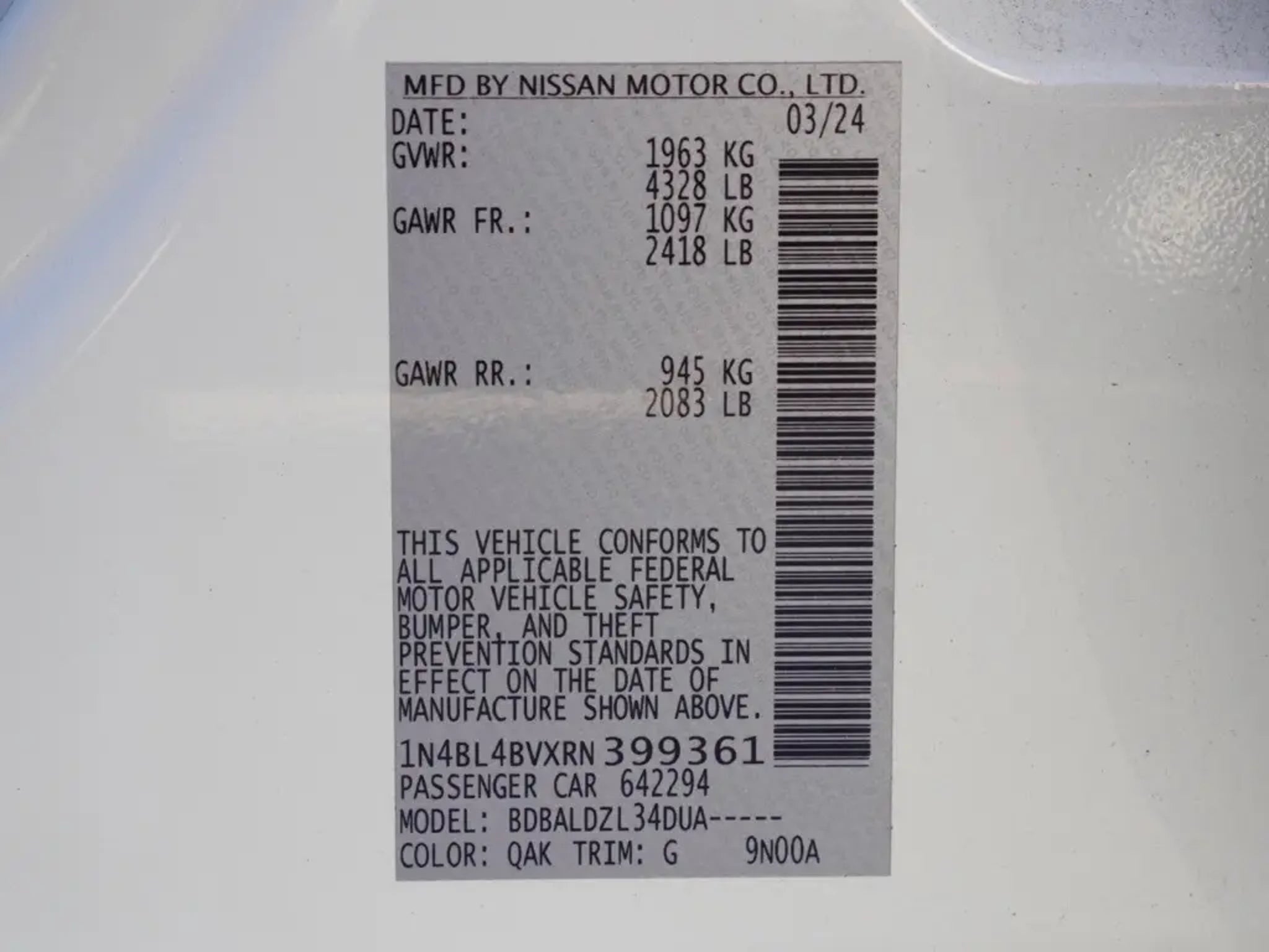Priced below KBB Fair Purchase Price! Certified. 2024 Glacier White Clean CARFAX. Nissan Altima 4D Sedan 2.5 S Global Positioning Tracking System (S.W.A.T.) Guaranteed Protection & Recovery Program, Finishing Touch Complete (Synthetic Paint Sealant Application & Protection Program), NitroFill Advantage (Nitrogen Filled Tires & Protection Program), Genuine Nissan Wheel Locks (Anti-Theft Vehicle Wheel Protection), ParkView® / Park Assist Rear Back"“Up Camera, Blind"“Spot and Cross"“Path Detection, Bluetooth Car Audio Receiver, SiriusXM® Satelite Radio, Apple Car Play/Android Auto, Automatic Climate Control, Backup Camera, Altima 2.5 S Sedan 4D, 4D Sedan, 2.5L 4-Cylinder DOHC 16V, CVT with Xtronic, FWD, Glacier White, Charcoal w/Cloth Seat Trim, 4-Wheel Disc Brakes, 6 Speakers, ABS brakes, Air Conditioning, AM/FM radio, Auto High-beam Headlights, Blind Spot Warning, Brake assist, Bumpers: body-color, Cloth Seat Trim, Delay-off headlights, Driver door bin, Driver vanity mirror, Dual front impact airbags, Dual front side impact airbags, Electronic Stability Control, Floor Mats/Trunk Mat/Hideaway Net, Four wheel independent suspension, Front anti-roll bar, Front Bucket Seats, Front Center Armrest, Front reading lights, Fully automatic headlights, Illuminated entry, Knee airbag, Low tire pressure warning, Occupant sensing airbag, Outside temperature display, Overhead airbag, Overhead console, Panic alarm, Passenger door bin, Passenger vanity mirror, Power door mirrors, Power steering, Power windows, Radio data system, Radio: AM/FM Audio System, Rear anti-roll bar, Rear Parking Sensors, Rear reading lights, Rear seat center armrest, Rear side impact airbag, Rear window defroster, Remote keyless entry, Security system, Speed control, Speed-sensing steering, Speed-Sensitive Wipers, Split folding rear seat, Steering wheel mounted audio controls, Tachometer, Telescoping steering wheel, Tilt steering wheel, Traction control, Trip computer, Variably intermittent wipers, Wheels: 16 x 7 Steel w/Full Wheel Covers. Certification Program Details: "¢ 7 Year/100,000 Mile Powertrain Limited Warranty (from original in-service date, whichever comes first) "¢ Covers repair or replacement of over 600 major components (Including engine, transmission, and drivetrain) "¢ 1-Year Prepaid Maintenance Plan (Includes up to 2 oil & filter changes and 2 tire rotations on qualifying vehicles financed through Nissan Motor Acceptance Company) "¢ 24/7 Emergency Roadside Assistance (Including towing, flat tire changes, jump-starts, and lockout service) "¢ 167- Point Comprehensive Vehicle Inspection By Nissan-trained technicians "¢ CarFax Vehicle History Report (With 3-Year Buyback Guarantee) "¢ Rental Car Reimbursement For up to 5 days ($35/day max) for covered repairs "¢ 3 Month Trial subscription to SiriusXM "¢ Trip Interruption Coverage (Up to $500 for meals, lodging, and transportation if breakdown occurs more than 100 miles from home) "¢ A deductible applies per covered repair visit. "¢ Eligibility Requirements (Must be less than 6 years old, have under 80,000 miles, and a clean, non-branded title) Searching for an affordable, dependable car for your family? Temecula Nissan has you covered with the lowest prices in California and the biggest selection"”over 300 used, certified pre-owned, nearly new, and low-mileage vehicles ready for you! Our no-haggle, limited-time sale prices make it easy to save big, but hurry"”our inventory is flying off the lot, and when a car is gone, so is the deal. Don't let credit worries hold you back; we approve everyone, whether you have bad credit, bankruptcy, or are a first-time buyer. We believe everyone deserves a quality car! Hablamos Español y negociamos en su idioma"”serving all families in our community. Imagine driving home today with zero to little money down and payments as low as $199 a month on an extensive selection of vehicles. Your dream car fits your budget and exceeds your expectations. D