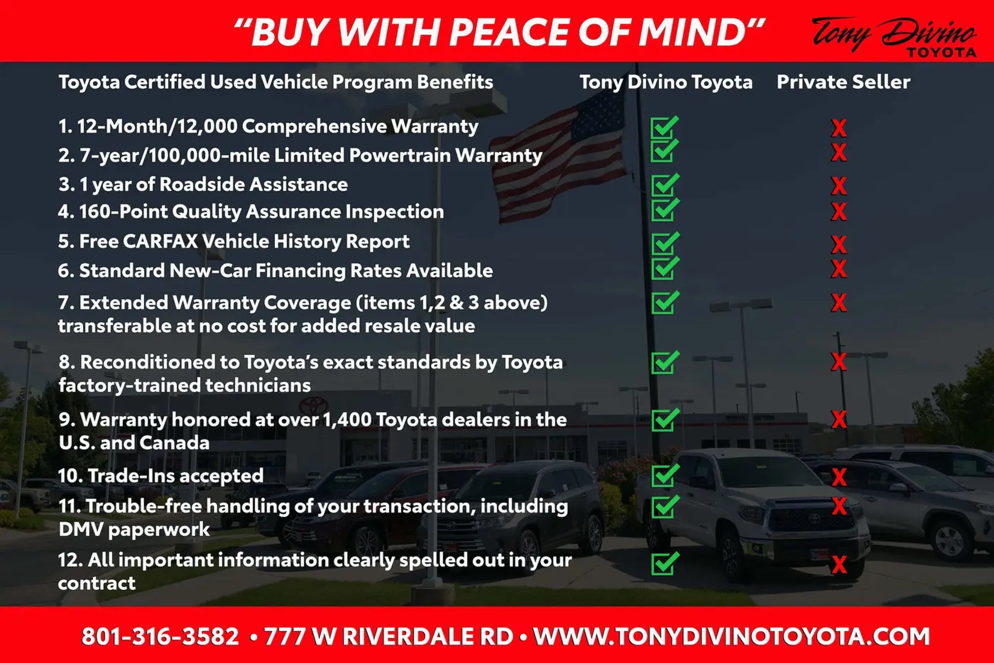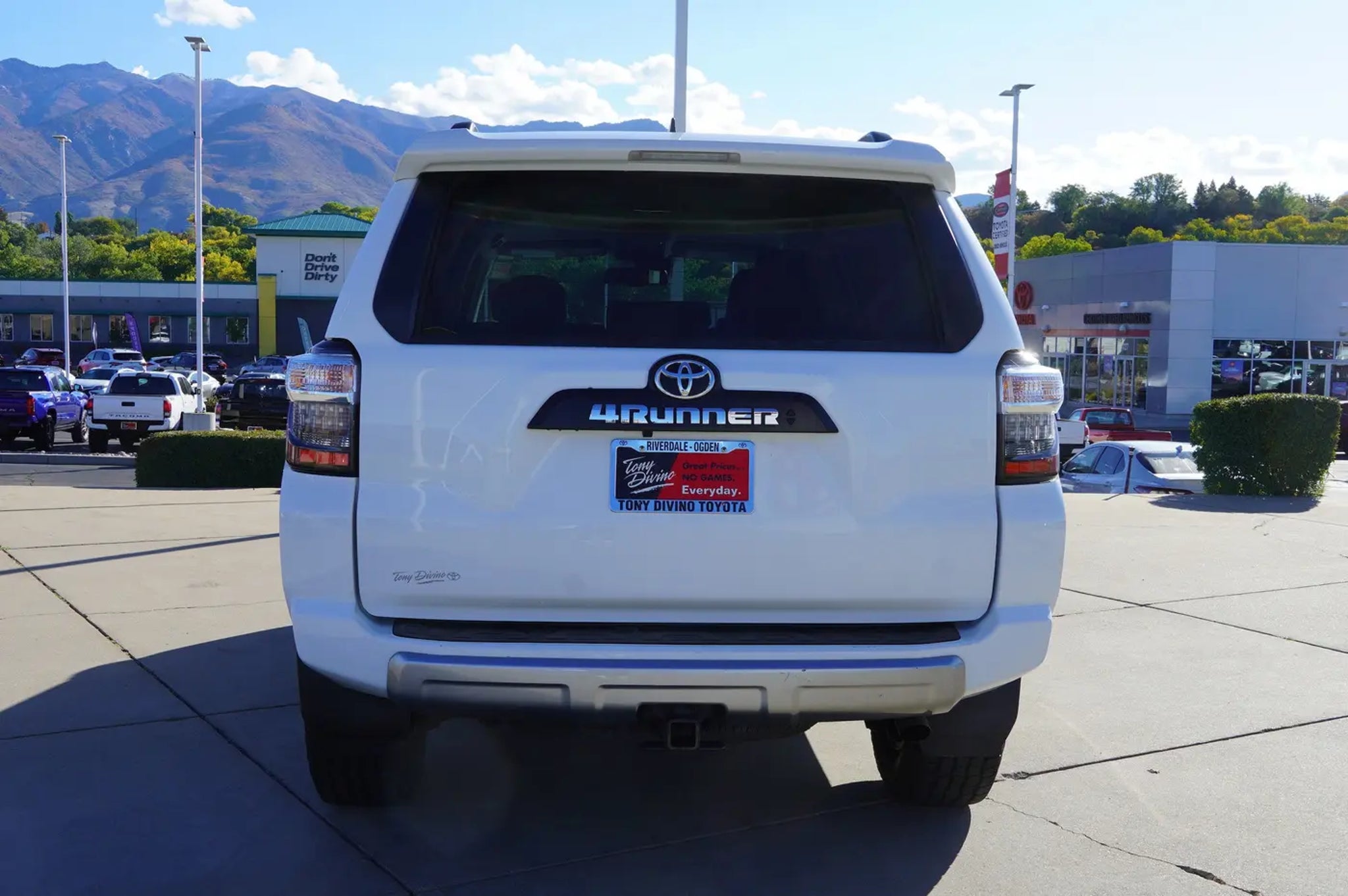 Delivers 19 Highway MPG and 16 City MPG! This Toyota 4Runner boasts a Regular Unleaded V-6 4.0 L/241 engine powering this Automatic transmission. Window Grid Diversity Antenna, Wi-Fi Connect with up to 2GB within 3-month trial Mobile Hotspot Internet Access, Wheels: 17 Unique 7-Spoke Off-Road Alloy -inc: black painted accents. This Toyota 4Runner Comes Equipped with These Options Variable Intermittent Wipers w/Heated Wiper Park, Valet Function, Trip Computer, Transmission: 5-Speed ECT Automatic, Transmission w/Driver Selectable Mode, Sequential Shift Control and Oil Cooler, Trailer Wiring Harness, Toyota Safety Sense P (TSS-P), Tires: P265/70R17 Mud Snow, Tailgate/Rear Door Lock Included w/Power Door Locks, Steel Spare Wheel. Stop By Today Stop by Tony Divino Toyota located at 777 West Riverdale Rd, Riverdale, UT 84405 for a quick visit and a great vehicle! * Estimated Monthly Payment will depend on vehicle make and model and will be determined upon actual vehicle inspection. All payments are estimates. Tax, title, registration and documentation fee ($349) are extra.* While every reasonable effort is made to ensure the accuracy of this information, we are not responsible for any errors or omissions contained on these pages. Please verify any information in question with Tony Divino Toyota.