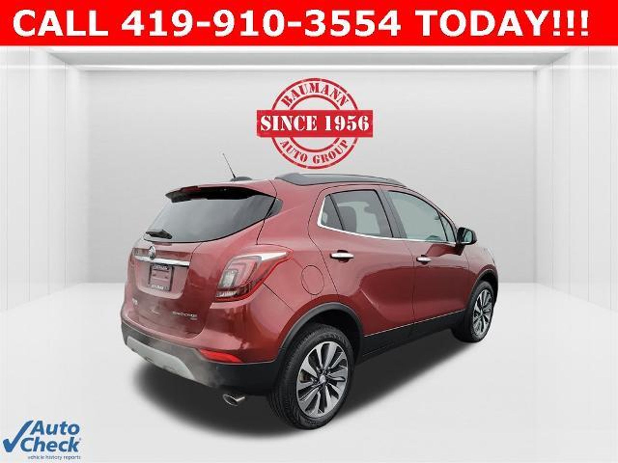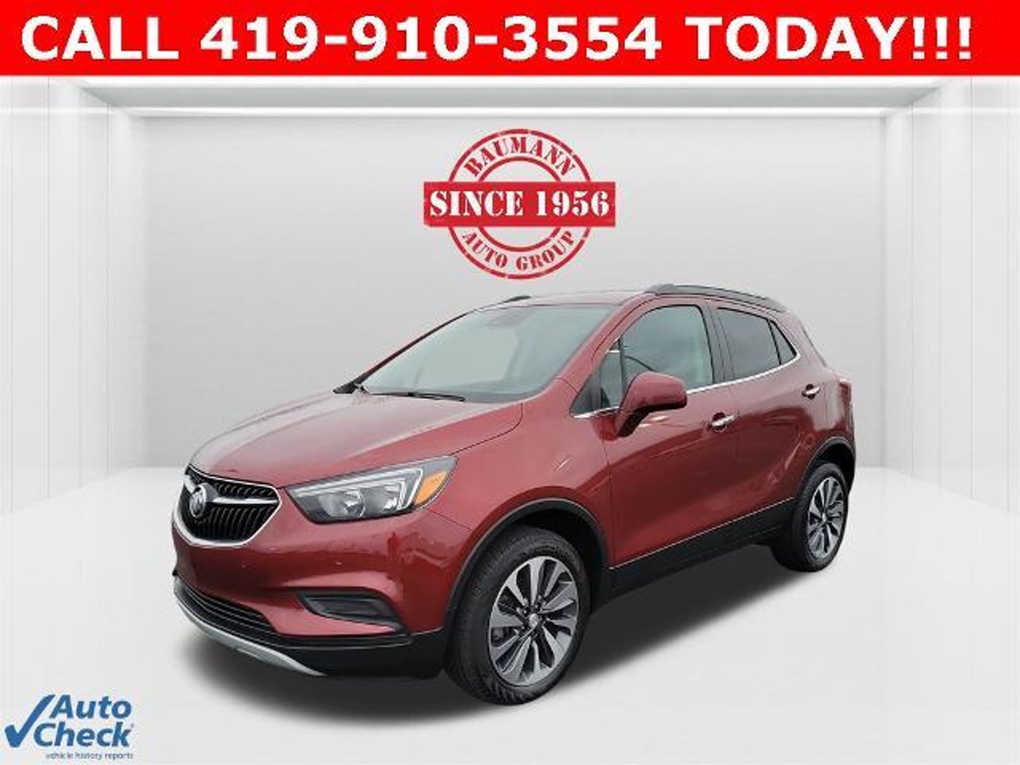 Priced below KBB Fair Purchase Price! Clean CARFAX. Cinnabar Metallic 2022 Buick Encore Preferred 4D Sport Utility 1.4L ECOTEC Turbo VVT DOHC 4-Cyl SIDI 6-Speed Automatic Electronic with Overdrive AWD BAUMANN AUTO GROUP GENOA - 419.855.8366. We Make Car Buying Fun, Fast, and HASSLE FREE. LOCALLY OWNED AND TRADED IN, ONE OWNER, CLEAN CARFAX REPORT, 120-Volt Power Outlet, Buick Interior Protection Package (LPO), Color-Keyed Carpeted Cargo Mat (LPO), Forward Collision Alert, Front & Rear Park Assist, Front Intermittent RainSense Wipers, Lane Departure Warning System, Preferred Equipment Group 1SB, Rear Cross Traffic Alert, Safety Package, Safety Package II, Side Blind Zone Alert, 18 Aluminum Wheels, 2-Way Manual Front Passenger Seat Adjuster, 3.53 Final Drive Axle Ratio, 4-Wheel Disc Brakes, 6 Speakers, 6-Speaker Audio System, 6-Way Power Driver Seat Adjuster, ABS brakes, Air Conditioning, Alloy wheels, AM/FM radio: SiriusXM, Apple CarPlay/Android Auto, Brake assist, Bumpers: body-color, Cloth w/Leatherette Seat Trim, Compass, Delay-off headlights, Driver door bin, Driver vanity mirror, Driver's Seat Mounted Armrest, Dual front impact airbags, Dual front side impact airbags, Electronic Stability Control, Emergency communication system: OnStar and Buick connected services capable, Exterior Parking Camera Rear, Front anti-roll bar, Front Bucket Seats, Front License Plate Bracket, Front reading lights, Front wheel independent suspension, Fully automatic headlights, Heated door mirrors, Illuminated entry, Knee airbag, Leather steering wheel, Low tire pressure warning, Occupant sensing airbag, Outside temperature display, Overhead airbag, Panic alarm, Passenger door bin, Passenger vanity mirror, Power door mirrors, Power driver seat, Power steering, Power windows, Radio data system, Radio: 7 Diagonal Buick Infotainment System, Rear seat center armrest, Rear side impact airbag, Rear window defroster, Rear window wiper, Remote keyless entry, Remote Vehicle Starter System, Ride & Handling Suspension, Roof rack: rails only, Security system, SiriusXM Radio, Speed control, Speed-sensing steering, Split folding rear seat, Spoiler, Steering wheel mounted audio controls, Tachometer, Telescoping steering wheel, Tilt steering wheel, Traction control, Trip computer, Variably intermittent wipers, 120-Volt Power Outlet, Buick Interior Protection Package (LPO), Color-Keyed Carpeted Cargo Mat (LPO), Forward Collision Alert, Front & Rear Park Assist, Front Intermittent RainSense Wipers, Lane Departure Warning System, Preferre