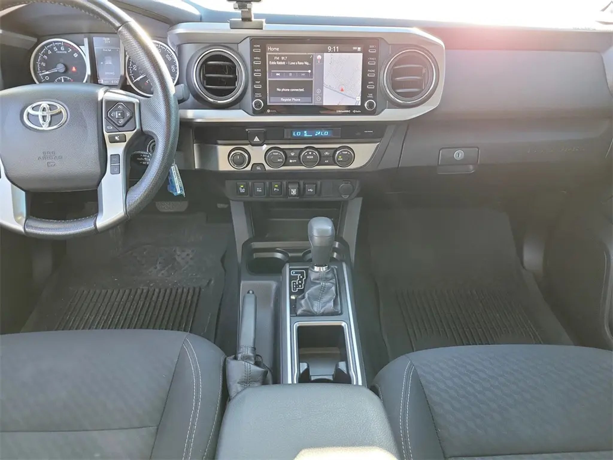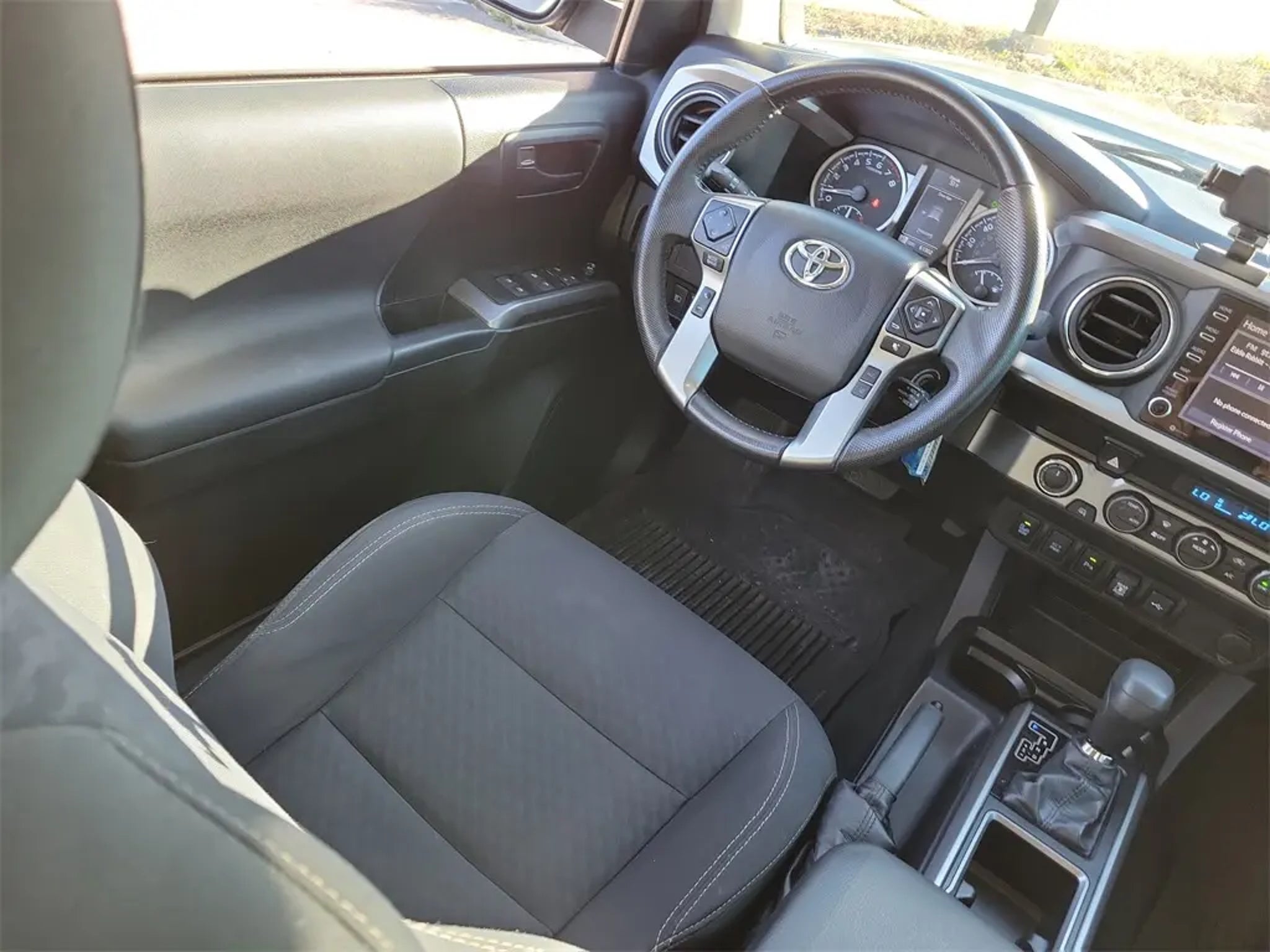 It's a 2021 Toyota Tacoma SR5 in Lunar Rock color. This V6 4WD pickup has only been lightly used - the odometer shows 3,207 miles less than average for this model year! Some highlights of this Tacoma include: - Powerful 3.5L V6 engine - 6-speed transmission - Active Cruise Control for easier highway driving - Dual-zone A/C to keep you comfortable - Alloy wheels for a stylish look It also comes with safety features like ABS brakes, electronic stability control, and traction control.