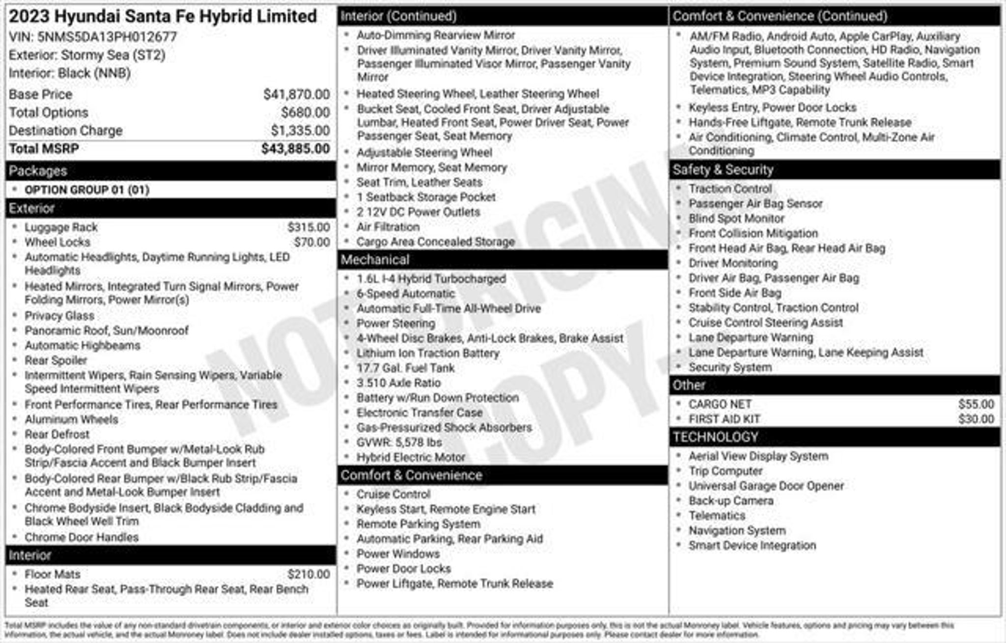 CARFAX One-Owner. 2023 Hyundai Santa Fe Hybrid Limited Please Call For More Details And Availability. Discover The One & Only Way To Buy Your Next Vehicle! Welcome To Gregory Hyundai, Where Convenience Meets Transparency. Skip The Traditional Dealership Hassel With The Time It Takes To Buy A Car And The Annoying Back & Fourth Negotiations! Our Innovative Process, One & Only, Revolutionizes Car Buying For Both First Time And Expert Car Buyers. Embrace Our Online Platform If You Prefer To Shop At Home; With Express Service at express.gregoryhyundai.com, Buy Your Dream Vehicle From The Comfort Of Home. With Express, You're In Charge. Select Your Terms, Apply for Financing, Get a Trade-In Value, Customize Your Ownership Options Or Simply Figure Out The Costs Involved With Your Purchase. Transparency Is Our Goal And We Prioritize Integrity, We Want To Be Your Guide Through This Process And We Promise To Act With Honesty And Professionalism. We Invite You To Experience The Difference At Our State-Of-The-Art Dealership In Highland Park, Illinois. 490 Skokie Valley Road Highland Park, IL 60035. We're Committed To Serving Our Community And Building Lasting Relationships With Our Customers All Over The Country. We're Here For You With Flexible Hours From 9 AM To 8 PM (Mon-Fri) And 9 AM To 6 PM (Sat). Don't Miss Out On the Future Of Car Buying. Visit GregoryHyundai.com Or Call Us Today . Gregory Hyundai/Genesis of Highland Park"“ Where Convenience, Transparency, and Exceptional Service Meet. We Look Forward To Serving You SooN.