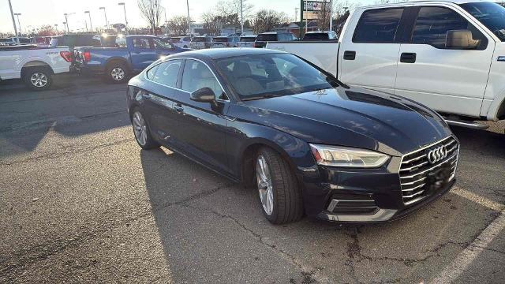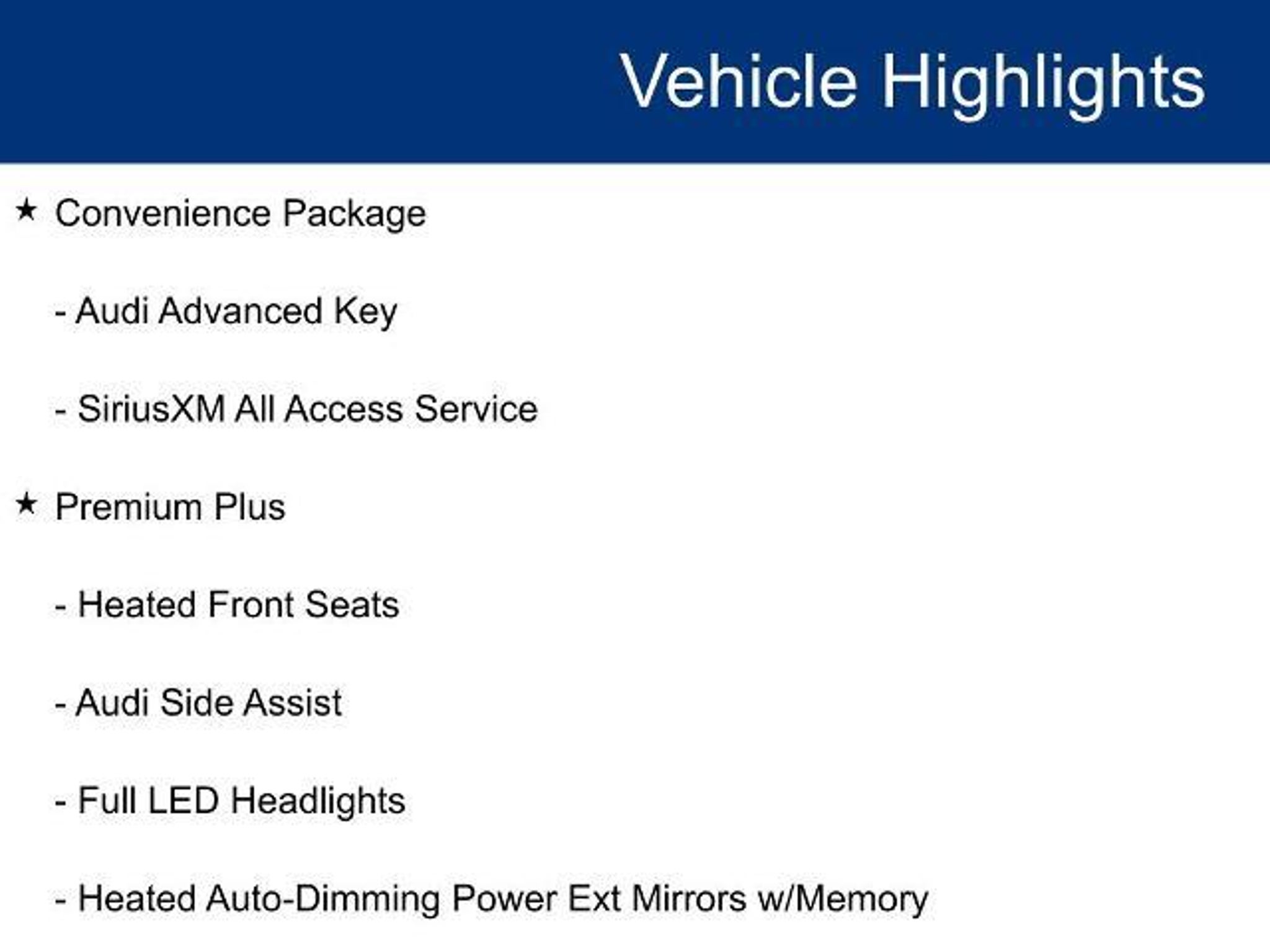 POWER MOONROOF / SUNROOF / POWER TILT SLIDING ROOF, VOICE ACTIVATED NAVIGATION, NAVIGATION / GPS / NAV, BLIS / BLIND SPOT MONITORING / BLIND SIDE ALERT, LANE DEPARTURE WARNING, LANE DEPARTURE ALERT / LANE KEEPING ALERT, REARVIEW CAMERA / BACK UP CAMERA / REVERSE CAMERA, REAR VIEW CAMERA WDYNAMIC GUIDELINES, ANDROID AUTO & APPLE CARPLAY, HANDS FREE LIFTGATE / POWER LIFT GATE / AUTOMATIC LIFT GATE, LEATHER SEATS, HEATED FRONT ROW SEATS, POWER WINDOWS & LOCKS, ALL WHEEL DRIVE / AWD / AUDI QUATTRO, STEERING WHEEL AUDIO CONTROLS, CRUISE CONTROL, REAR CROSS TRAFFIC ALERT, PUSH-BUTTON START, PREMIUM AUDIO W/INTEGRATED NAV & APP STE, BLUETOOTH AUDIO STREAMING, BACK UP SENSORS, quattro, Rock Gray w/Leather Seating Surfaces, 10 Speakers, 12.3 LCD Display Audi Virtual Cockpit, 4-Wheel Disc Brakes, ABS brakes, Air Conditioning, Alarm System w/Motion Sensors, Alloy wheels, AM/FM radio, Audi Advanced Key, Audi MMI Navigation Plus w/MMI Touch, Audi Side Assist, Audi smartphone interface (Apple CarPlay/Android Auto), Automatic temperature control, Brake assist, Bumpers: body-color, Cold Weather Package, Compass, Convenience Package, Driver Seat Memory, Electronic Stability Control, Exterior Parking Camera Rear, Four wheel independent suspension, Front Bucket Seats, Front Center Armrest, Front dual zone A/C, Front fog lights, Front reading lights, Full LED Headlights, Heated 3-Spoke Steering Wheel w/Shift Paddles, Heated Auto-Dimming Power Ext Mirrors w/Memory, Heated Auto-Dimming Power/Memory Exterior Mirrors, Heated door mirrors, Heated Front Seats, Heated Rear Seats, High intensity discharge headlights: Bi-xenon, Illuminated entry, Leather Seating Surfaces, Navigation Package, Navigation System, Panic alarm, Parking System Plus (Front/Rear Acoustic Sensors), Passenger door bin, Power driver seat, Power Liftgate, Power moonroof, Power passenger seat, Power steering, Power windows, Premium Plus, Radio data system, Radio: Audi Sound System, Rain sensing wipers, Rear air conditioning, Rear Audi Pre Sense, Rear reading lights, Rear window defroster, Remote keyless entry, SiriusXM All Access Service, Speed control, Speed-sensing steering, Speed-Sensitive Wipers, Split folding rear seat, Steering wheel mounted audio controls, Traction control, Variably intermittent wipers, Wheels: 18 x 8.5 10-Spoke-Dynamic-Design. 2018 Audi A5 2.0T Premium Plus quattro quattro Moonlight Blue Metallic 2.0L 4-Cylinder TFSI