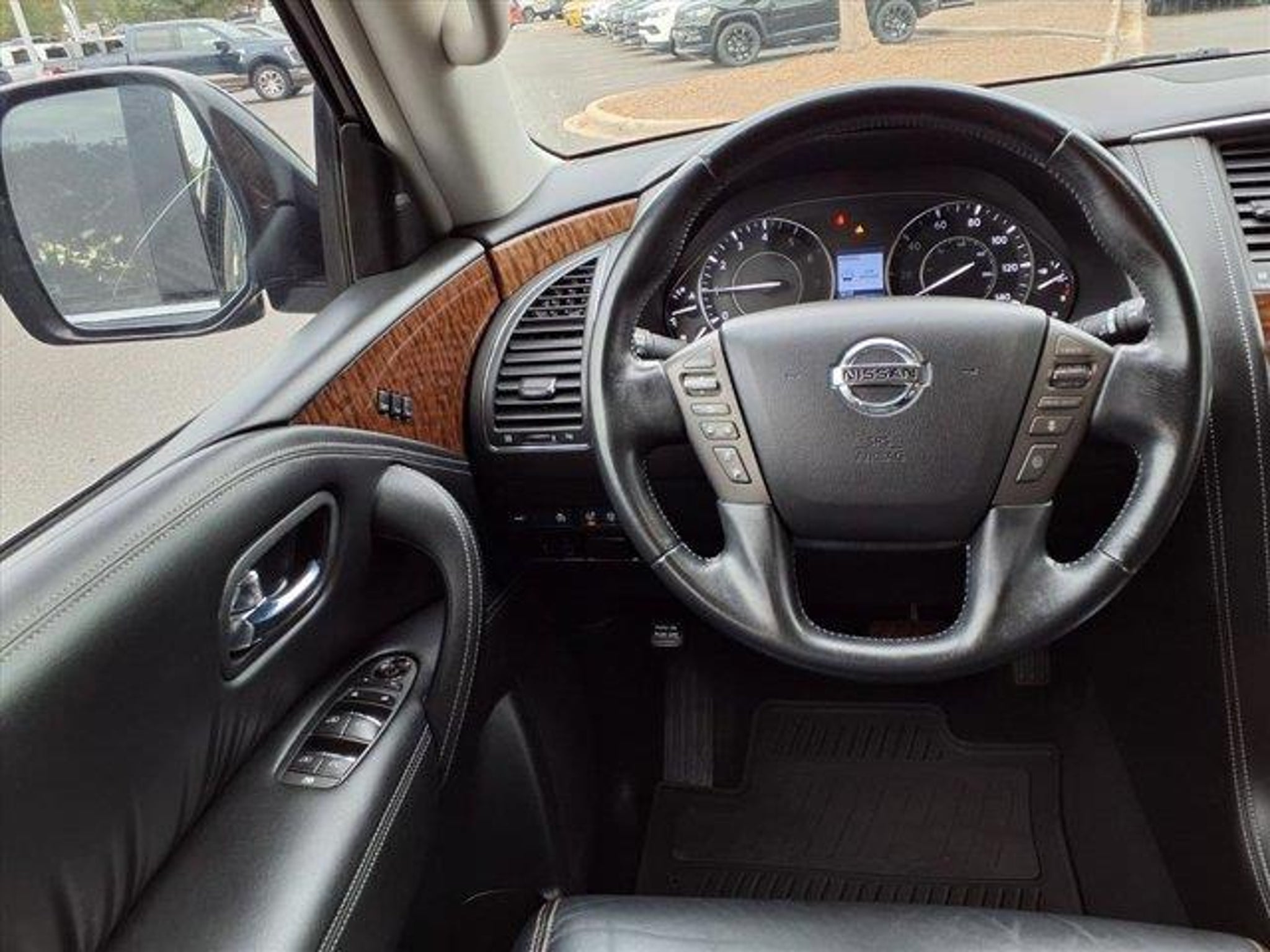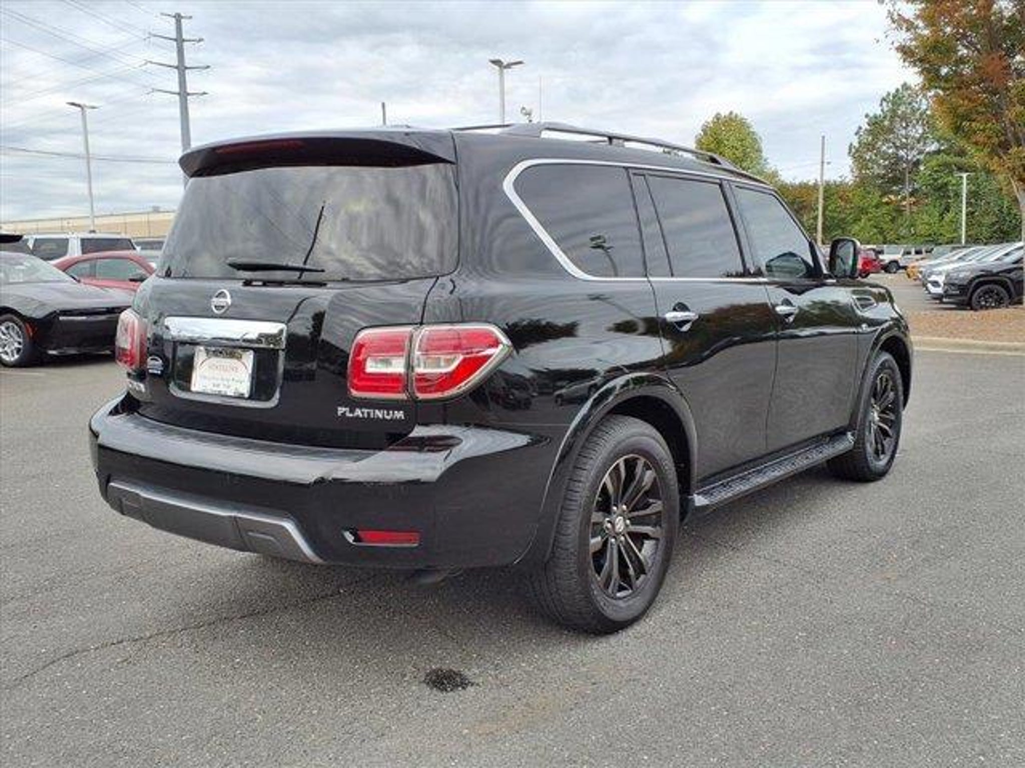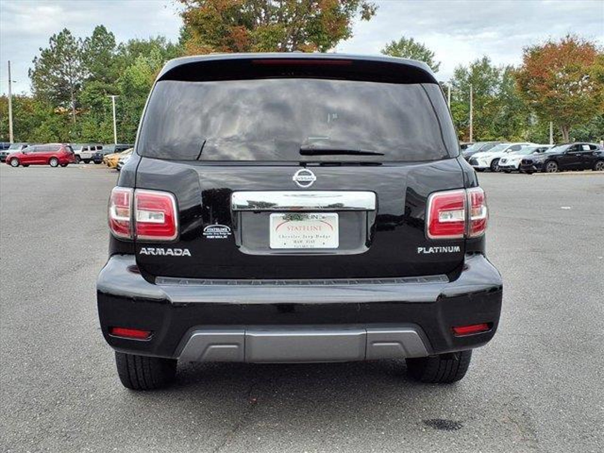 Odometer is 16886 miles below market average! 2019 Nissan Armada Platinum 4D Sport Utility Super Black Extended Service Programs Available, 13 Speakers, 2.937 Axle Ratio, 2nd & 3rd Row Carpeted Mats, 3rd row seats: split-bench, 4-Wheel Disc Brakes, A/V remote, ABS brakes, Air Conditioning, Alloy wheels, AM/FM radio: SiriusXM, Anti-whiplash front head restraints, Auto tilt-away steering wheel, Auto-dimming door mirrors, Auto-dimming Rear-View mirror, Auto-leveling suspension, Automatic temperature control, Brake assist, Bumpers: body-color, Cargo Package, CD player, Cross Bars, Delay-off headlights, Driver door bin, Driver vanity mirror, Dual front impact airbags, Dual front side impact airbags, Electronic Stability Control, Emergency communication system: NissanConnect Services, Four wheel independent suspension, Front anti-roll bar, Front Bucket Seats, Front Center Armrest, Front dual zone A/C, Front fog lights, Front reading lights, Fully automatic headlights, Garage door transmitter: HomeLink, Headphones, Heated & Cooled Front Bucket Seats w/Driver Memory, Heated door mirrors, Heated front seats, Heated rear seats, Heated steering wheel, Illuminated entry, Impact Sensors, Leather Shift Knob, Leather-Appointed Seat Trim, Low tire pressure warning, Memory seat, Navigation System, Occupant sensing airbag, Outside temperature display, Overhead airbag, Overhead console, Panic alarm, Passenger door bin, Passenger vanity mirror, Power door mirrors, Power driver seat, Power Liftgate, Power moonroof, Power passenger seat, Power steering, Power windows, Radio data system, Radio: AM/FM/SXM/CD/MP3/HD, Rain sensing wipers, Rear air conditioning, Rear anti-roll bar, Rear reading lights, Rear seat center armrest, Rear window defroster, Rear window wiper, Reclining 3rd row seat, Remote keyless entry, Roof rack: rails only, Security system, Speed control, Speed-sensing steering, Speed-Sensitive Wipers, Split folding rear seat, Spoiler, Steering wheel memory, Steering wheel mounted audio controls, Tachometer, Telescoping steering wheel, Tilt steering wheel, Traction control, Trip computer, Turn signal indicator mirrors, Variably intermittent wipers, Ventilated front seats, Voltmeter, Wheels: 20" Machine-Faced Chrome w/Tinted CC. This 2019 Nissan Armada Platinum is proudly offered to you by Stateline Chrysler Dodge Jeep RAM at 800 Gold Hill Rd Fort Mill, SC 29708 803-306-1000 www.BigStatelineAuto.com Whether you are looking for a new, pre-owned / used, car, truck, crossover or SUV,Stateline Chrysler Dodge Jeep RAM and Mills Auto group are here to make your life easy. This 2019 Nissan Armada Platinum has been fully serviced. A 2019 Nissan Armada Platinum in this condition is an absolute rarity. With 30 locations and growing, we have whatever vehicle you are looking for or we can find it for you. Let Stateline Chrysler Dodge Jeep RAM / Stateline Maserati Alfa Romeo and Mills Auto Group be your one stop shop to assist you with all of you automotive needs. Stateline Chrysler Dodge Jeep RAM Stateline Maserati / Alfa Romeo 800 Gold Hill Rd. Fort Mill, SC 29708 803-306-5989 / 803-548-6617 www.BigStatelineAuto.com For ALL new or pre-owned / used car, truck, crossover or SUV Mills Auto Group has locations in or near Goldsboro, NC 27534 - Pineville, NC 28134 - Fort Mill, SC 29708 - Columbia, SC 29210 - Smithfield, NC 27577 - Shelby, NC 28152 - Sanford, NC 27332 - Mount Hope, WV 25880 - Wilkesboro, NC 28659 - Henderson, NC 27537 - Gastonia, NC 28056 - Bowling Green, KY 42104 to make your experience amazing! Whether this 2019 Nissan Armada Platinum is the one you've been looking for or we need to work to find you just the right one.... Stateline Chrysler Dodge Jeep RAM / Stateline Maserati /Alfa Romeo has nearly 1,000 pre-owned vehicles at your finger tips right here at our dealer group site: www.MillsAutoGroup.com Or call us any time at 803-306-5989 or 803-548-6617 We search the market to bring you the best inventory availa