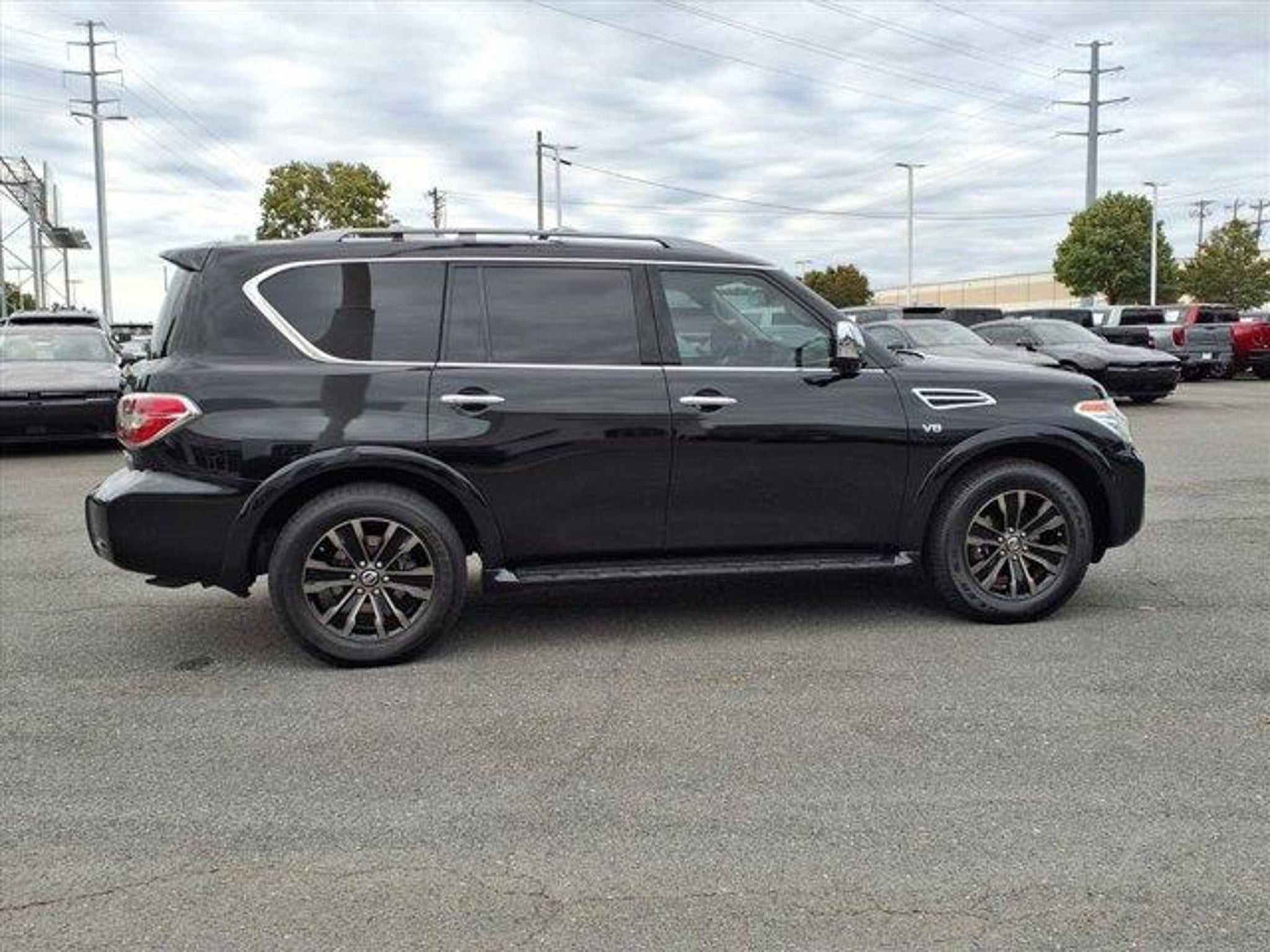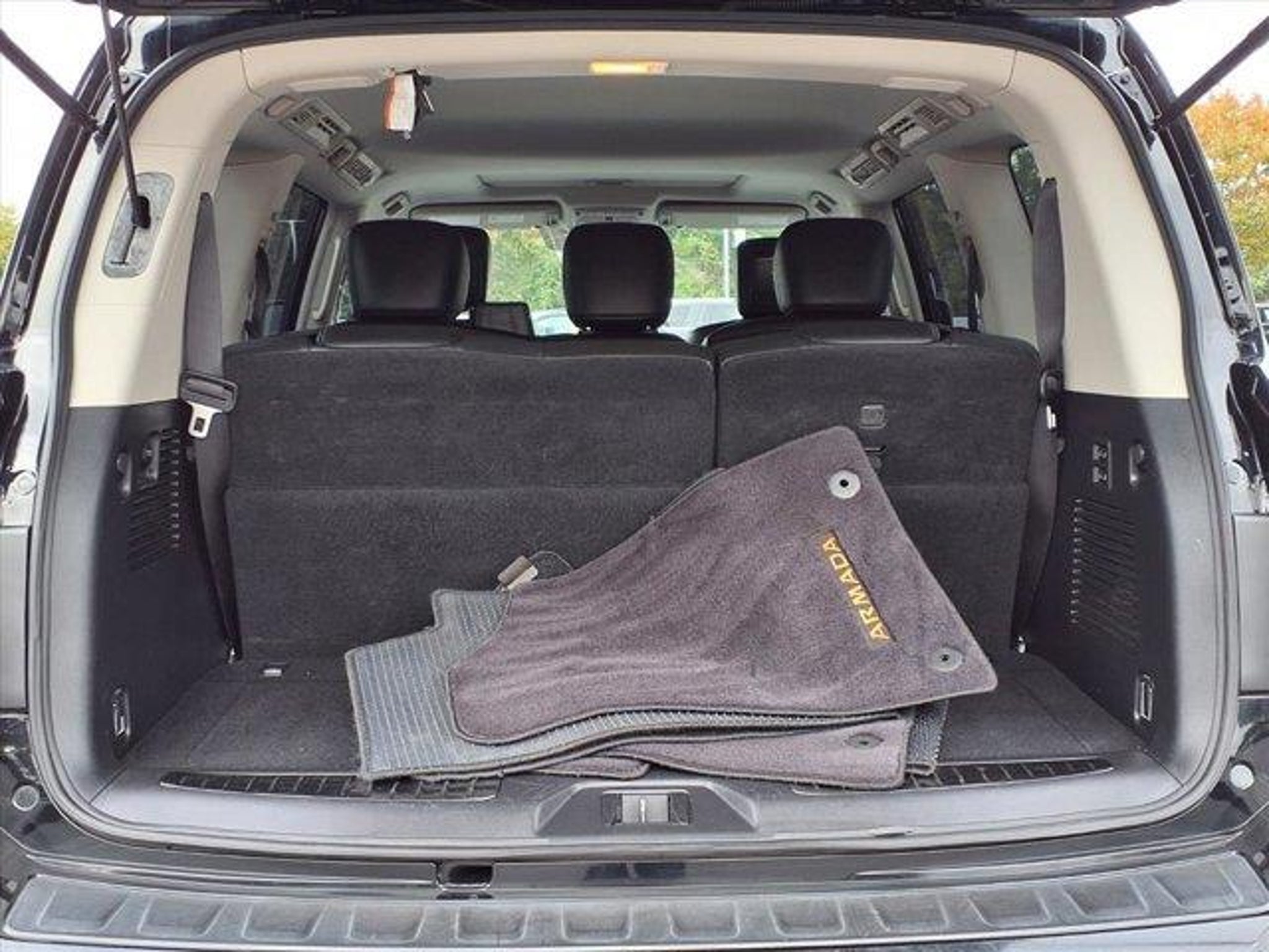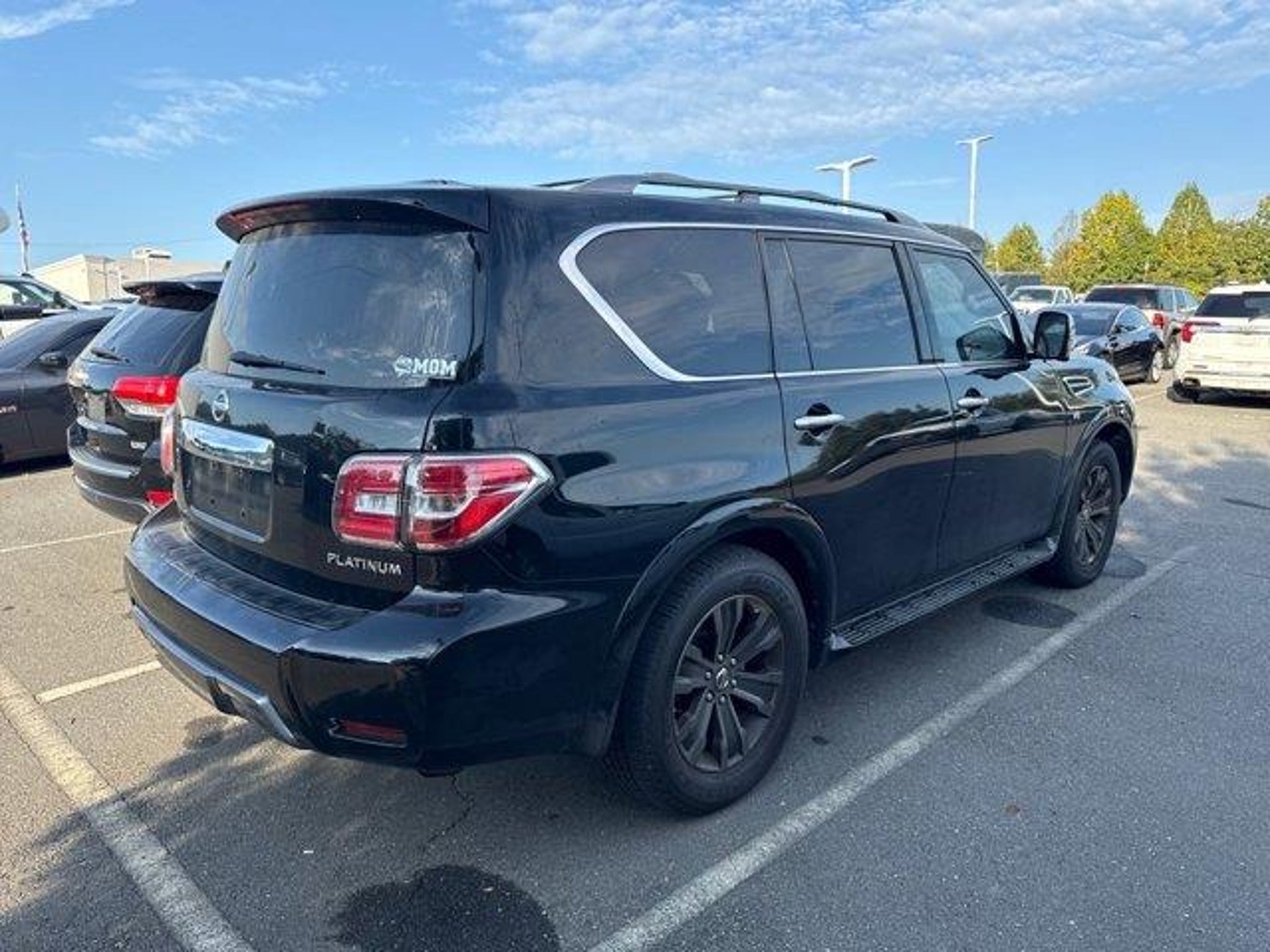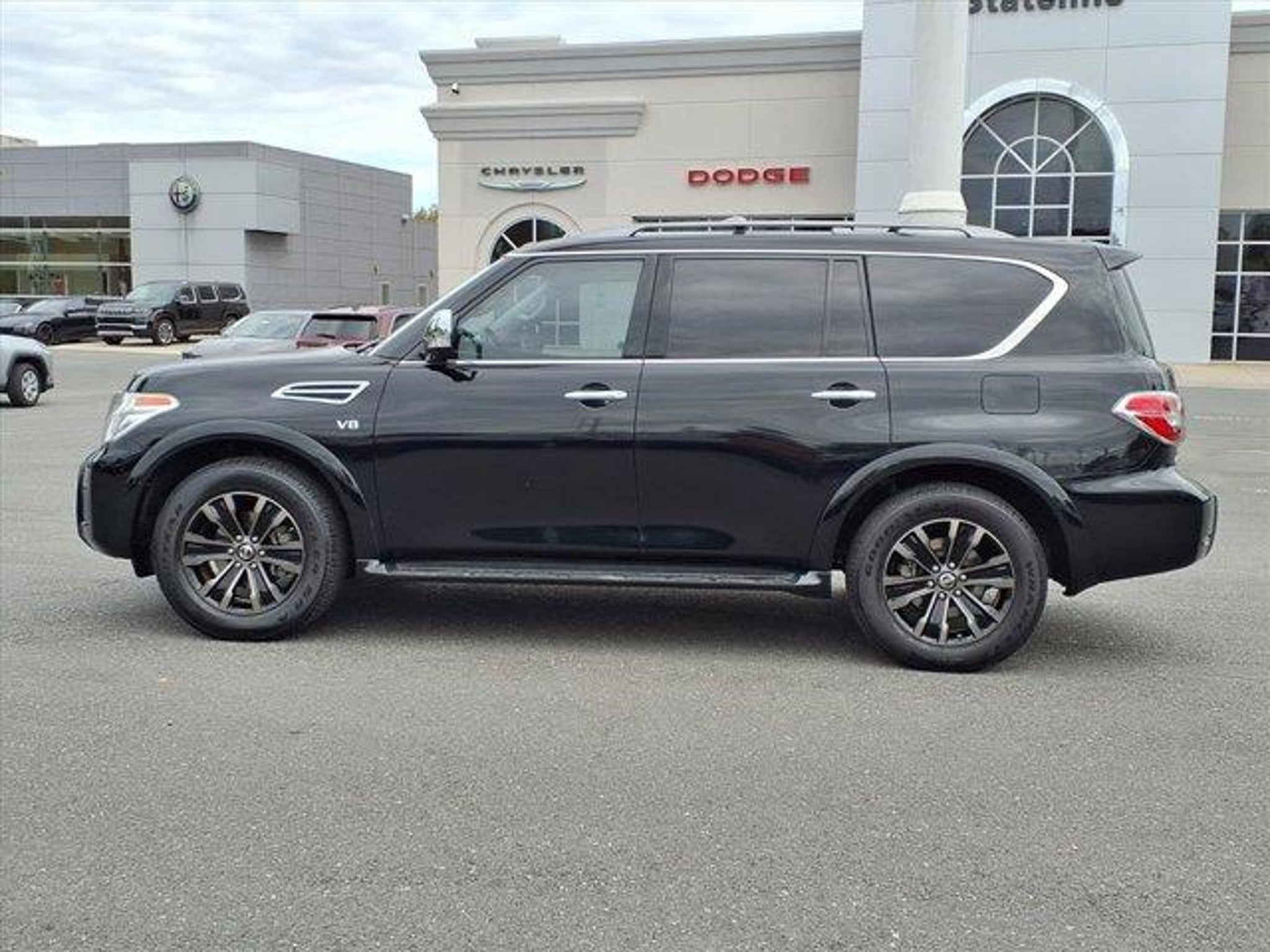 Odometer is 16886 miles below market average! 2019 Nissan Armada Platinum 4D Sport Utility Super Black Extended Service Programs Available, 13 Speakers, 2.937 Axle Ratio, 2nd & 3rd Row Carpeted Mats, 3rd row seats: split-bench, 4-Wheel Disc Brakes, A/V remote, ABS brakes, Air Conditioning, Alloy wheels, AM/FM radio: SiriusXM, Anti-whiplash front head restraints, Auto tilt-away steering wheel, Auto-dimming door mirrors, Auto-dimming Rear-View mirror, Auto-leveling suspension, Automatic temperature control, Brake assist, Bumpers: body-color, Cargo Package, CD player, Cross Bars, Delay-off headlights, Driver door bin, Driver vanity mirror, Dual front impact airbags, Dual front side impact airbags, Electronic Stability Control, Emergency communication system: NissanConnect Services, Four wheel independent suspension, Front anti-roll bar, Front Bucket Seats, Front Center Armrest, Front dual zone A/C, Front fog lights, Front reading lights, Fully automatic headlights, Garage door transmitter: HomeLink, Headphones, Heated & Cooled Front Bucket Seats w/Driver Memory, Heated door mirrors, Heated front seats, Heated rear seats, Heated steering wheel, Illuminated entry, Impact Sensors, Leather Shift Knob, Leather-Appointed Seat Trim, Low tire pressure warning, Memory seat, Navigation System, Occupant sensing airbag, Outside temperature display, Overhead airbag, Overhead console, Panic alarm, Passenger door bin, Passenger vanity mirror, Power door mirrors, Power driver seat, Power Liftgate, Power moonroof, Power passenger seat, Power steering, Power windows, Radio data system, Radio: AM/FM/SXM/CD/MP3/HD, Rain sensing wipers, Rear air conditioning, Rear anti-roll bar, Rear reading lights, Rear seat center armrest, Rear window defroster, Rear window wiper, Reclining 3rd row seat, Remote keyless entry, Roof rack: rails only, Security system, Speed control, Speed-sensing steering, Speed-Sensitive Wipers, Split folding rear seat, Spoiler, Steering wheel memory, Steering wheel mounted audio controls, Tachometer, Telescoping steering wheel, Tilt steering wheel, Traction control, Trip computer, Turn signal indicator mirrors, Variably intermittent wipers, Ventilated front seats, Voltmeter, Wheels: 20" Machine-Faced Chrome w/Tinted CC. This 2019 Nissan Armada Platinum is proudly offered to you by Stateline Chrysler Dodge Jeep RAM at 800 Gold Hill Rd Fort Mill, SC 29708 803-306-1000 www.BigStatelineAuto.com Whether you are looking for a new, pre-owned / used, car, truck, crossover or SUV,Stateline Chrysler Dodge Jeep RAM and Mills Auto group are here to make your life easy. This 2019 Nissan Armada Platinum has been fully serviced. A 2019 Nissan Armada Platinum in this condition is an absolute rarity. With 30 locations and growing, we have whatever vehicle you are looking for or we can find it for you. Let Stateline Chrysler Dodge Jeep RAM / Stateline Maserati Alfa Romeo and Mills Auto Group be your one stop shop to assist you with all of you automotive needs. Stateline Chrysler Dodge Jeep RAM Stateline Maserati / Alfa Romeo 800 Gold Hill Rd. Fort Mill, SC 29708 803-306-5989 / 803-548-6617 www.BigStatelineAuto.com For ALL new or pre-owned / used car, truck, crossover or SUV Mills Auto Group has locations in or near Goldsboro, NC 27534 - Pineville, NC 28134 - Fort Mill, SC 29708 - Columbia, SC 29210 - Smithfield, NC 27577 - Shelby, NC 28152 - Sanford, NC 27332 - Mount Hope, WV 25880 - Wilkesboro, NC 28659 - Henderson, NC 27537 - Gastonia, NC 28056 - Bowling Green, KY 42104 to make your experience amazing! Whether this 2019 Nissan Armada Platinum is the one you've been looking for or we need to work to find you just the right one.... Stateline Chrysler Dodge Jeep RAM / Stateline Maserati /Alfa Romeo has nearly 1,000 pre-owned vehicles at your finger tips right here at our dealer group site: www.MillsAutoGroup.com Or call us any time at 803-306-5989 or 803-548-6617 We search the market to bring you the best inventory availa
