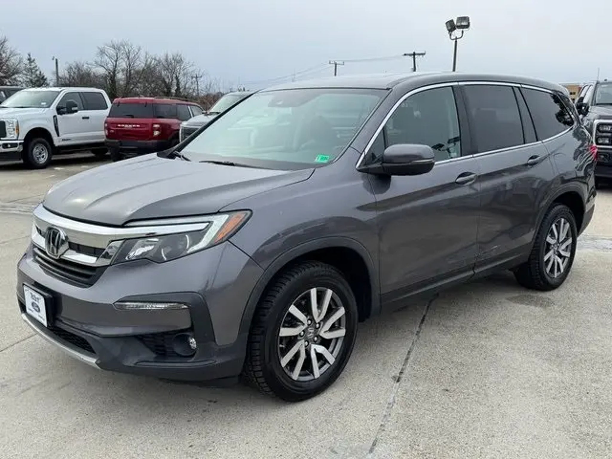 2020 Honda Pilot Gray EX-L Ford Blue Advantage: Blue Certified Certified, AWD, 18 Machine-Finished Alloy Wheels, 3rd row seats: split-bench, 7 Speakers, ABS brakes, Apple CarPlay/Android Auto, Auto High-beam Headlights, Auto-dimming Rear-View mirror, Blind Spot Information (BSI) System warning, Exterior Parking Camera Rear, Forward collision: Collision Mitigation Braking System (CMBS) FCW mitigation, Four wheel independent suspension, Front dual zone A/C, Fully automatic headlights, Lane departure: Lane Keeping Assist System (LKAS) active, Leather Seat Trim, Leather Shift Knob, Memory seat, Passenger door bin, Power driver seat, Power Liftgate, Power moonroof, Power windows, Radio: 215-Watt Audio System, Rear air conditioning, Rear window wiper, Remote keyless entry, Speed control, Speed-sensing steering, Speed-Sensitive Wipers, Steering wheel mounted audio controls, Telescoping steering wheel, AWD, 18 Machine-Finished Alloy Wheels, 3rd row seats: split-bench, 7 Speakers, ABS brakes, Apple CarPlay/Android Auto, Auto High-beam Headlights, Auto-dimming Rear-View mirror, Blind Spot Information (BSI) System warning, Exterior Parking Camera Rear, Forward collision: Collision Mitigation Braking System (CMBS) FCW mitigation, Four wheel independent suspension, Front dual zone A/C, Fully automatic headlights, Lane departure: Lane Keeping Assist System (LKAS) active, Leather Seat Trim, Leather Shift Knob, Memory seat, Passenger door bin, Power driver seat, Power Liftgate, Power moonroof, Power windows, Radio: 215-Watt Audio System, Rear air conditioning, Rear window wiper, Remote keyless entry, Speed control, Speed-sensing steering, Speed-Sensitive Wipers, Steering wheel mounted audio controls, Telescoping steering wheel. CARFAX One-Owner. Certified. AWD 6-Speed Automatic 3.5L V6 24V SOHC i-VTEC Certification Program Details: Ford Blue Advantage: Blue Certified * 139 Point Inspection * Transferable Warranty * Vehicle History * Warranty Deductible: $100 * Roadside Assistance * Limited Warranty: 3 Month/4,000 Mile (whichever comes first) after new car warranty expires or from certified purchase date * and 11,000 FordPass Rewards Points to use toward first maintenance visit Odometer is 8668 miles below market average! 18/26 City/Highway MPG PLEASE CALL TED BRITT FORD FAIRFAX USED SALES NOW at for appt and come see why Ted Britt Ford of Fairfax is one of the top Ford dealers in the country!! This vehicle is at the Fairfax location. Now offering Ted Britt 4 Life! Lifetime Vehicle Coverage! Powertrain4Life, Nitro4Life,VAInspection4Life, Battery4Life, and Loaner4Life. See Dealer for details.
