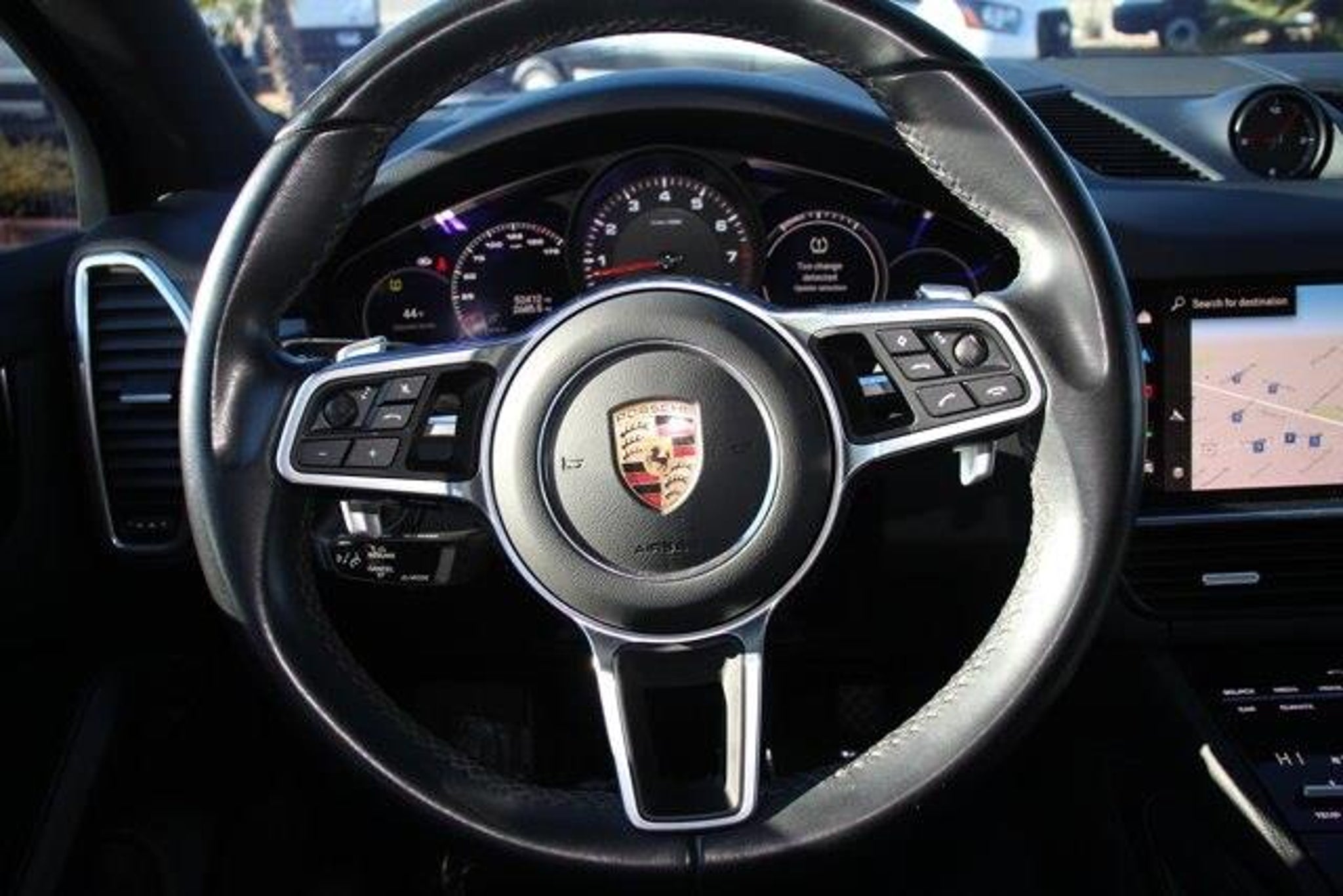 Priced below KBB Fair Purchase Price! Local Trade!, Freshly Detailed!, Black w/Leather Seat Trim w/Leather Interior, 14 Speakers, 4-Wheel Disc Brakes, 8-Way Sport Seats, ABS brakes, Adaptive suspension, Air Conditioning, Alloy wheels, AM/FM radio: SiriusXM, Apple CarPlay, Auto-dimming door mirrors, Auto-dimming Rear-View mirror, Automatic temperature control, Axle Ratio: 3.48, Brake assist, Bumpers: body-color, Delay-off headlights, Driver door bin, Driver vanity mirror, Dual front impact airbags, Dual front side impact airbags, Electronic Stability Control, Exterior Parking Camera Rear, Four wheel independent suspension, Front anti-roll bar, Front Bucket Seats, Front Center Armrest, Front dual zone A/C, Front reading lights, Fully automatic headlights, Garage door transmitter: HomeLink, Heated door mirrors, Heated front seats, Illuminated entry, Knee airbag, Leather Shift Knob, Low tire pressure warning, Navigation System, Occupant sensing airbag, Outside temperature display, Overhead airbag, Overhead console, Panic alarm, Partial Leather Seat Trim, Passenger door bin, Passenger vanity mirror, Porsche Communication Management, Power door mirrors, Power driver seat, Power Liftgate, Power moonroof: Panoramic, Power passenger seat, Power steering, Power windows, Radio data system, Rain sensing wipers, Rear anti-roll bar, Rear fog lights, Rear reading lights, Rear seat center armrest, Rear side impact airbag, Rear window defroster, Rear window wiper, Remote keyless entry, Security system, Speed control, Speed-sensing steering, Split folding rear seat, Spoiler, Steering wheel mounted audio controls, Tachometer, Telescoping steering wheel, Tilt steering wheel, Traction control, Trip computer, Turn signal indicator mirrors, Variably intermittent wipers, Voltmeter, Wheels: 21 RS Spyder Design in Satin Platinum.Clean CARFAX.2023 Porsche Cayenne 19/23 City/Highway MPGPlatinum Edition