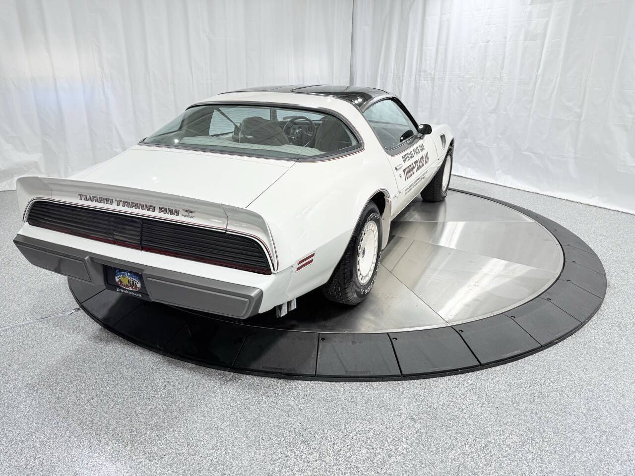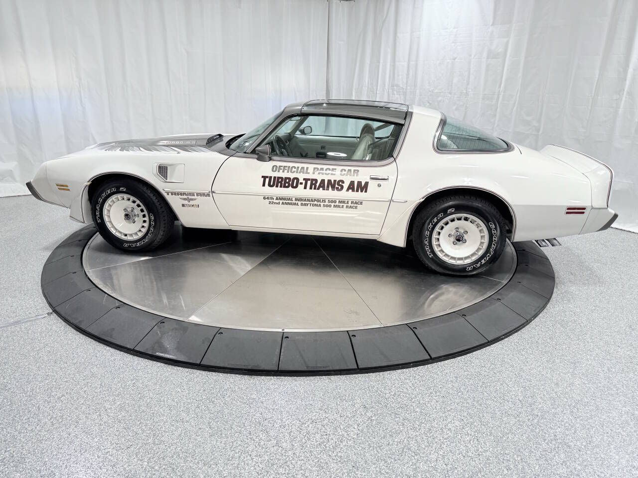 1980 Pontiac Turbo Trans Am Pace Car ONLY 8,800 MILES Well Documented Original and Collectible Trans Am Our Car Has it All! Truly ONE of MY FAVORITES! T-Tops Automatic 4.9L 301ci Turbo Charged V8 Y85 Special Pace Car Pkg WS6 Suspension Pkg Power Windows Power Locks Air Conditioning Optional Event Graphics 15x8 inch turbo rims finished in white. Absolutely Gorgeous Trans Am! The Indy 500 race choose the 1980 Turbo Trans Am to pace the race in 1980. This was the first year that the same car paced both the Indy 500 and the Daytona 500. Pontiac made 5,700 of these cars to replicate the car used to pace The Indianapolis 500. The 1980 Y85 Turbo Pace Car Trans Ams were similar to the 1979 10th Anniversary Trans Am in the paint scheme. The Pace Car had white lower body paint with charcoal upper body paint offset by a tri-color body accent stripes. The decals used were now the larger 5-color turbo hood bird and Turbo 4.9 on the bulge on the hood designed to accommodate the turbo-charger and 3-light system for the turbo-boost. The interior was a custom Oyster vinyl seats with hobnail inserts and the bird was embroidered on the center of the rear seats and on the door panels. The rest of the interior was an Oyster white with charcoal grey dash and center console. A Special ETR AM/FM Cassette with seek-and-scan features, a digital display, and red dash lights rounded out the interior. The Indy 500 emblem was located on the side fenders and the rear tail spoilers. The optional Indy 500 Pace Car door decals or the 22nd Annual Daytona 500 Mile Race door decals were an extra option. We Sell and Ship Worldwide