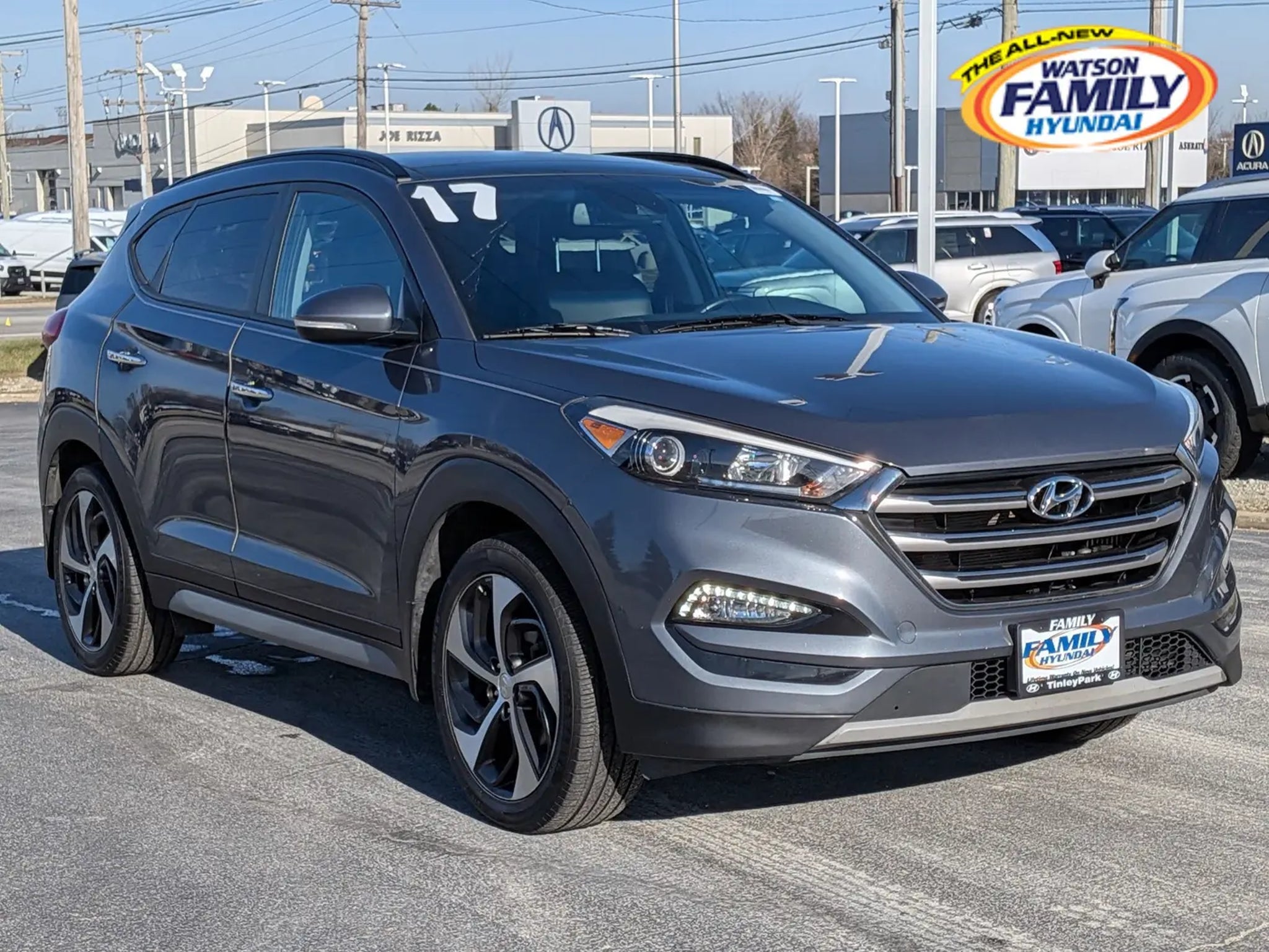 Check out this 2017 Hyundai Tucson Limited. Its Automatic transmission and Intercooled Turbo Regular Unleaded I-4 1.6 L/97 engine will keep you going. This Hyundai Tucson features the following options: REAR BUMPER APPLIQUE, MUDGUARDS, LIMITED ULTIMATE PACKAGE 03 -inc: Option Group 03, Automatic Emergency Braking (AEB), Front and Rear LED Maplights, Rear Parking Sensors, High Intensity Discharge Headlights, Dynamic Bending Light (DBL), Lane Departure Warning System (LDWS), Panoramic Sunroof, one-touch open and rear shade, Supervision Cluster, Ventilated Front Bucket Seats, Heated Rear Seats, COLISEUM GRAY, CARPETED FLOOR MATS, CARGO TRAY -inc: rubber-like non-slip protective cover for rear cargo compartment, CARGO NET, CARGO COVER, BLACK, LEATHER SEAT TRIM, and Wireless Phone Connectivity. Test drive this vehicle at Family Hyundai, 8101 West 159th St, Tinley Park, IL 60477.