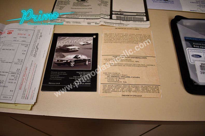 Remarkable Just 3862 Original miles 2003 Mercury Marauder :: Powered by a 4.6L 32 Valve DOHC V-8 Engine, Automatic Transmission, Rated at 302 HP and 318 lb-ft of Torque, 1 of 11,052 Produced in a 2 Year Production, Performance Handling Package, Traction Control, Power Steering, Power 4-Wheel Disc Brakes, Nudo Leather Bucket Seats, 18in Polished Forage Wheels, New Tires, Kept in Climate Controlled Storage, Original Window Sticker, Original Owner Manual, Original Bill of Sale, Clean Car Fax For More Information Call (Danny) 863-944-8755, (Monica) 863-333-8286, (Jacob) 863-899-1565, (Dan) 863-226-8590 or email sales1@primoclassicsint.com