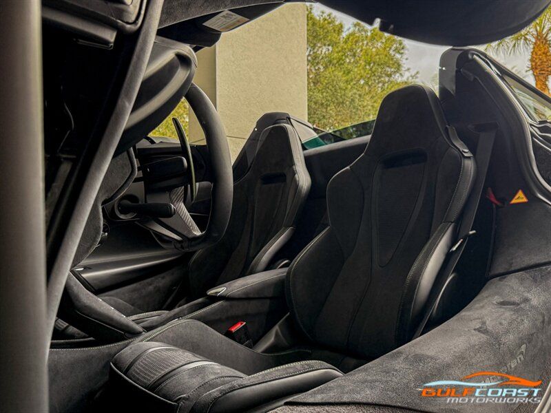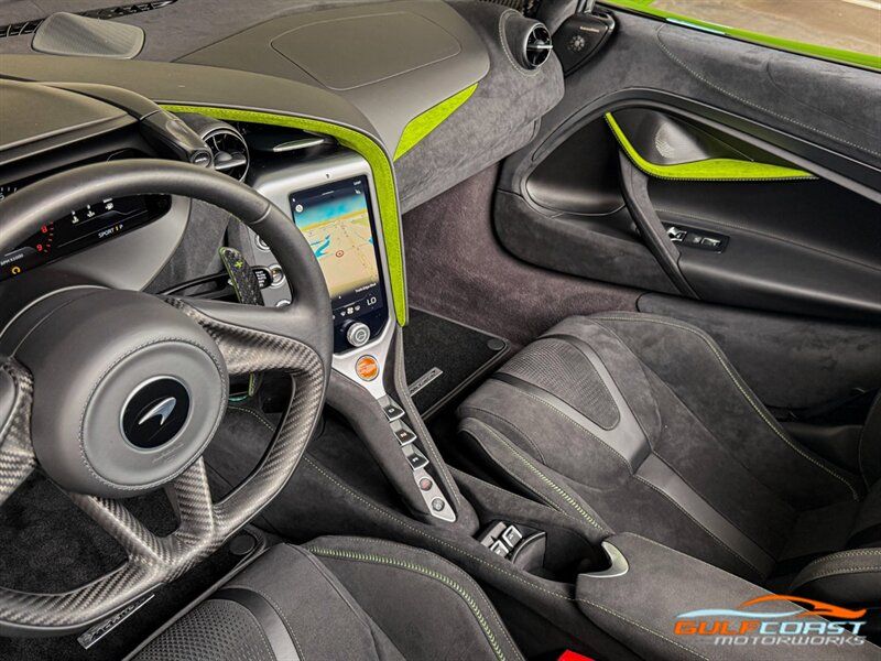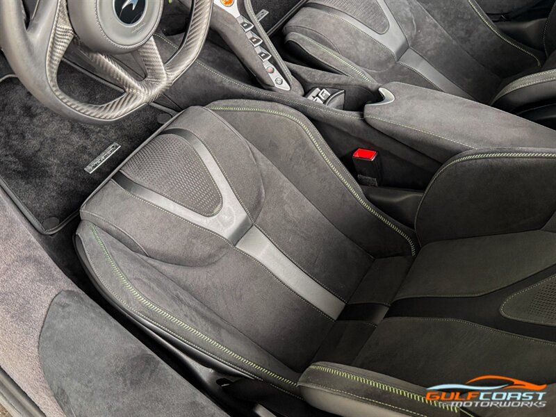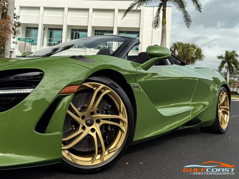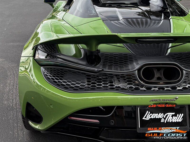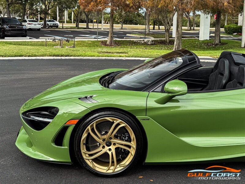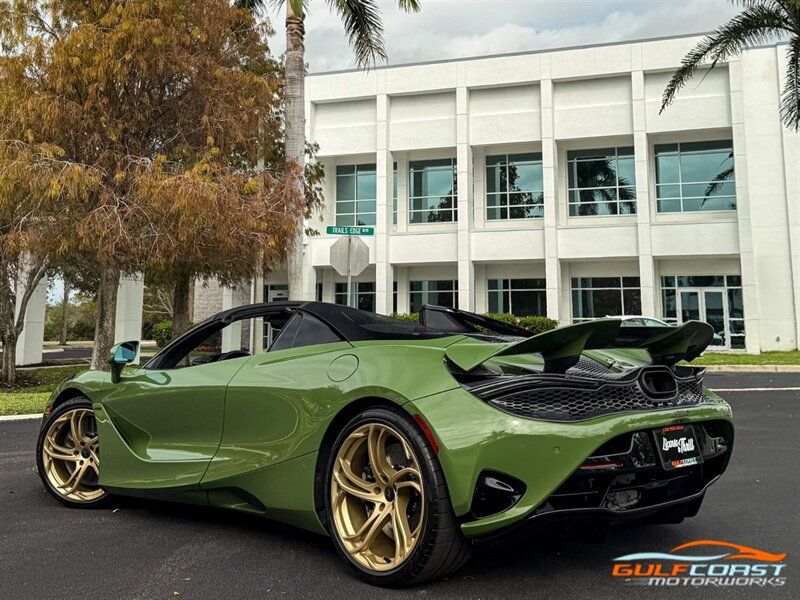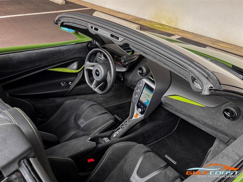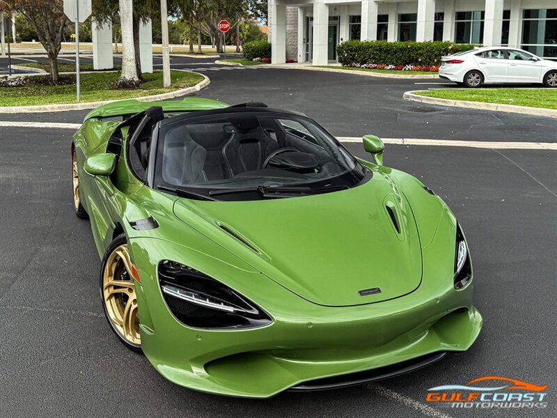 "2025 McLaren 750S Spider. MSO Bespoke Gloss Olive Green Exterior with Black Alcantara Interior. Features Include: 740 Horsepower Twin Turbo 4.0L V8 Engine, Seven-Speed Dual Clutch Seamless Shift Automatic Transmission, Carbon Ceramic Brakes, Brake Calipers in Black, 19"" Front & 20"" Rear 5 Twin Spoke Wheels in a Gold Finish, Front Lift, Active Rear Spoiler, Sports Exhaust, Key in Body Color, Americas Accessories Pack, Stealth Exhaust Finish, Hood in Body Color, Gloss Black Front Splitter, Upper Part Of Rear Bumper in Body Color, Lower Part Of Rear Bumper in Gloss Black, Headlight Surround In Gloss Black, Body Color Front Fenders, Carbon Fiber Fender Louvers, Rear Spoiler in Body Color, Stealth Badge Pack, Power Retractable Hard Top, LED Headlights & Tail Lights, LED DRLs, Front & Rear Parking Sensors, Power Folding Outside Mirrors, Soft Close Door Latching, Digital Instrument Cluster, Black Leather Wrapped Steering Wheel, Shift Paddles, Carbon Fiber Steering Wheel Trim, Performance Interior, Mantis Green Stitching, Seat Belts in Black, Manual Adjustable Seats, Selectable Drive Modes, Launch Control, Leather Dashboard, Alcantara Headliner, Touchscreen Infotainment with Bowers & Wilkins Audio System, 360 Degree Park Assist, Dual Zone Automatic Climate Control, Smartphone Integration, Navigation, Bluetooth. Priced at only $379,995. Financing available. We ship worldwide. We pay top dollar for lightly used sports cars! Call or text our Product Specialists today at 239-522-2262 or email us at sales@gcmworks.com. Fees and Taxes: $1199.00 Doc Fee on all Purchases. Out of state buyers are responsible for all state, county, city taxes and fees, as well as title/registration fees in the state that the vehicle will be registered. -- INSTALLED FEATURES: Air filtration, Front air conditioning: automatic climate control, Front air conditioning zones: dual, Humidity/dewpoint sensors, Airbag deactivation: occupant sensing passenger, Front airbags: dual, Knee airbags: dual front, Side airbags: head protection chambers, Antenna type: diversity / element, Auxiliary audio input: Bluetooth / iPod/iPhone / USB, Radio: FM / HD radio / touch screen display / voice operated, Radio data system, Satellite radio: SiriusXM, Speed sensitive volume control, Total speakers: 4, Watts: 240, ABS: 4-wheel, Brake drying, Braking assist, Cornering brake control, Electronic brakeforce distribution, Electronic parking brake: auto off, Emergency braking preparation, Front brake type: carbon ceramic disc, Painted brake calipers, Power brakes, Rear brake type: carbon ceramic disc, Center console trim: faux suede, Dash trim: faux suede, Door sill trim: faux suede, Door trim: faux suede, Floor material: carpet, Foot pedal trim: aluminum, Headliner trim: faux suede, Interior accents: aluminum, Steering wheel trim: leather, Ambient lighting: color-adjustable, Cargo area light, Center console: front console with armrest and storage, Courtesy lights: door, Cruise control, Cupholders: 2, Footwell lights, Multi-function remote: proximity entry system / trunk release, One-touch windows: 2, Overhead console: front, Power outlet(s): 12V front / USB front / USB-C front, Power steering: variable/speed-proportional, Push-button start, Reading lights: front, Rearview mirror: auto-dimming, Steering wheel: power tilt and telescopic, Steering wheel mounted controls: cruise control / paddle shifter, Storage: door pockets, Vanity mirrors: dual illuminating, Exhaust: dual tip, Exhaust tip color: stainless steel, Front bumper color: body-color, Grille color: black, Ground effects/lower spoilers, Headlight bezel color: black, Mirror color: body-color, Rear bumper color: body-color, Rear spoiler: electronically controlled / wing, Rear spoiler color: body-color, Side door type: butterfly / soft close, Window trim: black, Infotainment: McLaren Infotainment System, Infotainment screen size: 8 in., Smartphone integration: Apple CarPlay, Clock, Compass, Customizable instrument cluster, Digital odometer, External temperature display, Fuel economy display: MPG / range, Gauge: tachometer, Instrument cluster screen size: 8 in., Multi-function display, Trip odometer, Warnings and reminders: coolant temperature warning / lamp failure / low battery / low fuel level / low oil pressure / maintenance due, Daytime running lights: LED, Exterior entry lights: approach lamps, Headlights: auto delay off / auto on/off / LED, Rear fog lights, Taillights: LED, Side mirror adjustments: power / power folding / reverse gear tilt, Side mirrors: heated, Auto start/stop, Battery: lithium ion, Battery saver, Drive mode selector, Mid-mounted engine, Performance exhaust, Convertible rear window: glass, Convertible roof: power retractable hard top, Convertible roof wind blocker, Automatic hazard warning lights, Camera system: rearview, Child seat anchors, Crumple zones: front / rear, Emergency interior trunk release, Impact sensor: door unlock / fuel cut-off / post-collision safety system, Parking sensors: front / rear, Rearview monitor: in dash, Rollover protection system, Emergency locking retractors: front, Front seatbelts: 3-point, Seatbelt force limiters: front, Seatbelt pretensioners: front, Seatbelt warning sensor: front, Driver seat manual adjustments: 4 / reclining, Driver seat power adjustments: 2 / height, Front headrests: 2 / integrated, Front seat type: sport bucket, Passenger seat manual adjustments: 4 / reclining, Upholstery: faux suede, Anti-theft system: alarm / anti-tow sensor / interior motion sensor / vehicle immobilizer, Power door locks: anti-lockout / auto-locking, Hill holder control, Stability control, Traction control, Active suspension, Driver adjustable suspension: ride control, Front shock type: gas, Front spring type: coil, Front struts, Front suspension classification: independent, Front suspension type: double wishbone, Rear shock type: gas, Rear spring type: coil, Rear suspension classification: independent, Rear suspension type: double wishbone, Susp