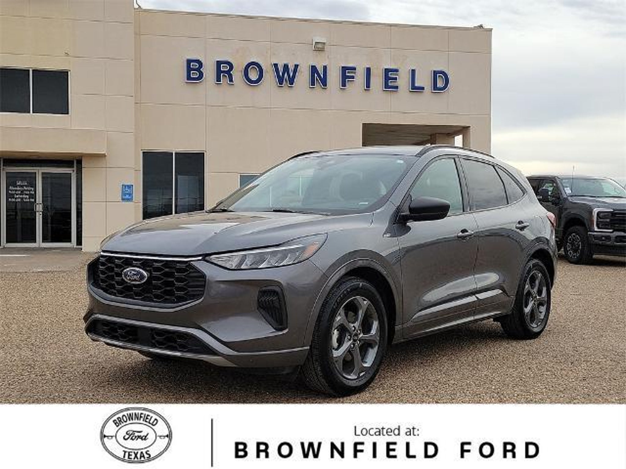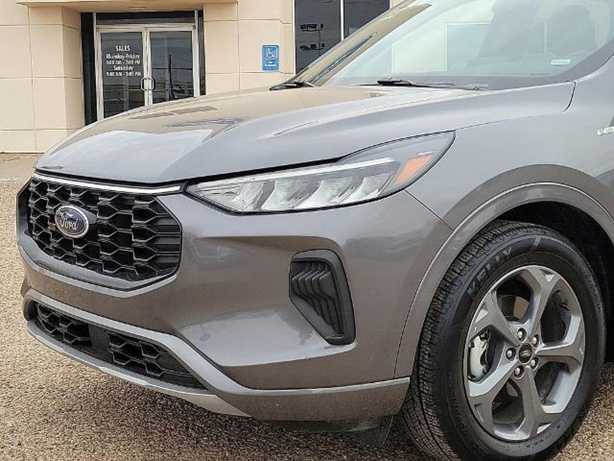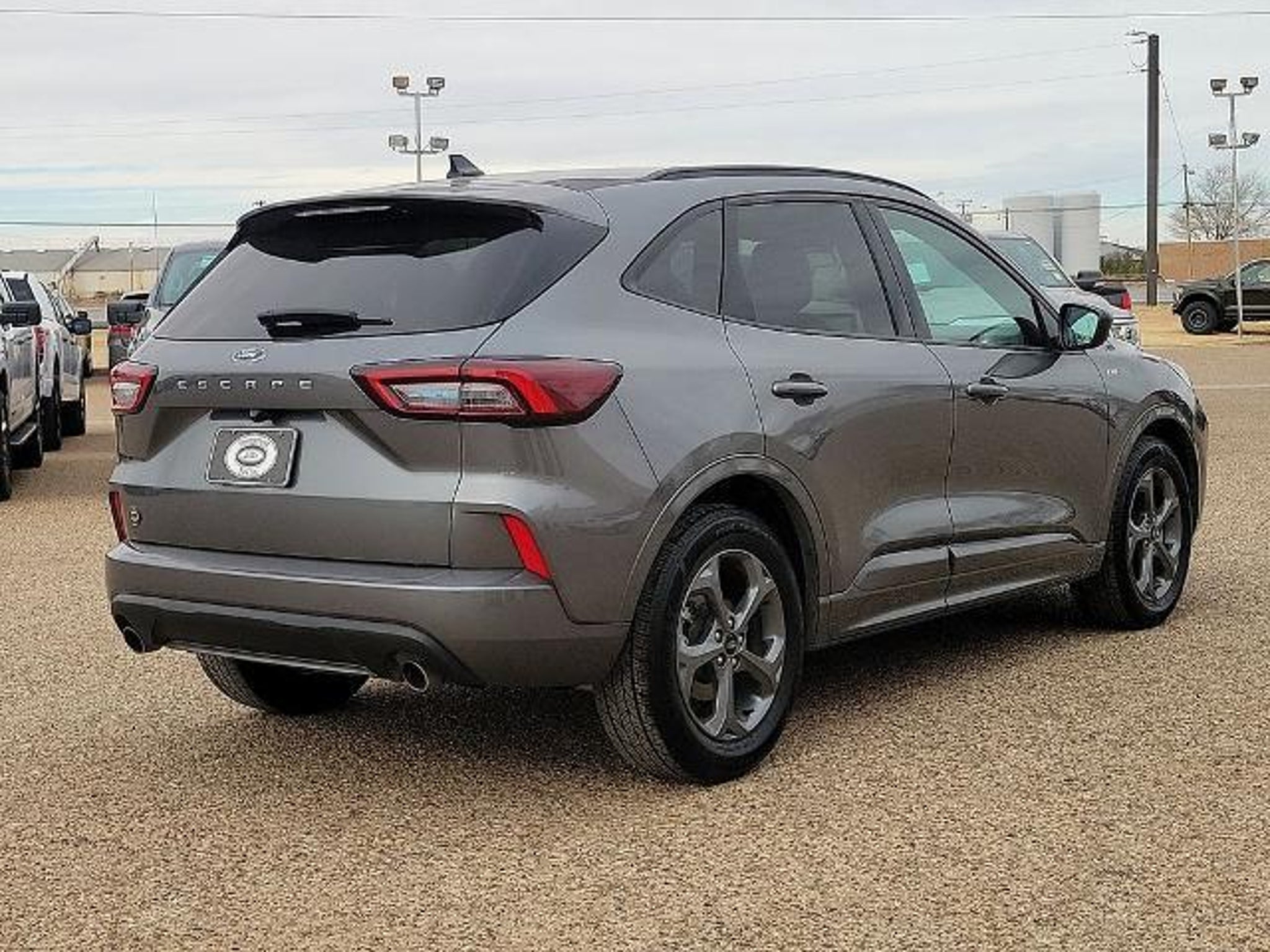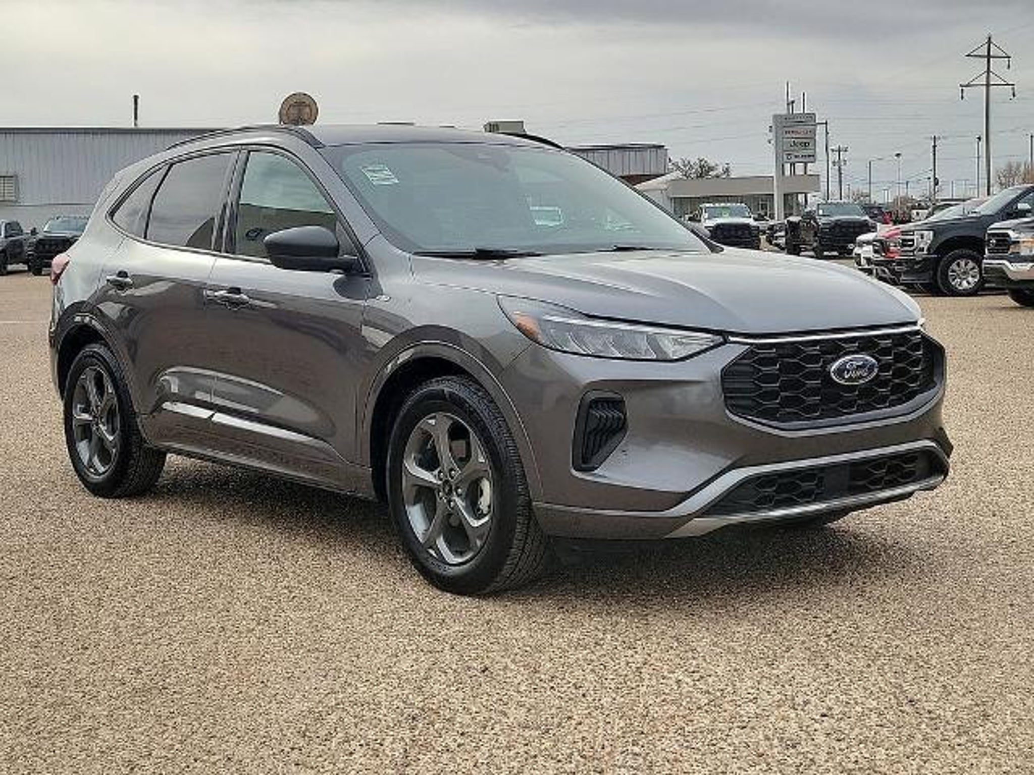 This 2024 Ford Escape ST-Line 1.5L EcoBoost 8-Speed Automatic FWD in Gray Metallic comes with the following features: Equipment Group 300A, 3.81 Axle Ratio, 4-Wheel Disc Brakes, 6 Speakers, ABS brakes, Air Conditioning, Alloy wheels, AM/FM radio: SiriusXM, AM/FM Stereo, Auto High-beam Headlights, Automatic temperature control, Brake assist, Bumpers: body-color, Compass, Delay-off headlights, Driver door bin, Driver vanity mirror, Dual front impact airbags, Dual front side impact airbags, Electronic Stability Control, Emergency communication system: SYNC 4 911 Assist, Exterior Parking Camera Rear, FordPass Connect, Four wheel independent suspension, Front anti-roll bar, Front Bucket Seats, Front Center Armrest, Front dual zone A/C, Front reading lights, Fully automatic headlights, Illuminated entry, Knee airbag, Low tire pressure warning, Occupant sensing airbag, Outside temperature display, Overhead airbag, Overhead console, Panic alarm, Passenger door bin, Passenger vanity mirror, Power door mirrors, Power driver seat, Power Liftgate, Power steering, Power windows, Radio data system, Rear anti-roll bar, Rear reading lights, Rear seat center armrest, Rear window defroster, Rear window wiper, Remote keyless entry, Roof rack: rails only, Speed control, Speed-sensing steering, Speed-Sensitive Wipers, Split folding rear seat, Spoiler, Sport steering wheel, Steering wheel mounted audio controls, SYNC 4, Tachometer, Telescoping steering wheel, Tilt steering wheel, Traction control, Trip computer, Variably intermittent wipers, Vinyl/Cloth Front Sport Contour Bucket Seats, and Wheels: 18 Rock Metallic Painted Aluminum. 27/34 City/Highway MPG